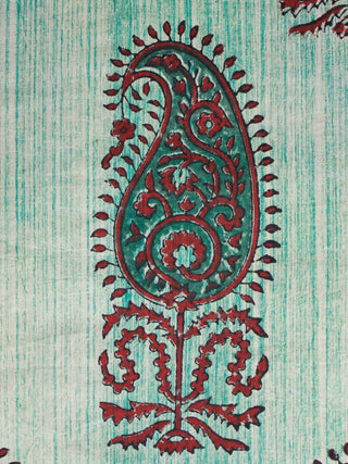 Ivory Green Maroon Hand Brush Printed & Block Printed Cotton Fabric Per Meter - F001F1556