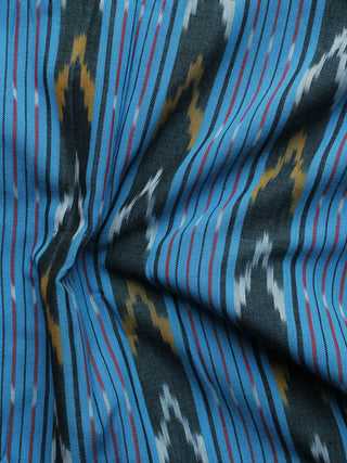 Black Ivory Blue Yellow Pochampally Hand Weaved Ikat Fabric Per Meter - F0916736