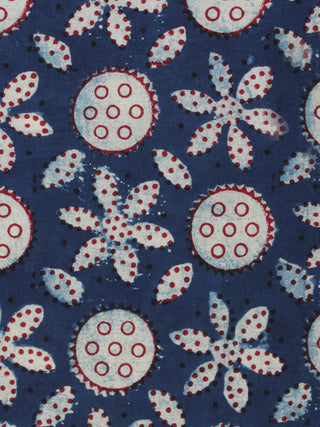 Indigo Ivory Red Ajrakh Hand Block Printed Cotton Fabric Per Meter - F003F2111