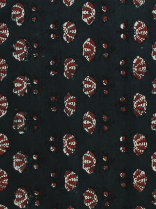 Bottle Green Ivory Red Ajrakh Hand Block Printed Cotton Fabric Per Meter - F003F2116