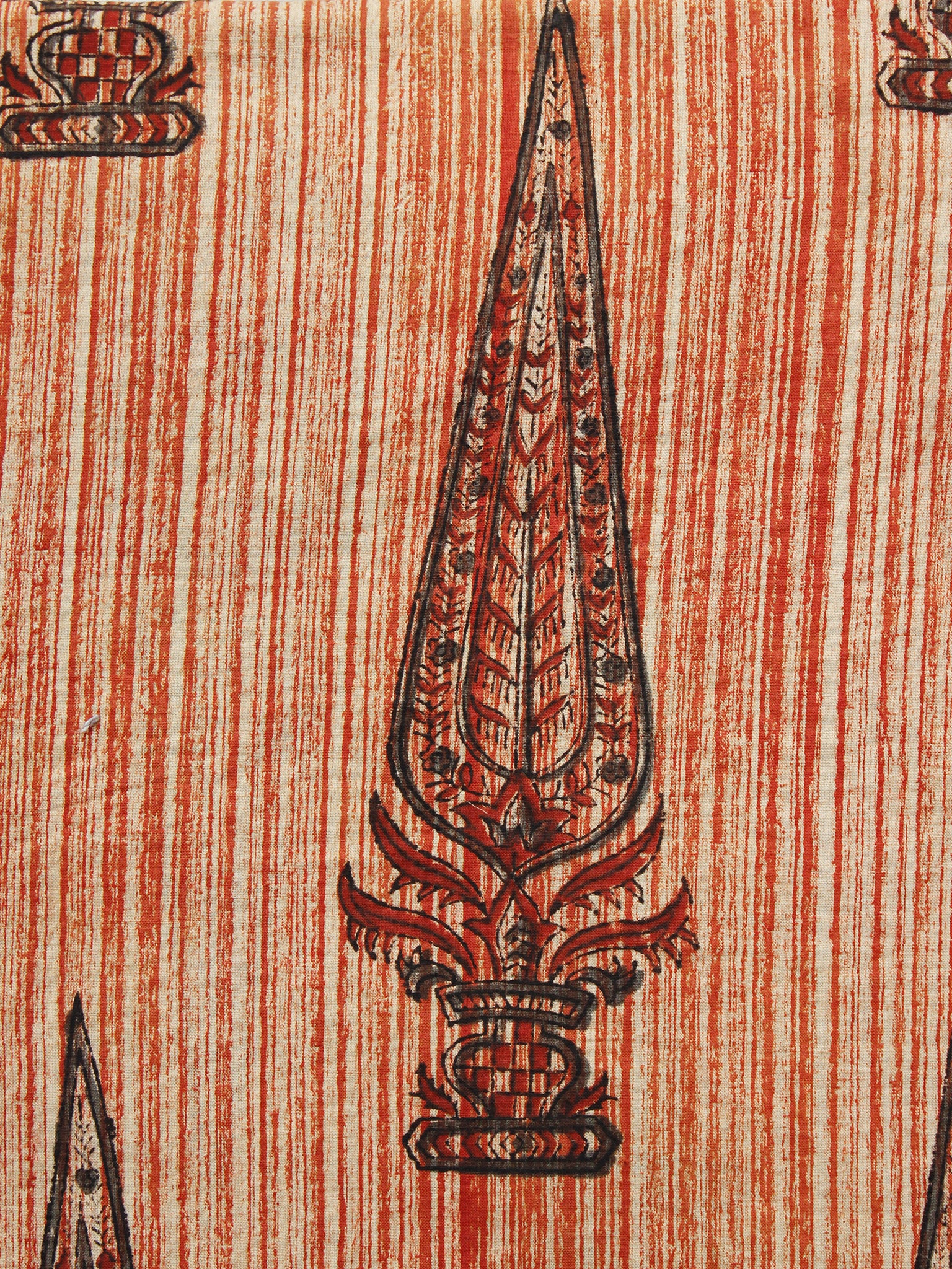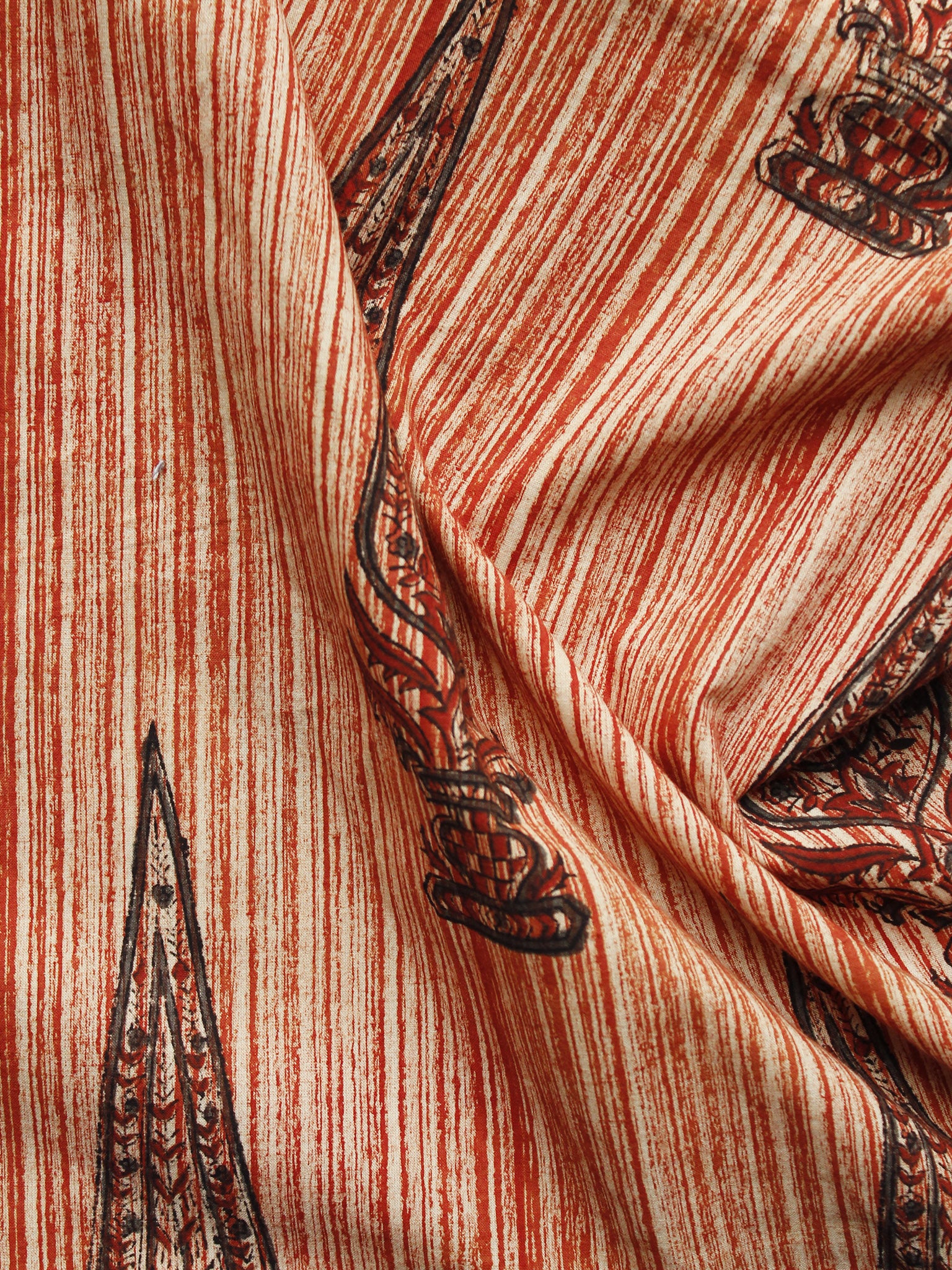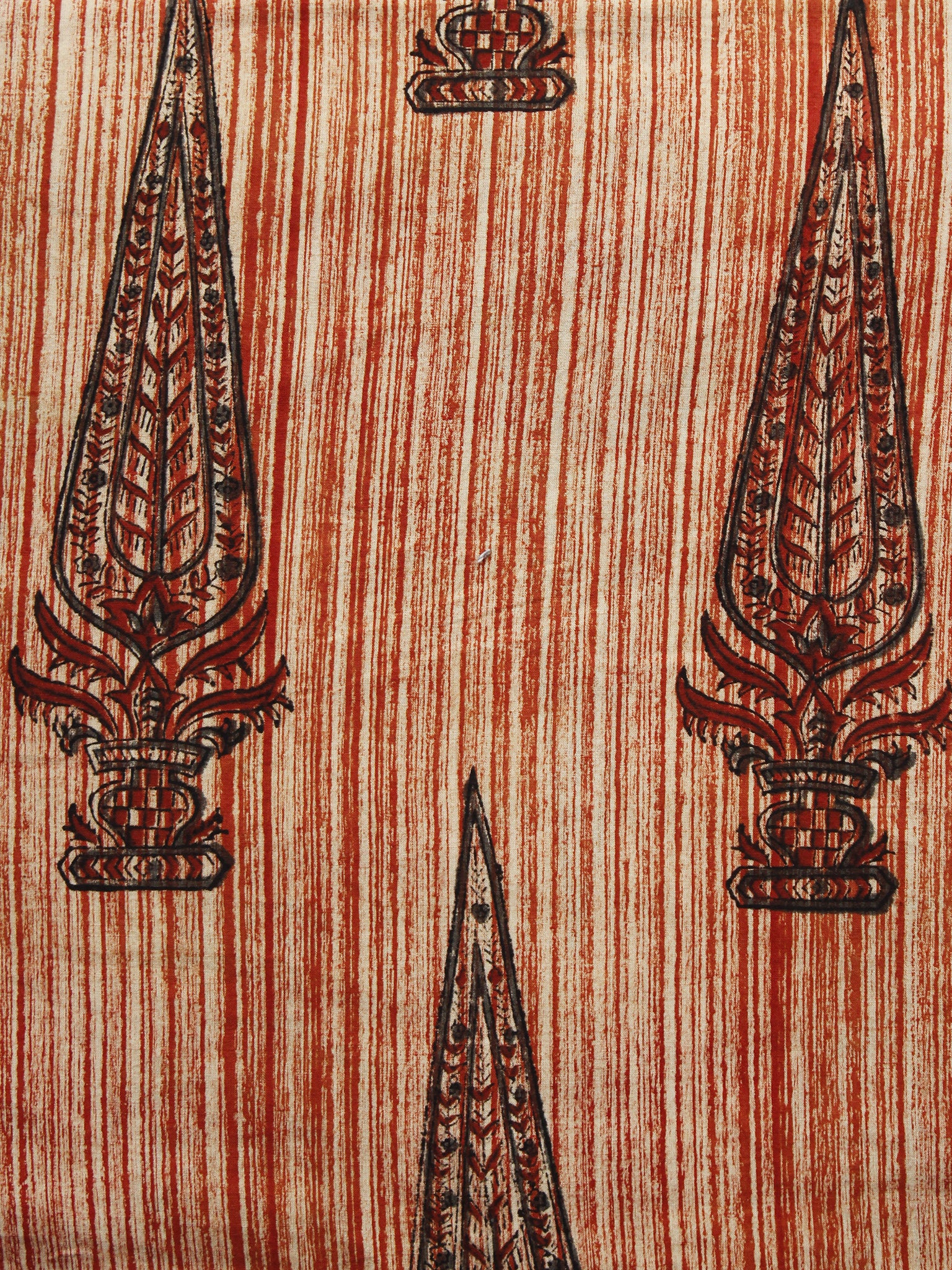 Beige Maroon Hand Block Printed Cotton Fabric Per Meter - F001F1078