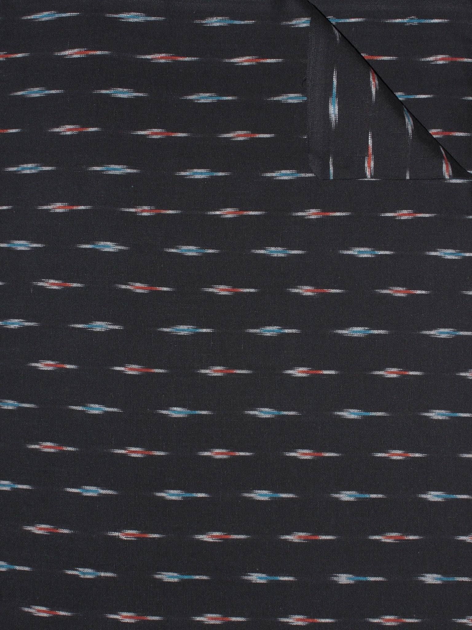 Black Blue Maroon Ivory Pochampally Hand Weaved Ikat Fabric Per Meter - F0916728