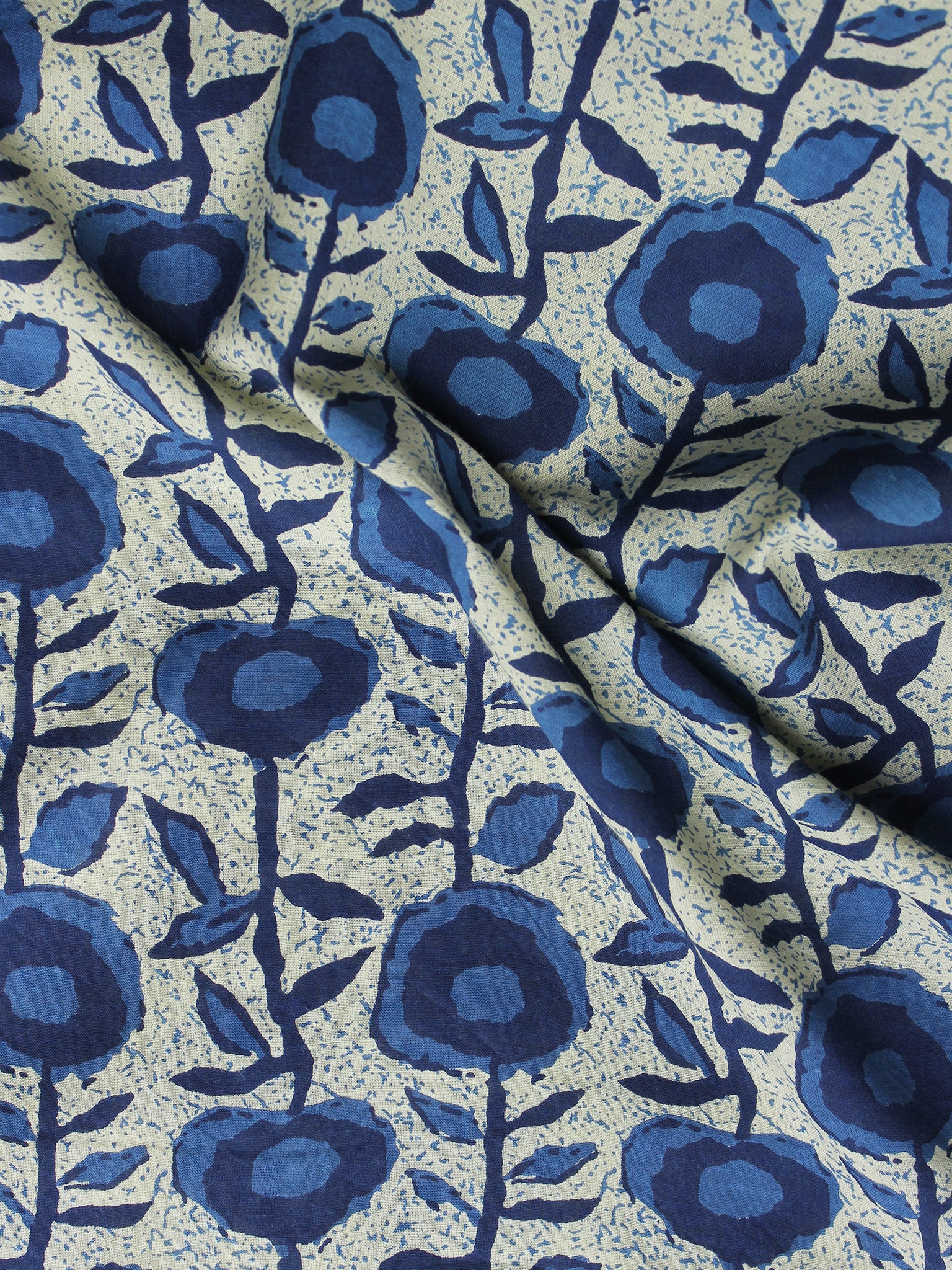 Indigo Ivory Hand Block Printed Cotton Fabric Per Meter - F001F1007