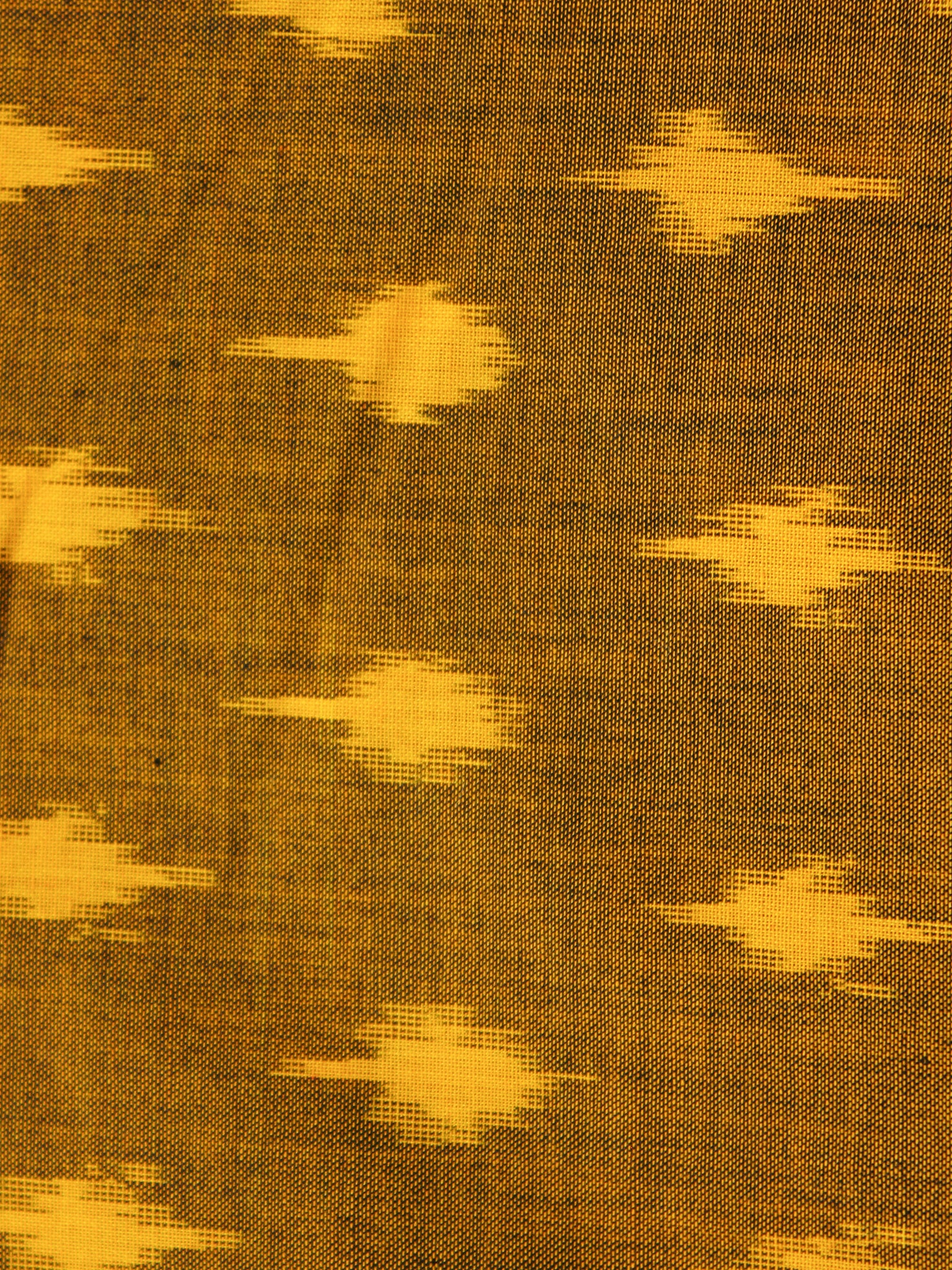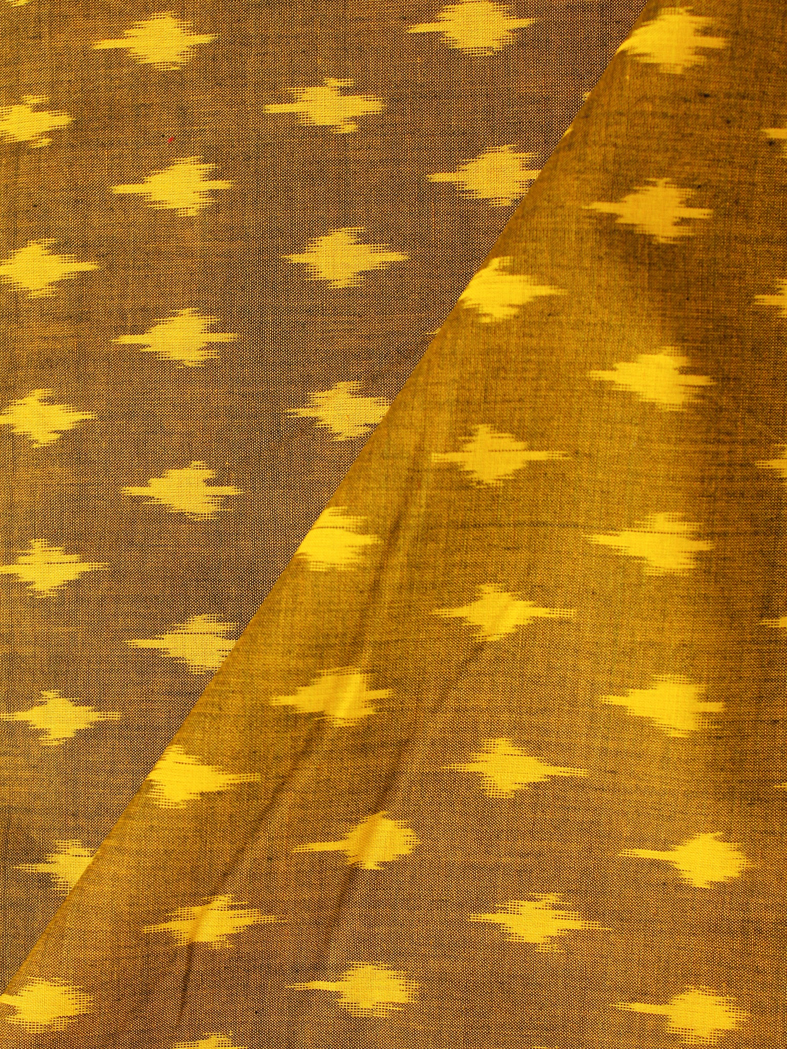 Mustard Yellow Pochampally Hand Weaved Ikat Mercerised Cotton Fabric Per Meter - F002F1987