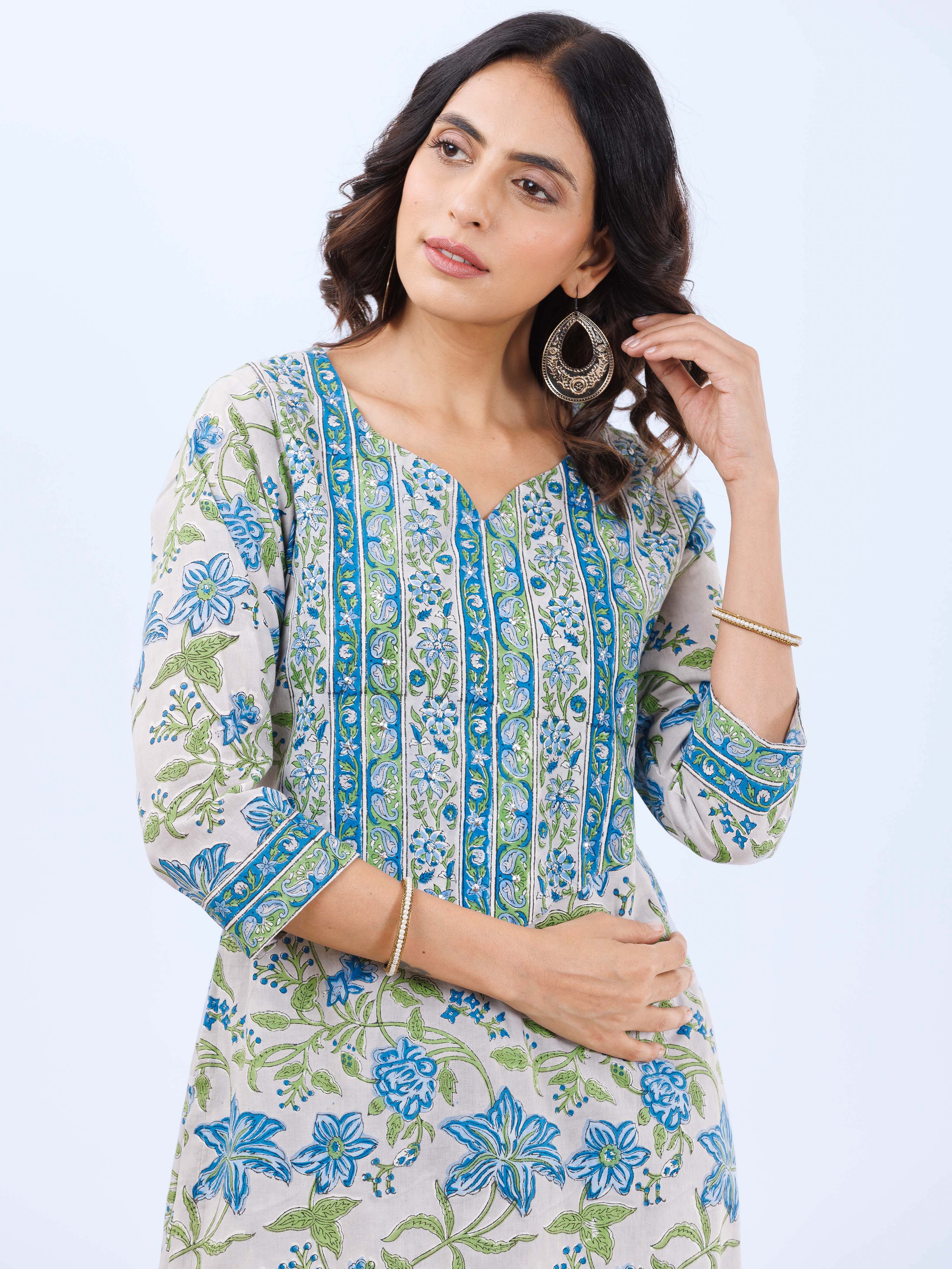 Hand Block Printed Cotton Fabric Per Meter - F001F2972