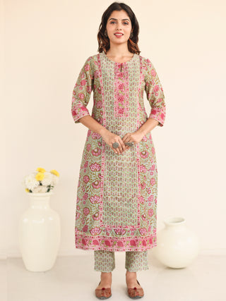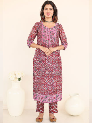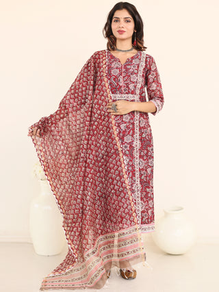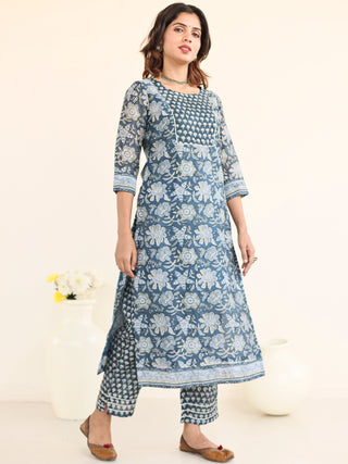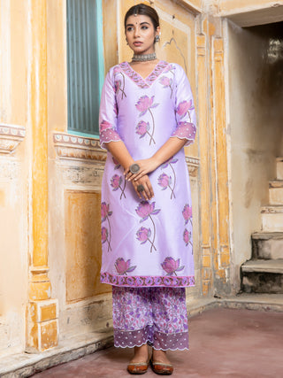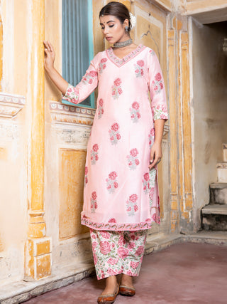 Utsav Bahaar Set Of Chanderi Silk Kurta Pants Dupatta