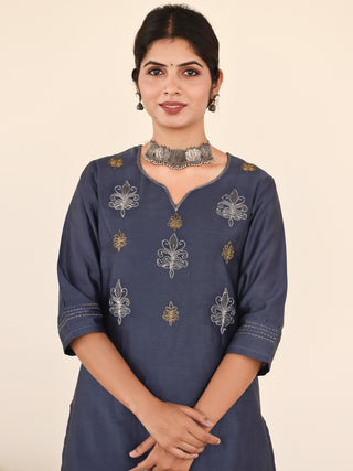 Utsav Kavya Set Of Chanderi Silk Kurta Pants Dupatta