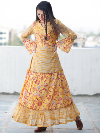 Minimalistic Moods - Hand Block Printed Long Chanderi Silk Dress - D356F1914