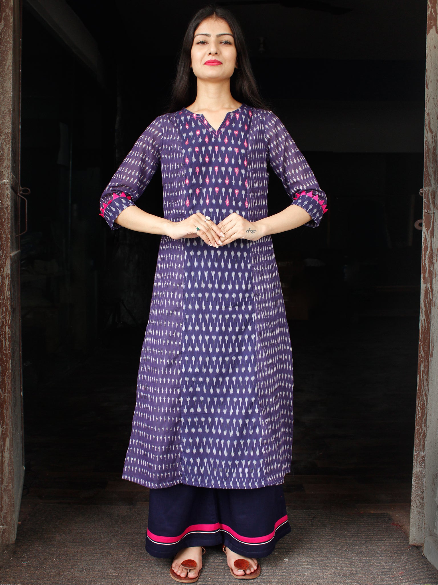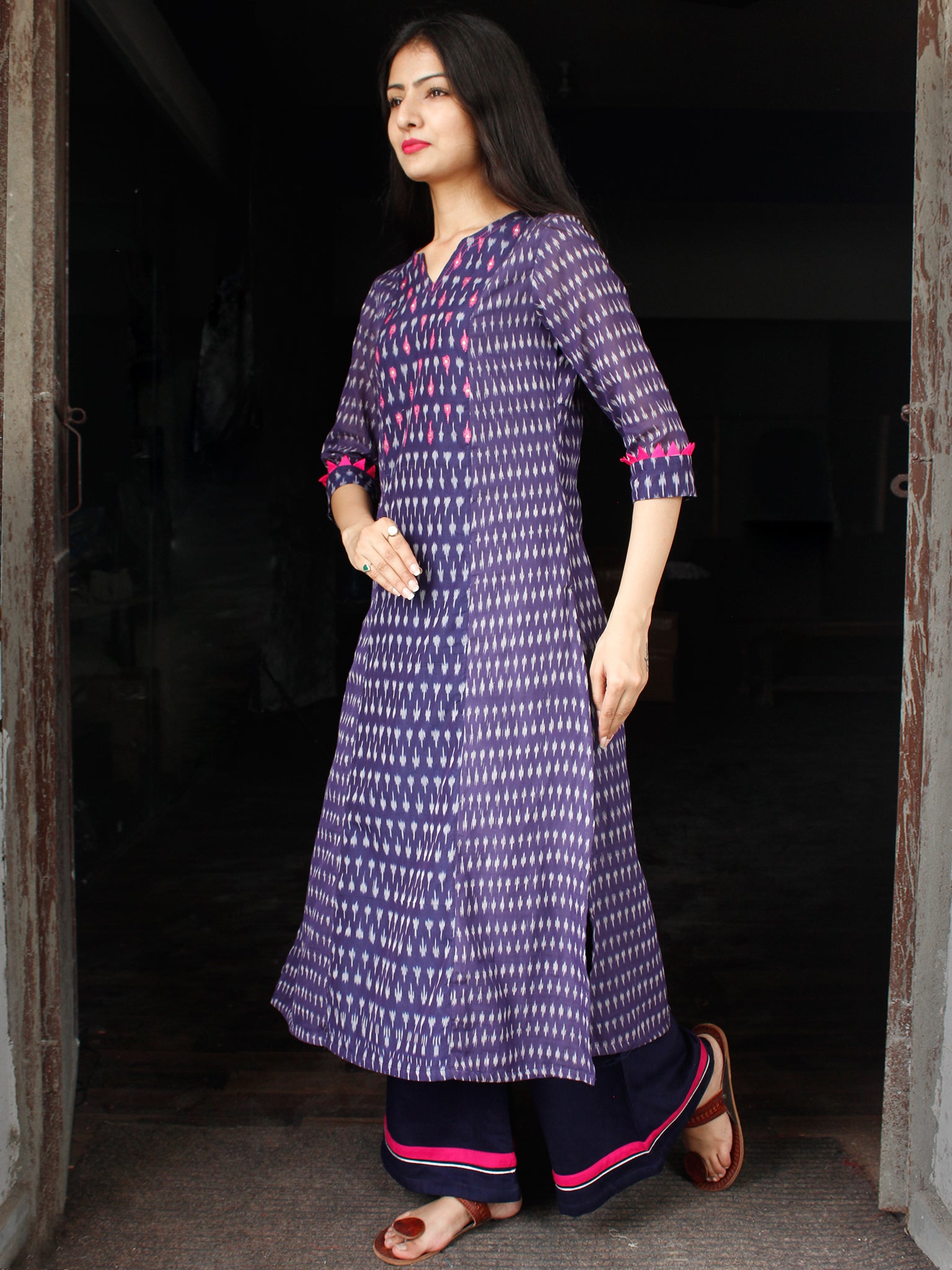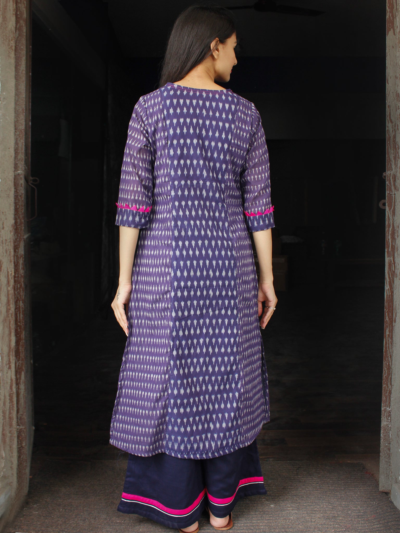 Purple Grey Silk Cotton Ikat Sequence Work Kurta & Palazzo (Set of 2) - SS01F1439