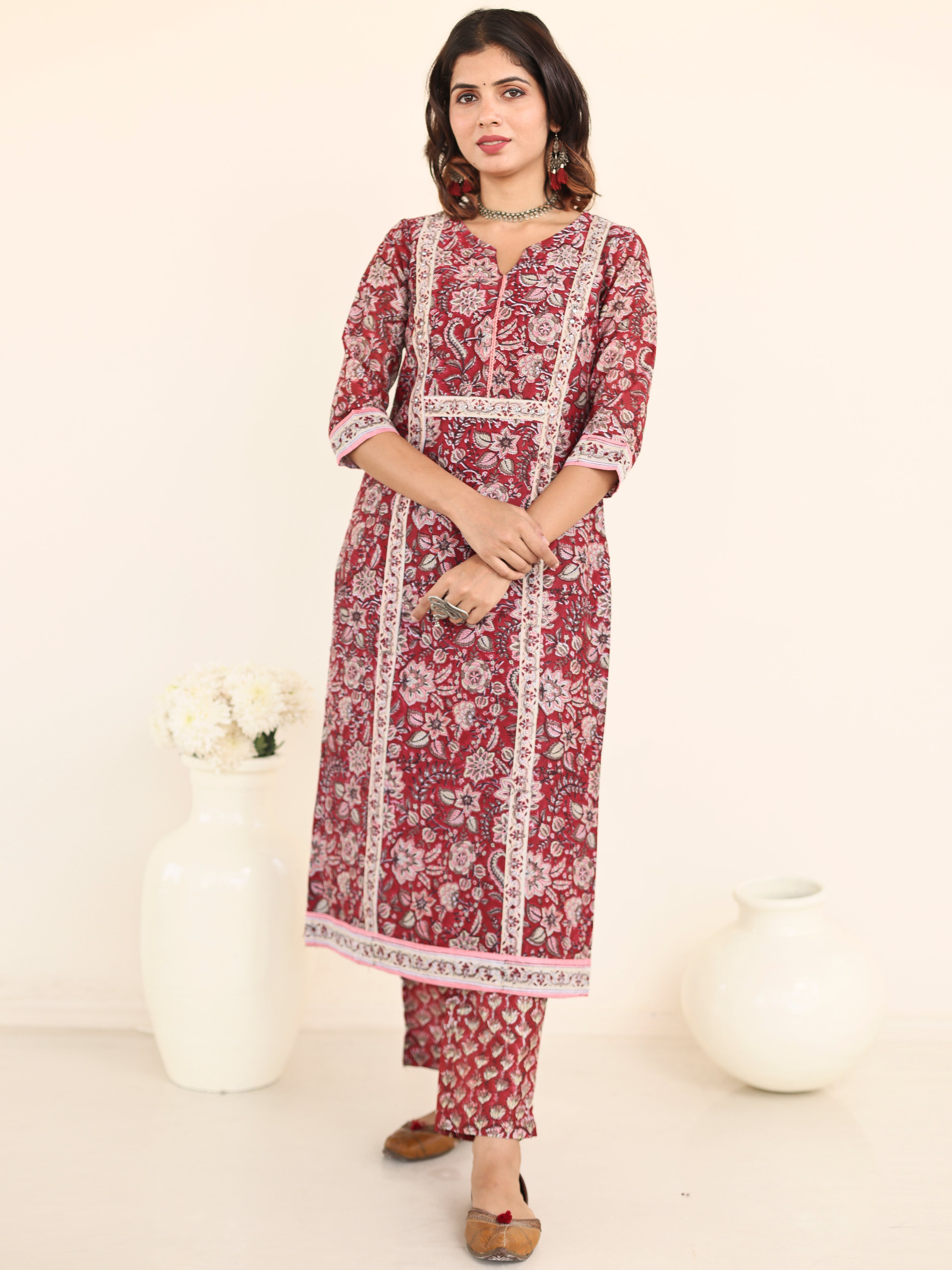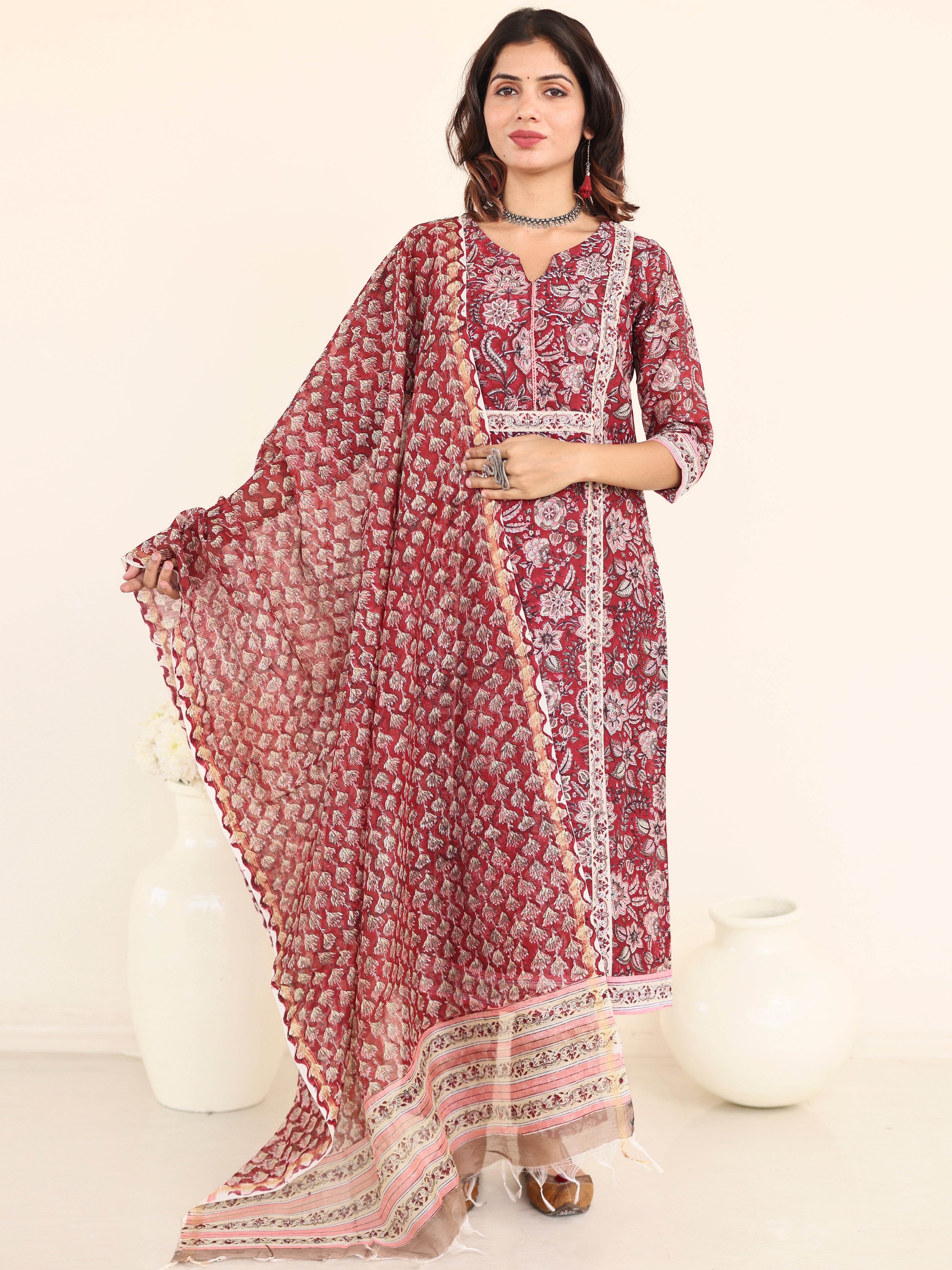 Product: This set contains Handcrafted Sanganeri Premium Chanderi Kurta With Mul lining, Modal Silk Pants and Chanderi Silk Dupatta.