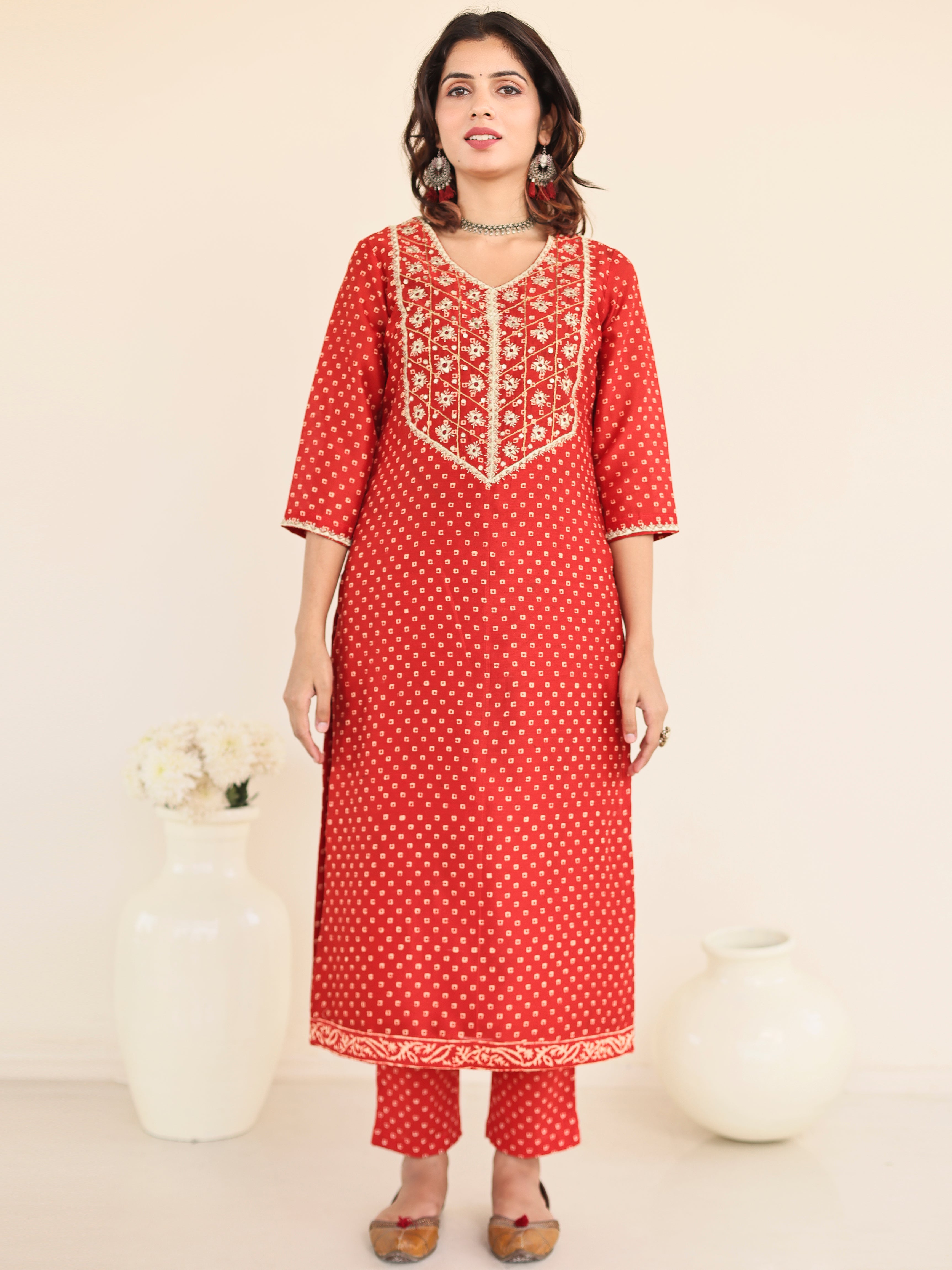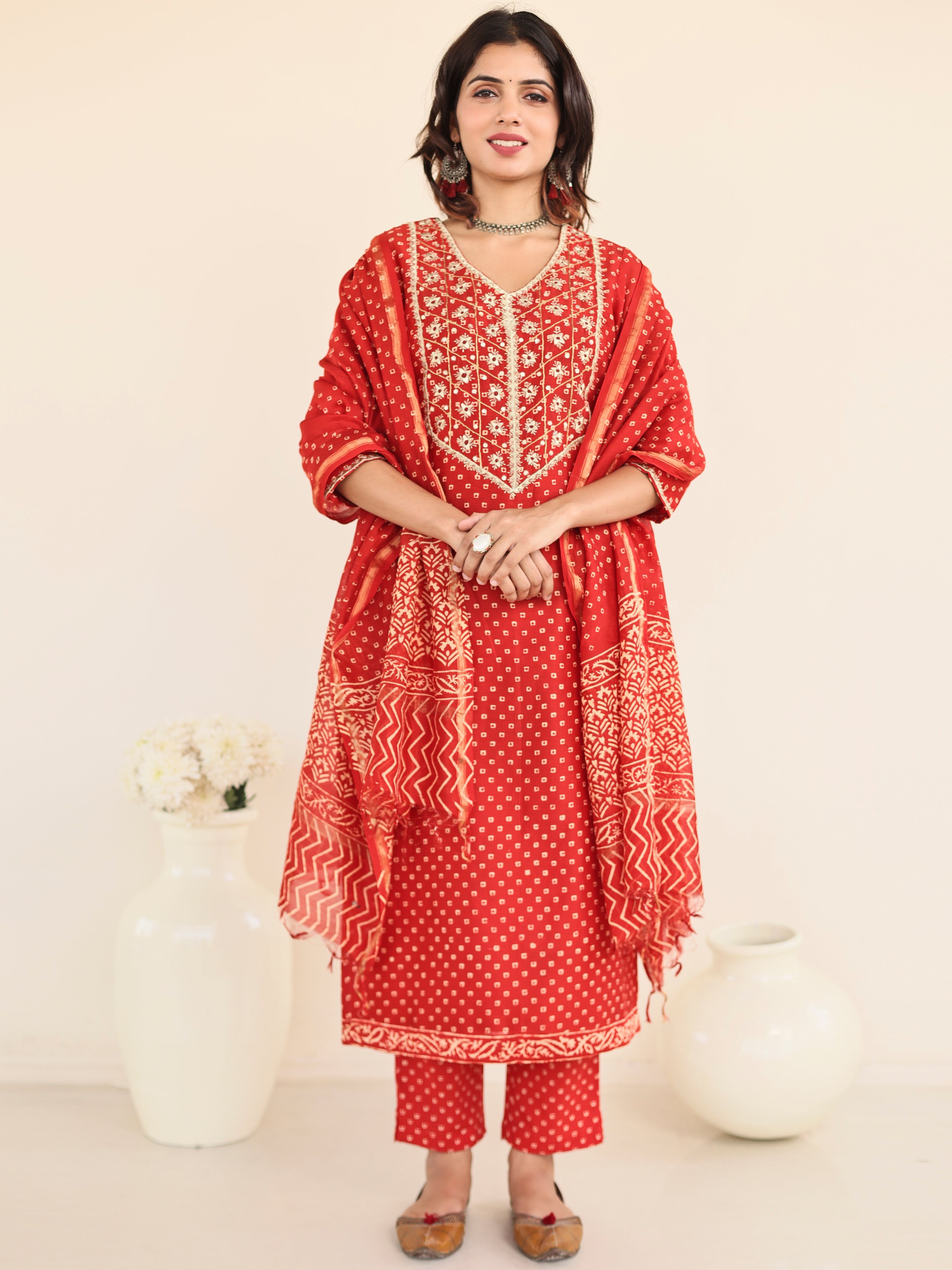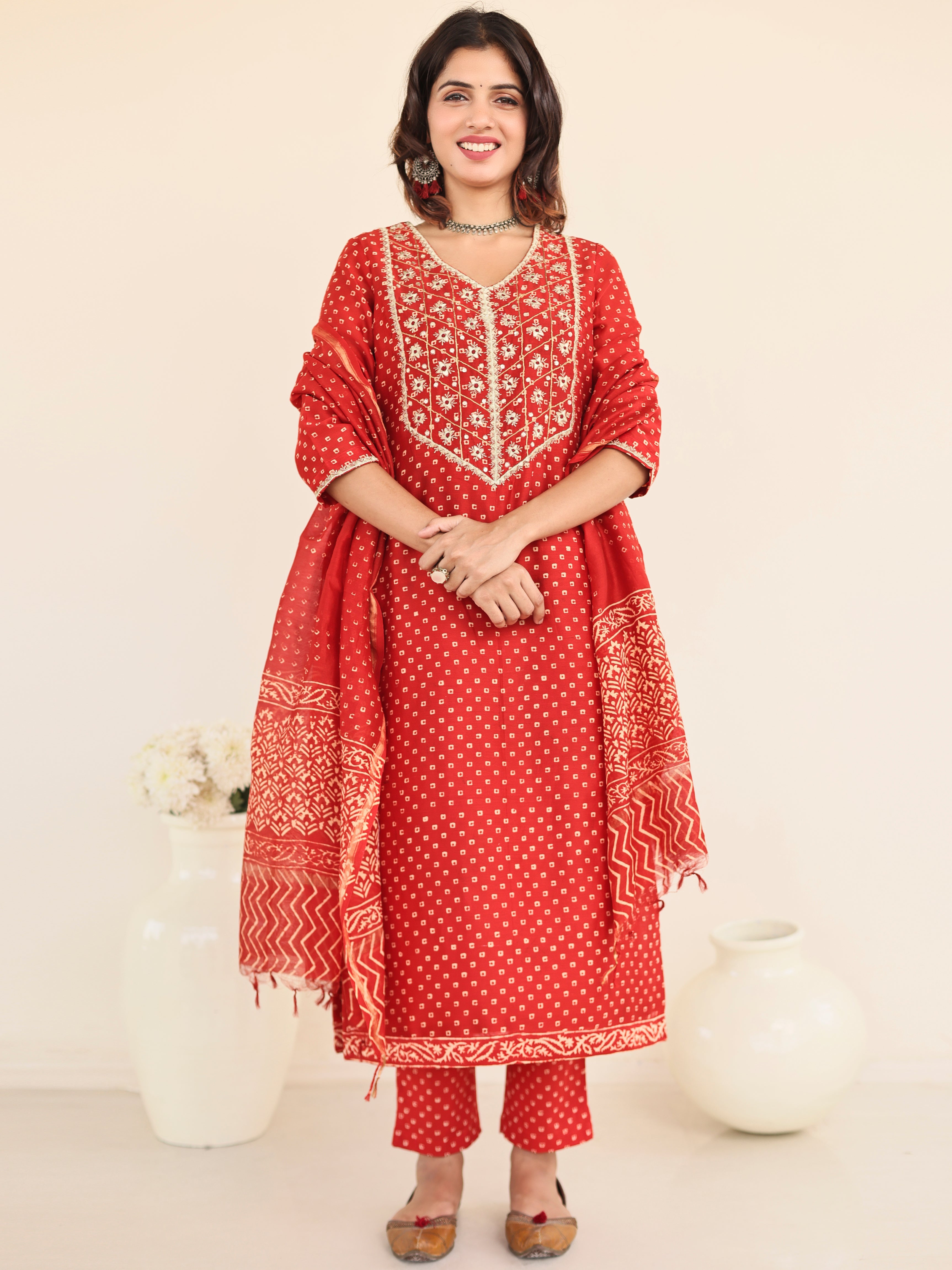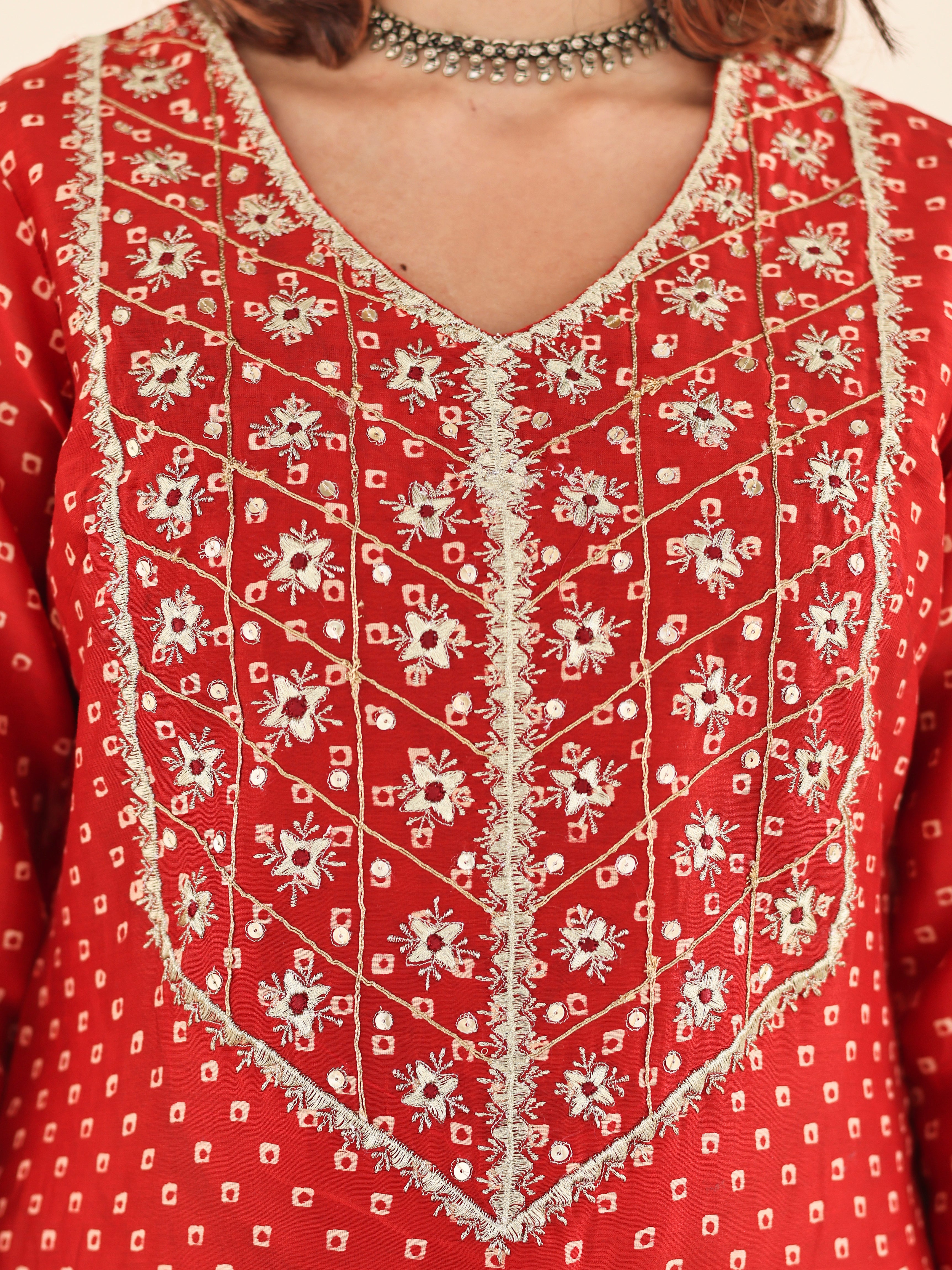 Product: This set contains Handcrafted Sanganeri Premium Chanderi Kurta With Mul lining, 100% Cotton Pants and Chanderi Silk Dupatta.
