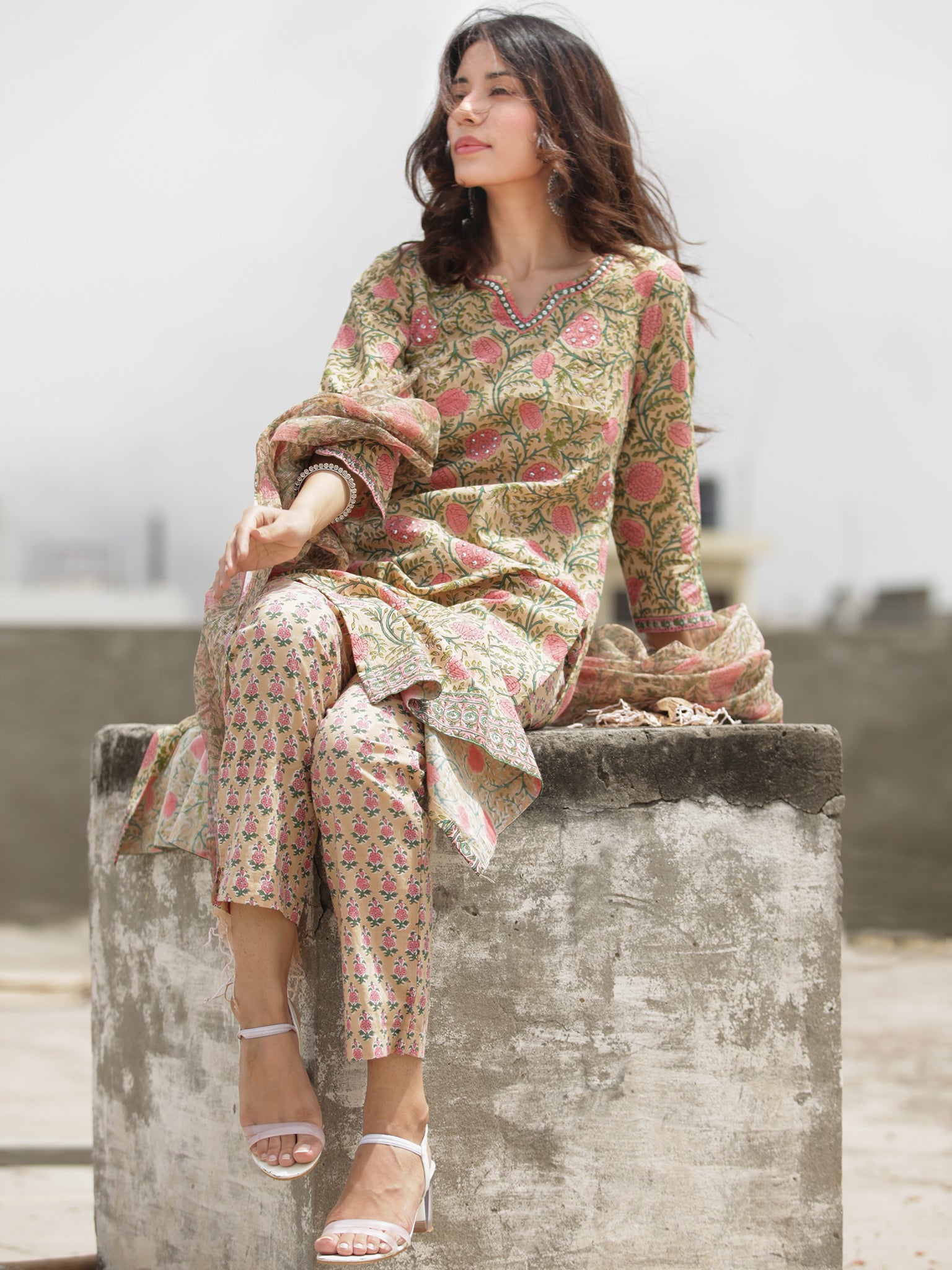 Fabric : Hand Block Printed. Kurta - Cotton. Pants - Cotton, Dupatta - Kota Doria