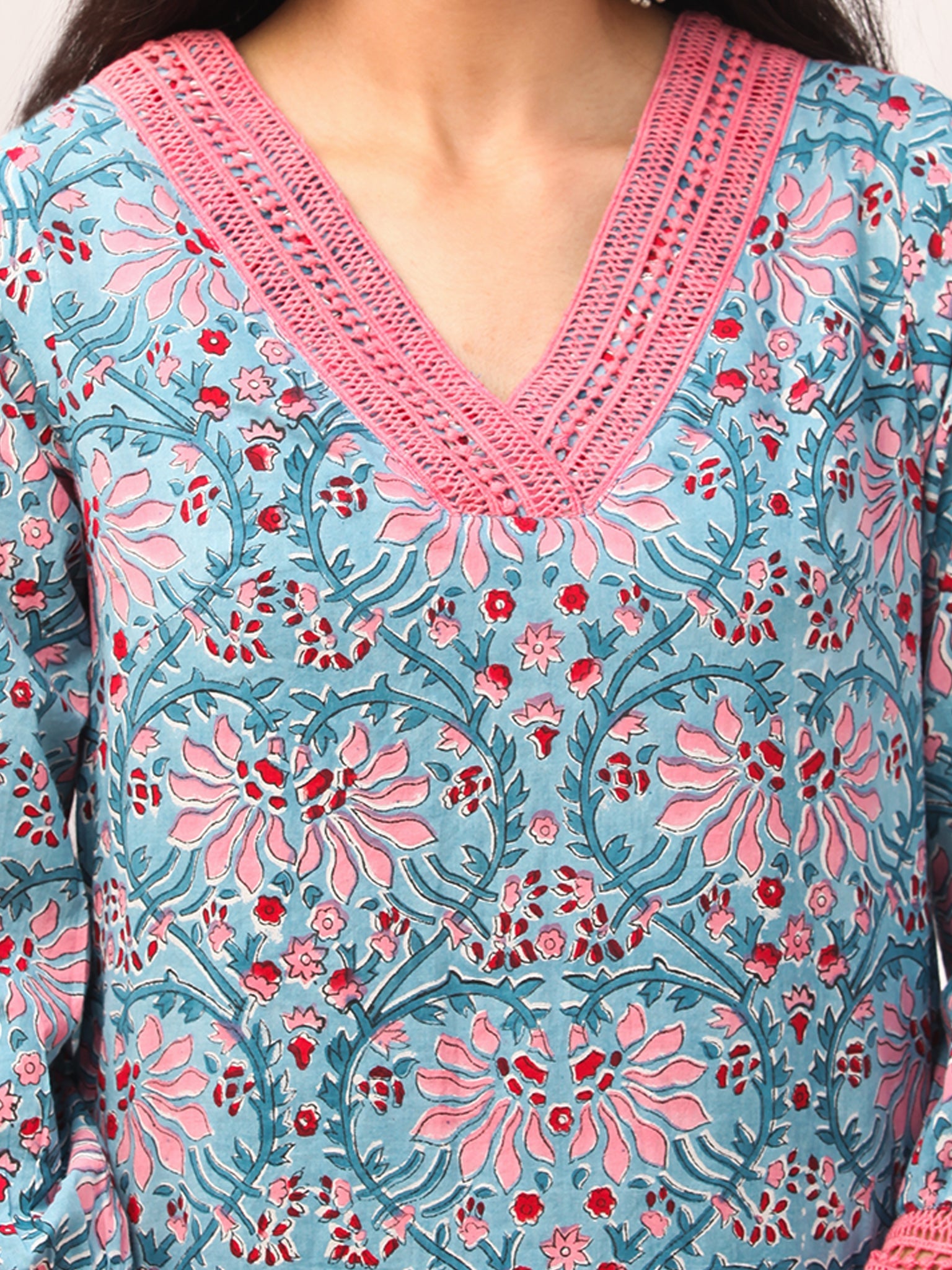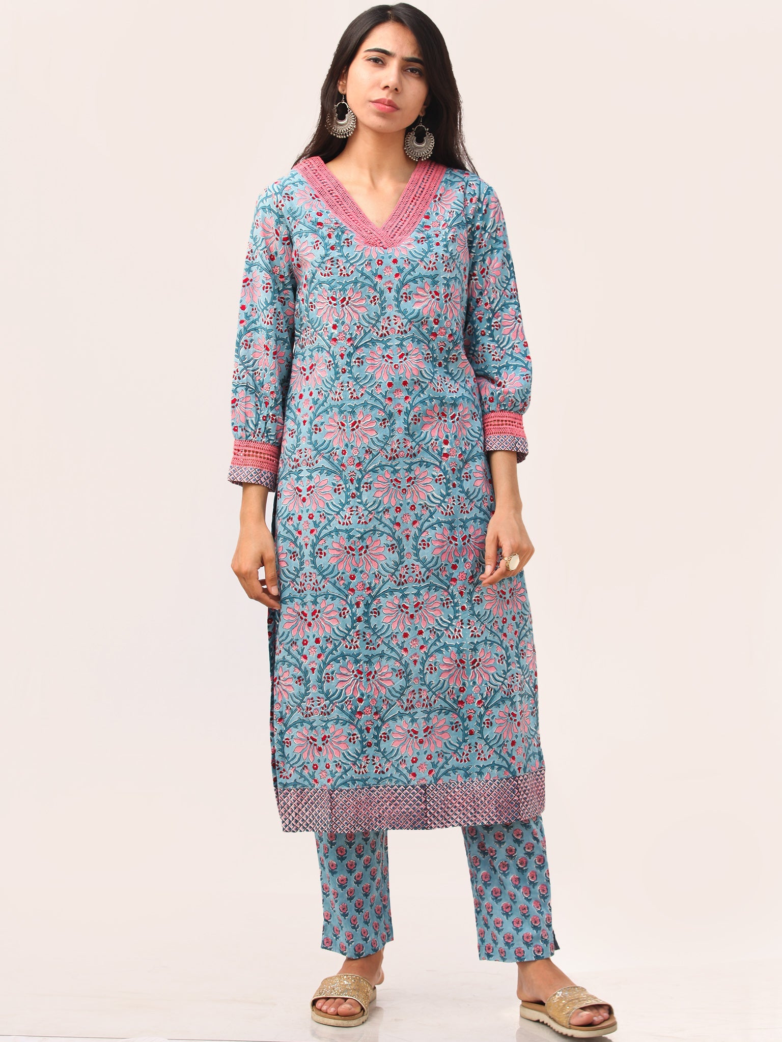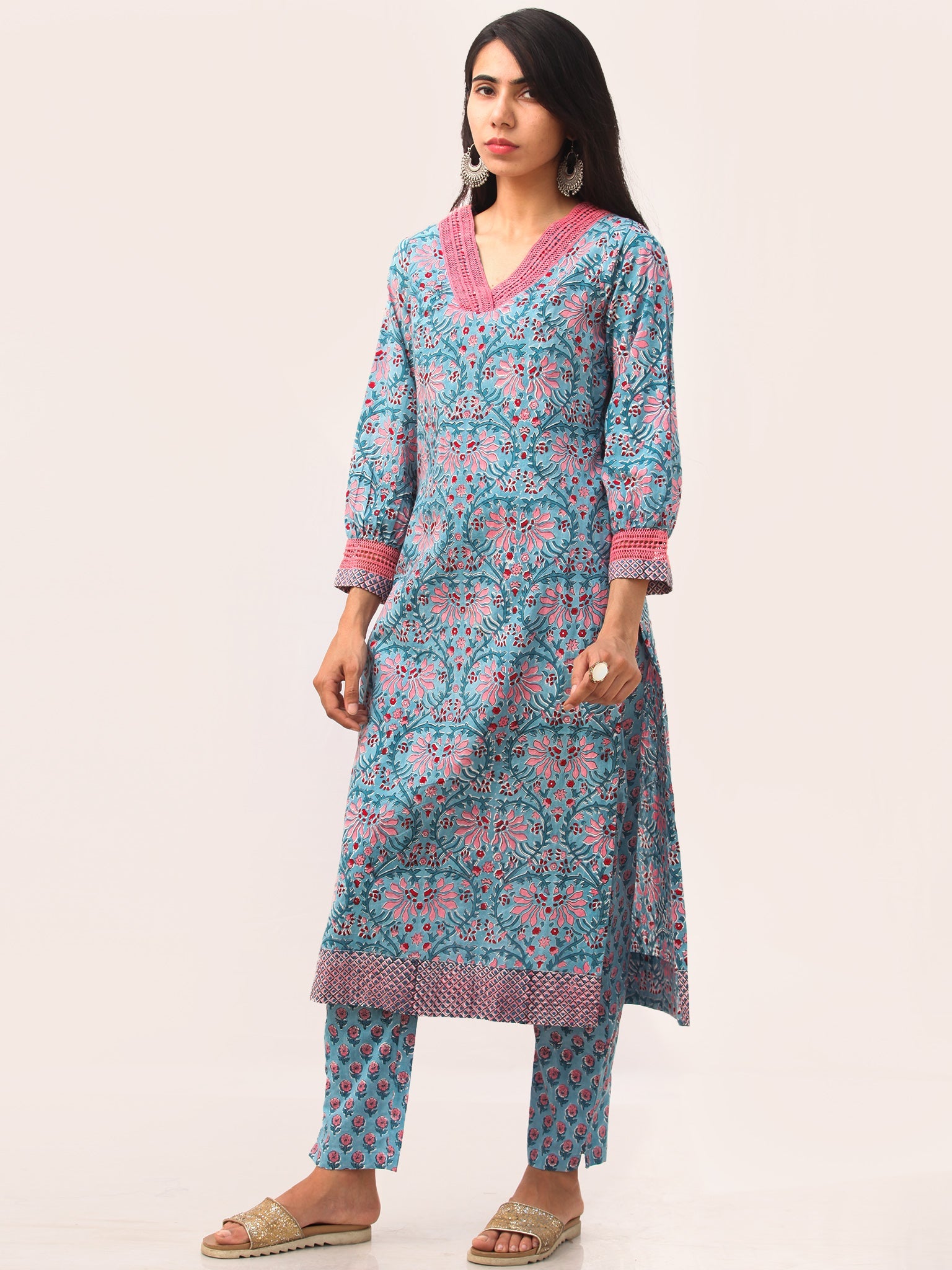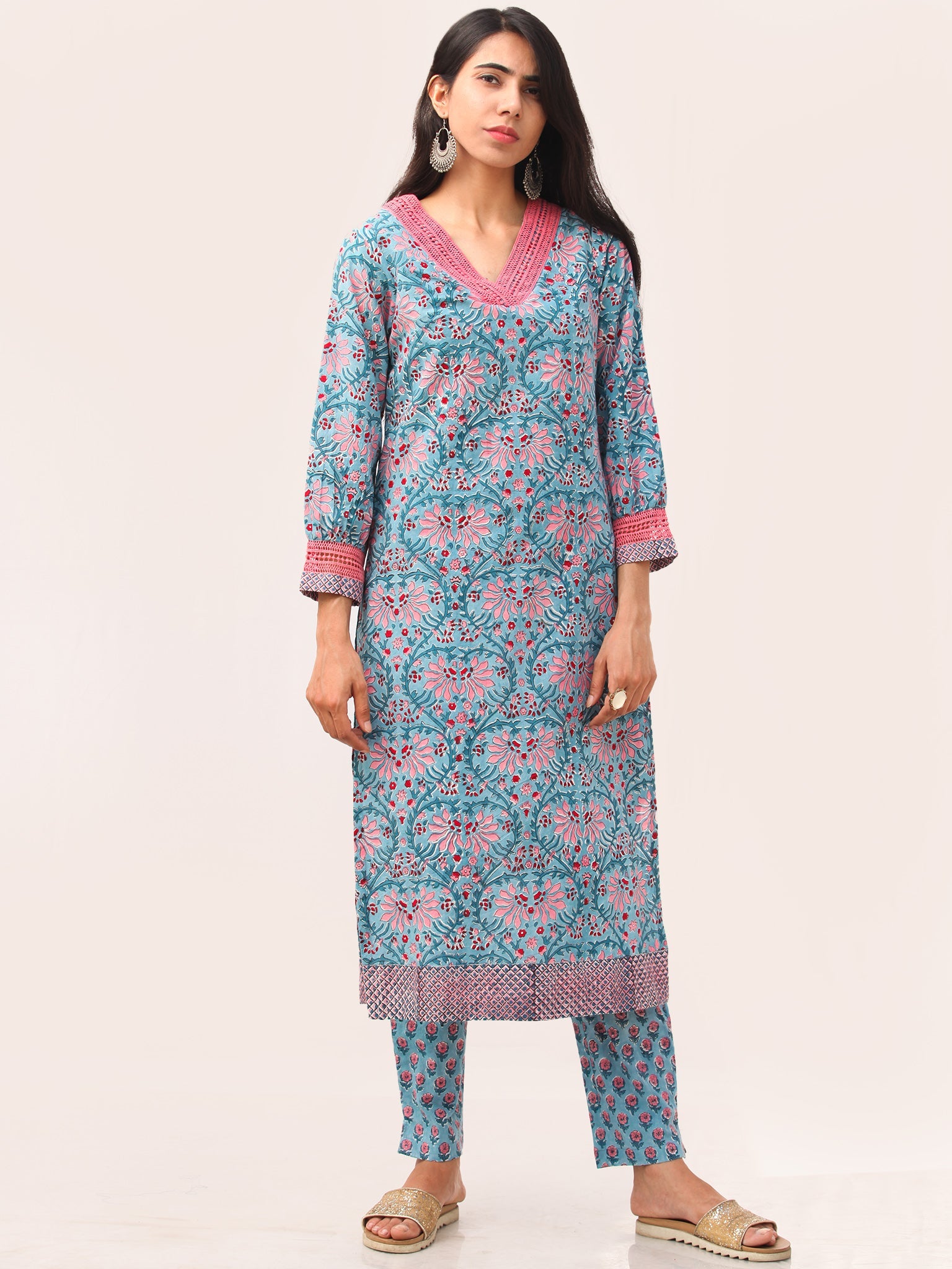 Product: Contains Hand Block Printed Cotton Kurta. Matching Pants/Bottoms and Dupatta are also available separately under BUY THE LOOK section.