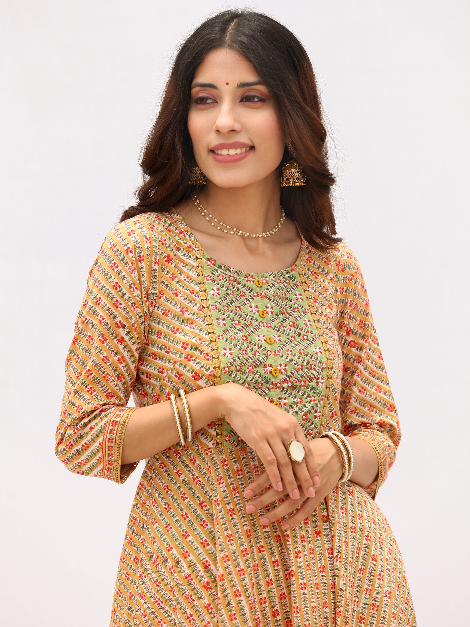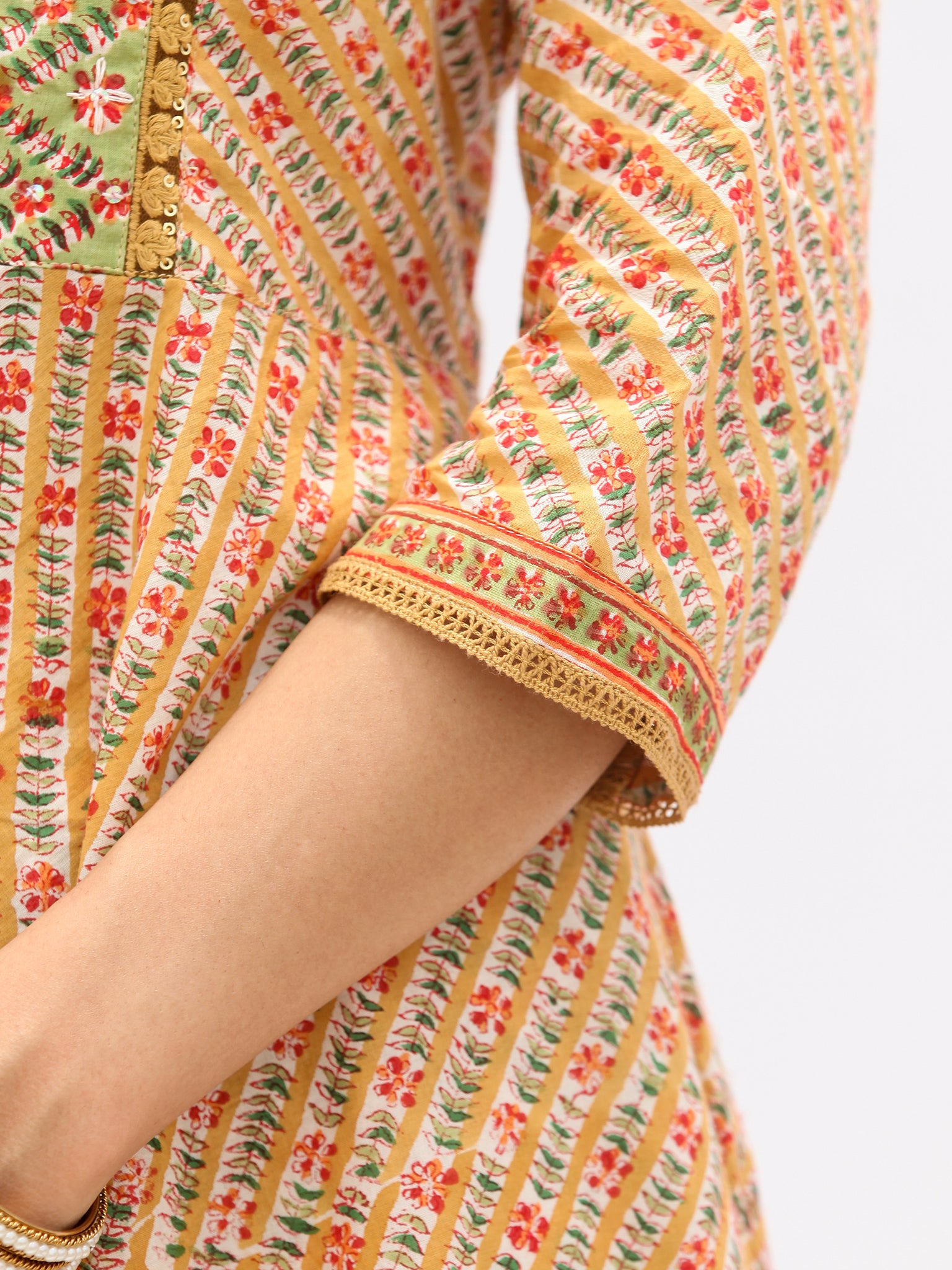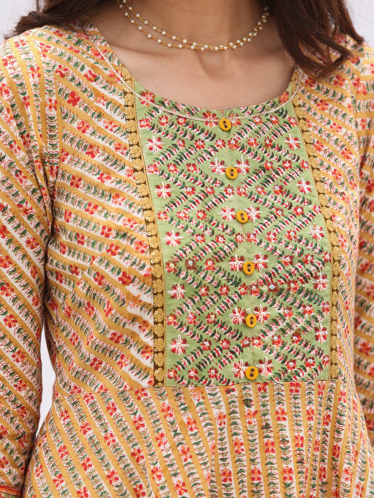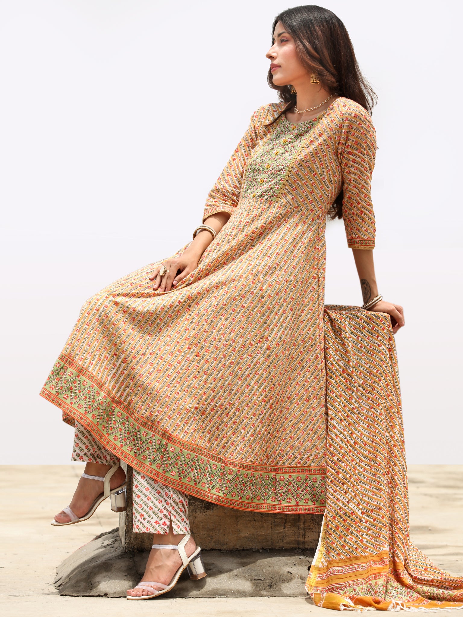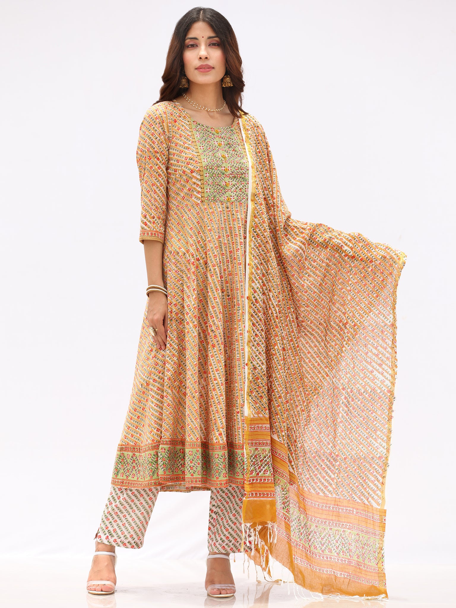 Product: This set contains Handcrafted Sanganeri Premium Cotton Kurta, 100% Cotton Pants and Cotton Dupatta.