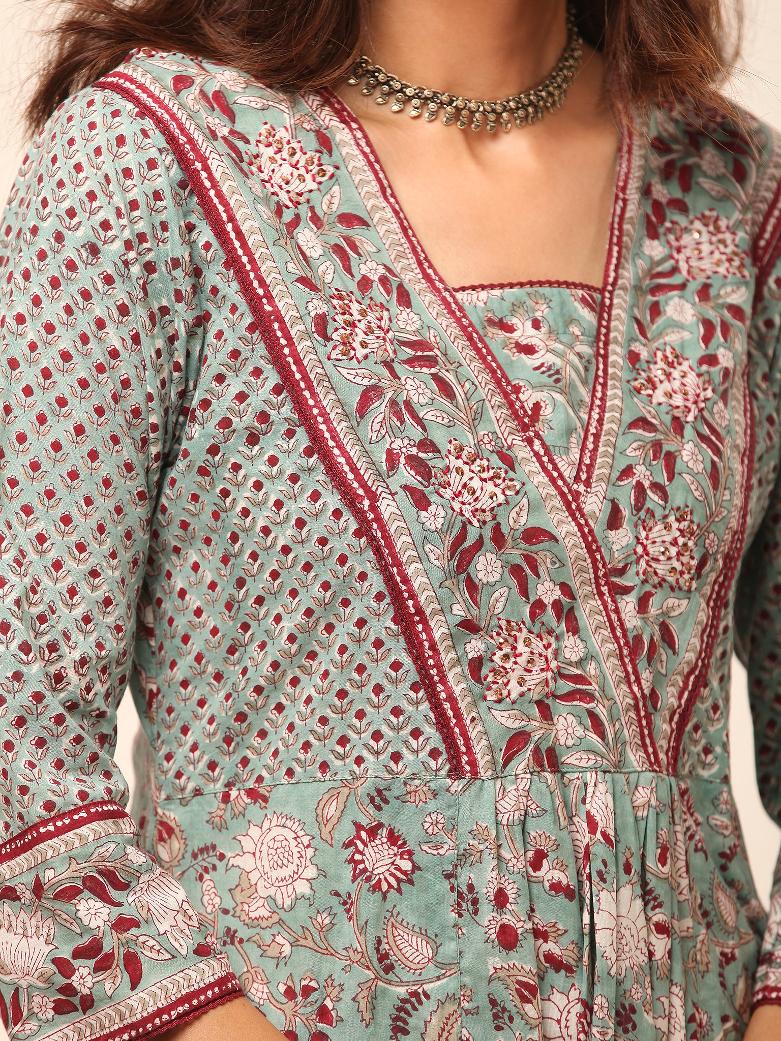Product: Contains Hand Block Printed Cotton Kurta. Matching Pants/Bottoms and Dupatta are also available separately under BUY THE LOOK section.