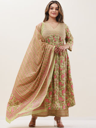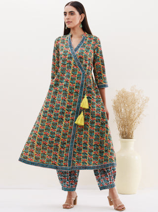 Gazal Pari Set Of Angrakha Kurta Pants Kota Doria Dupatta
