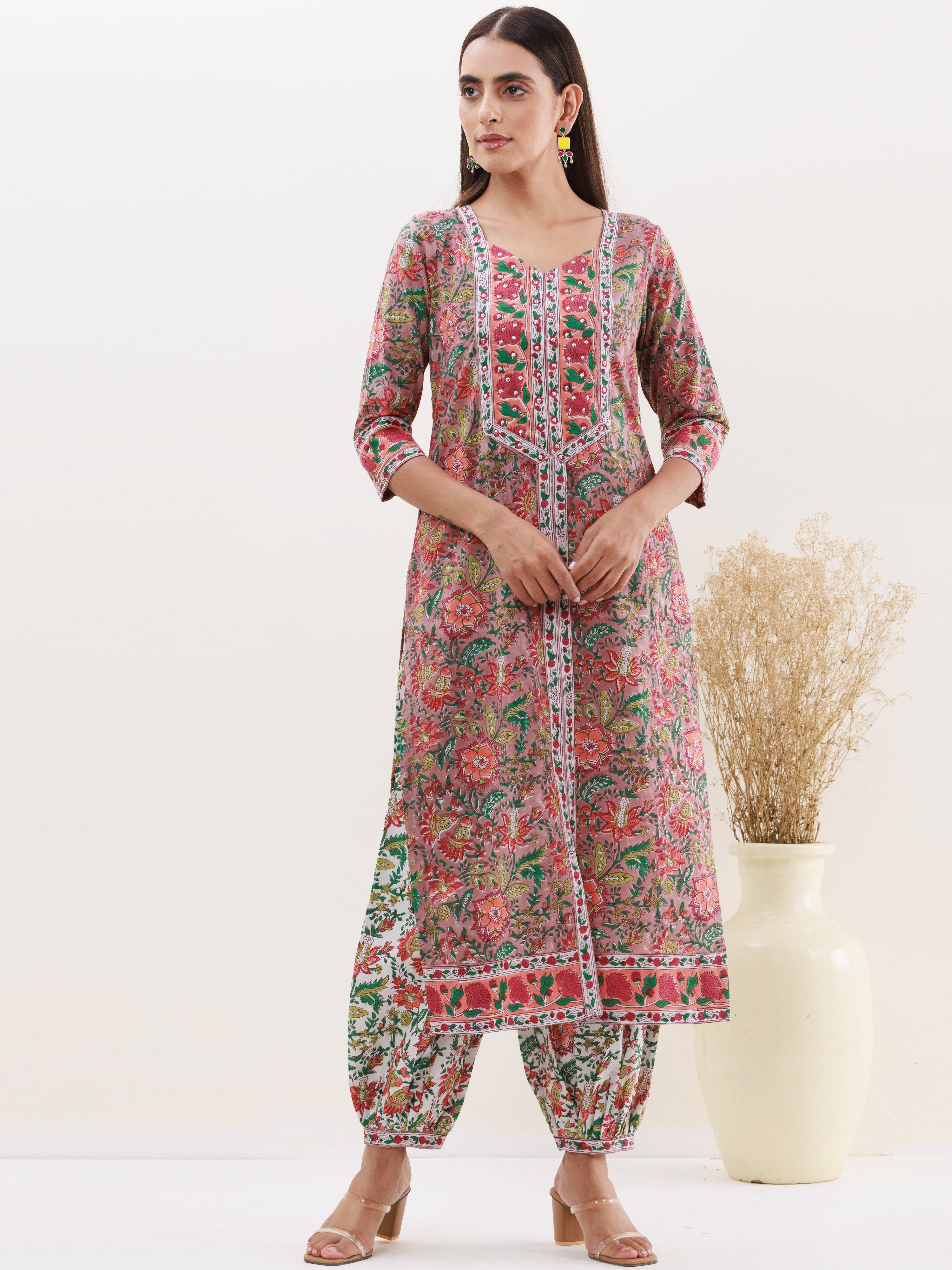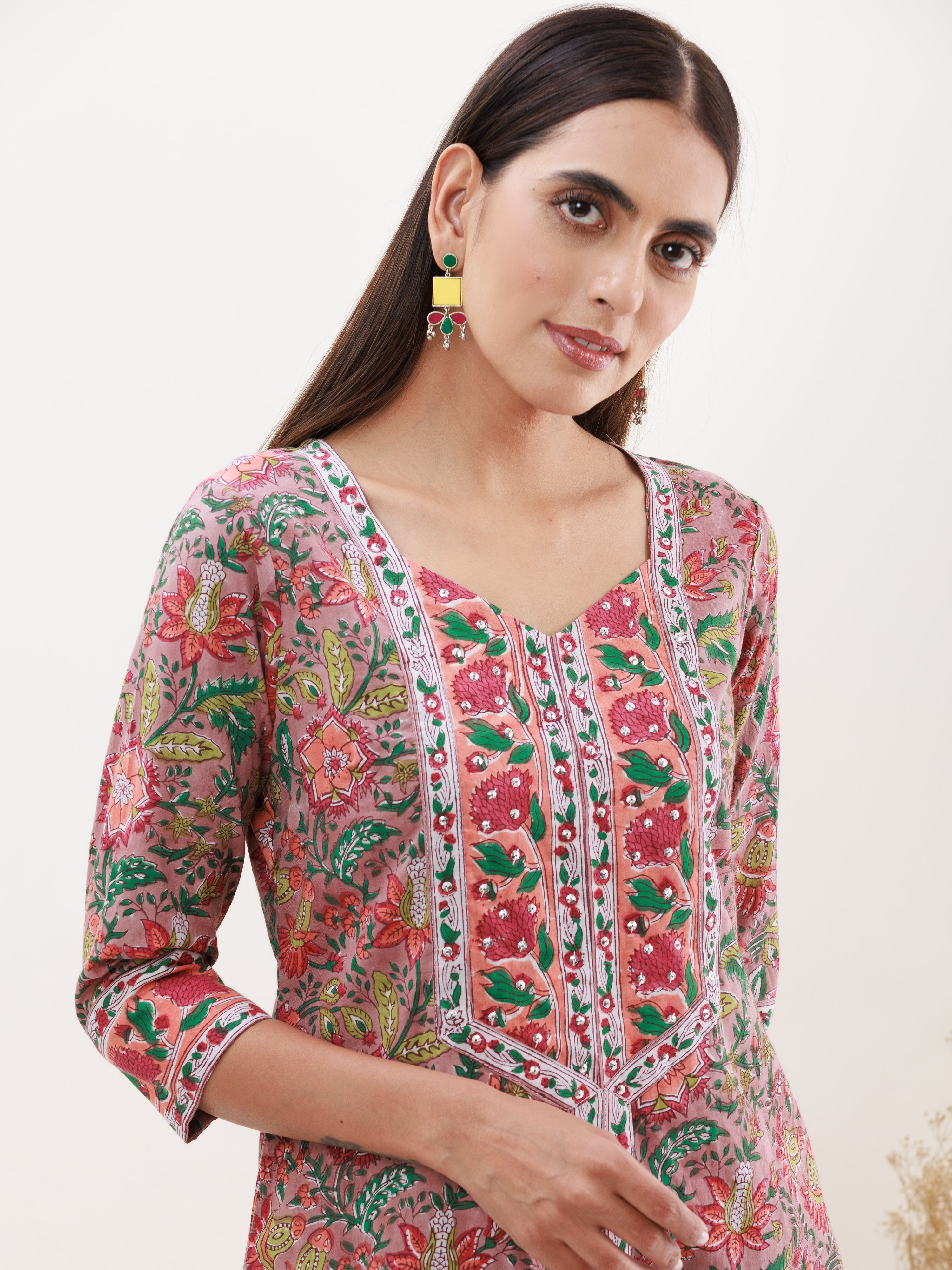 Product: Contains Hand Block Printed Cotton Kurta. Matching Pants/Bottoms and Dupatta are also available separately under BUY THE LOOK section.