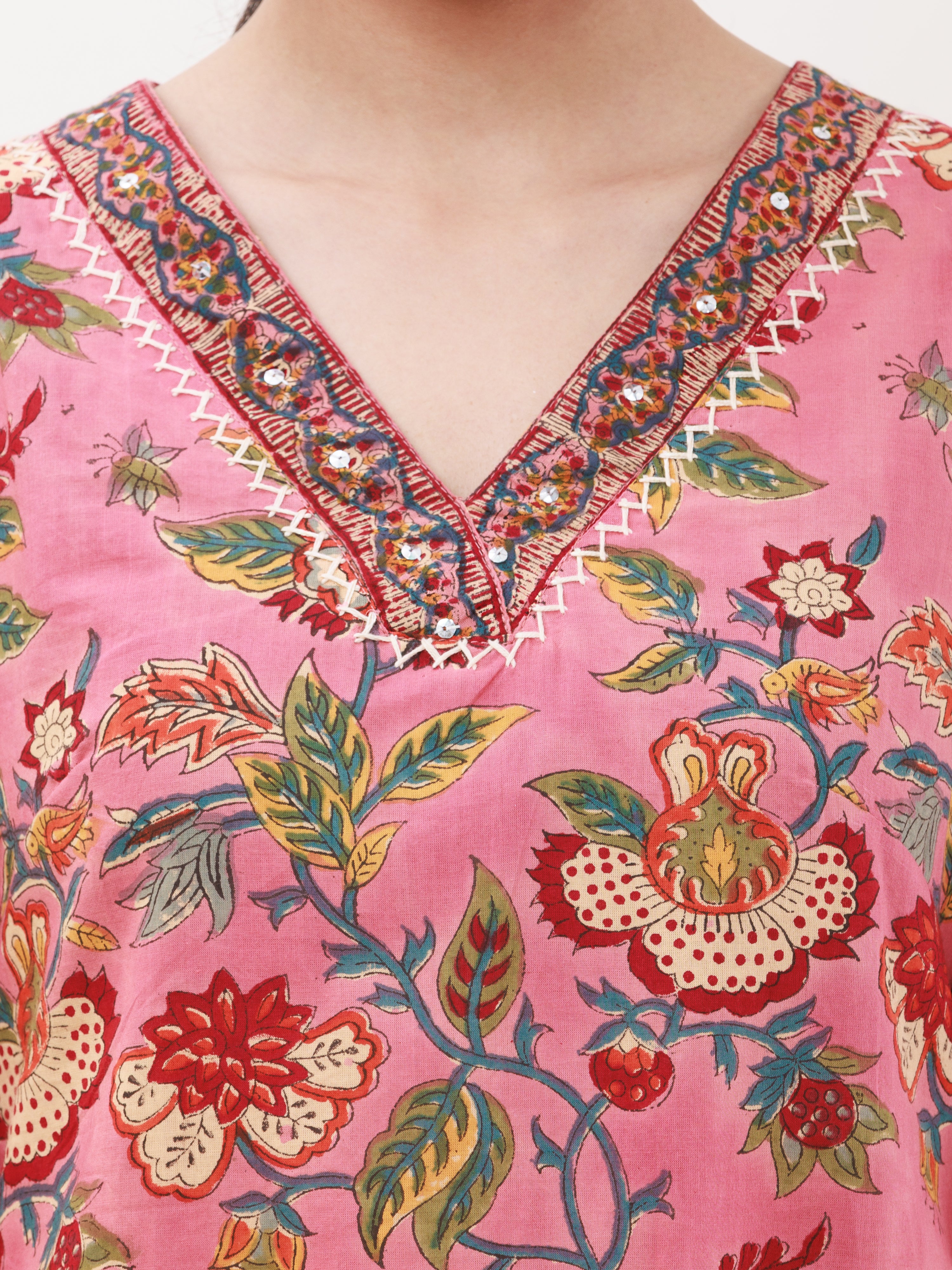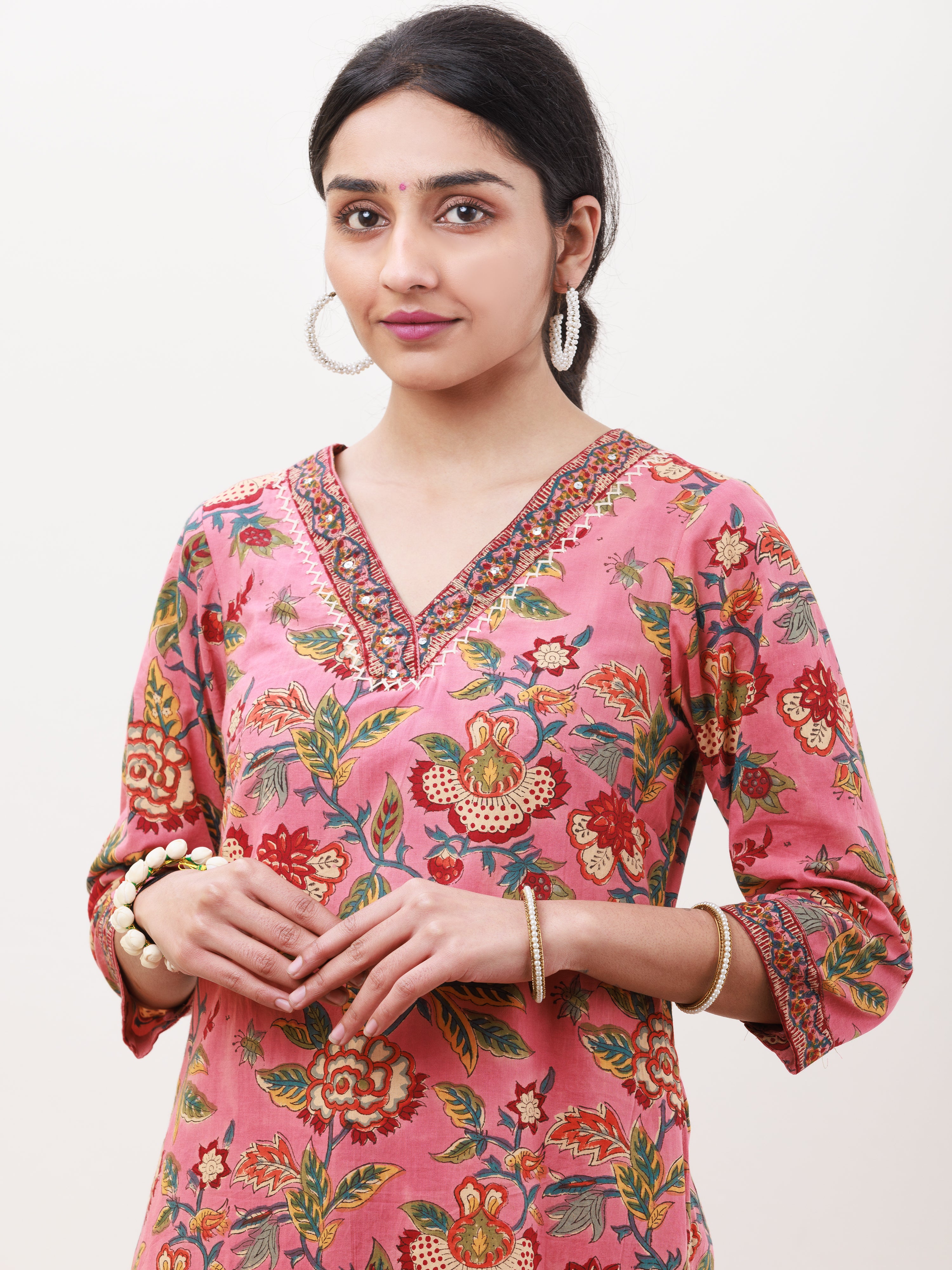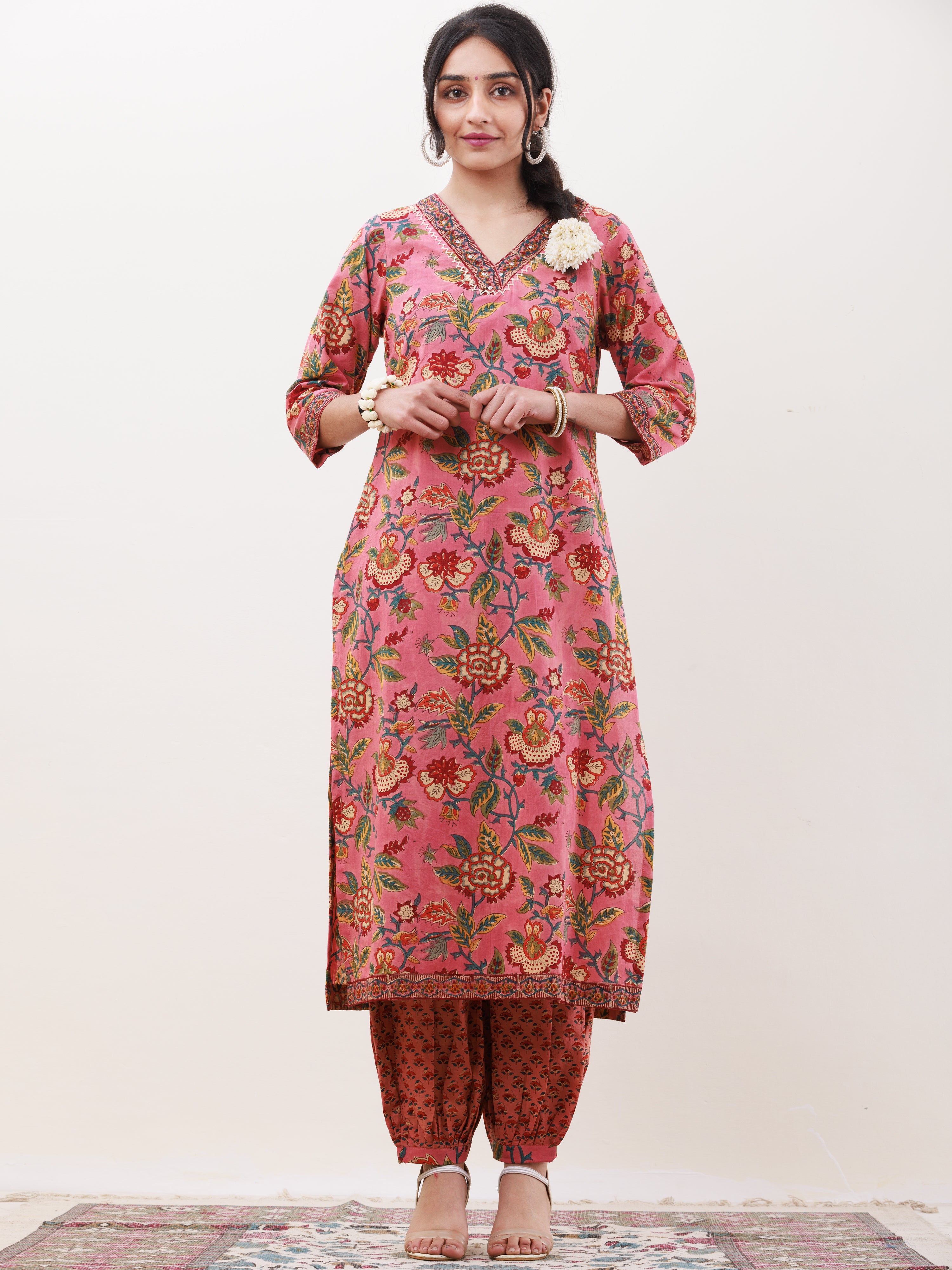 Product: This set contains Handcrafted Sanganeri Premium Cotton Kurta, 100% Cotton Pants and Cotton Mul Mul Dupatta.