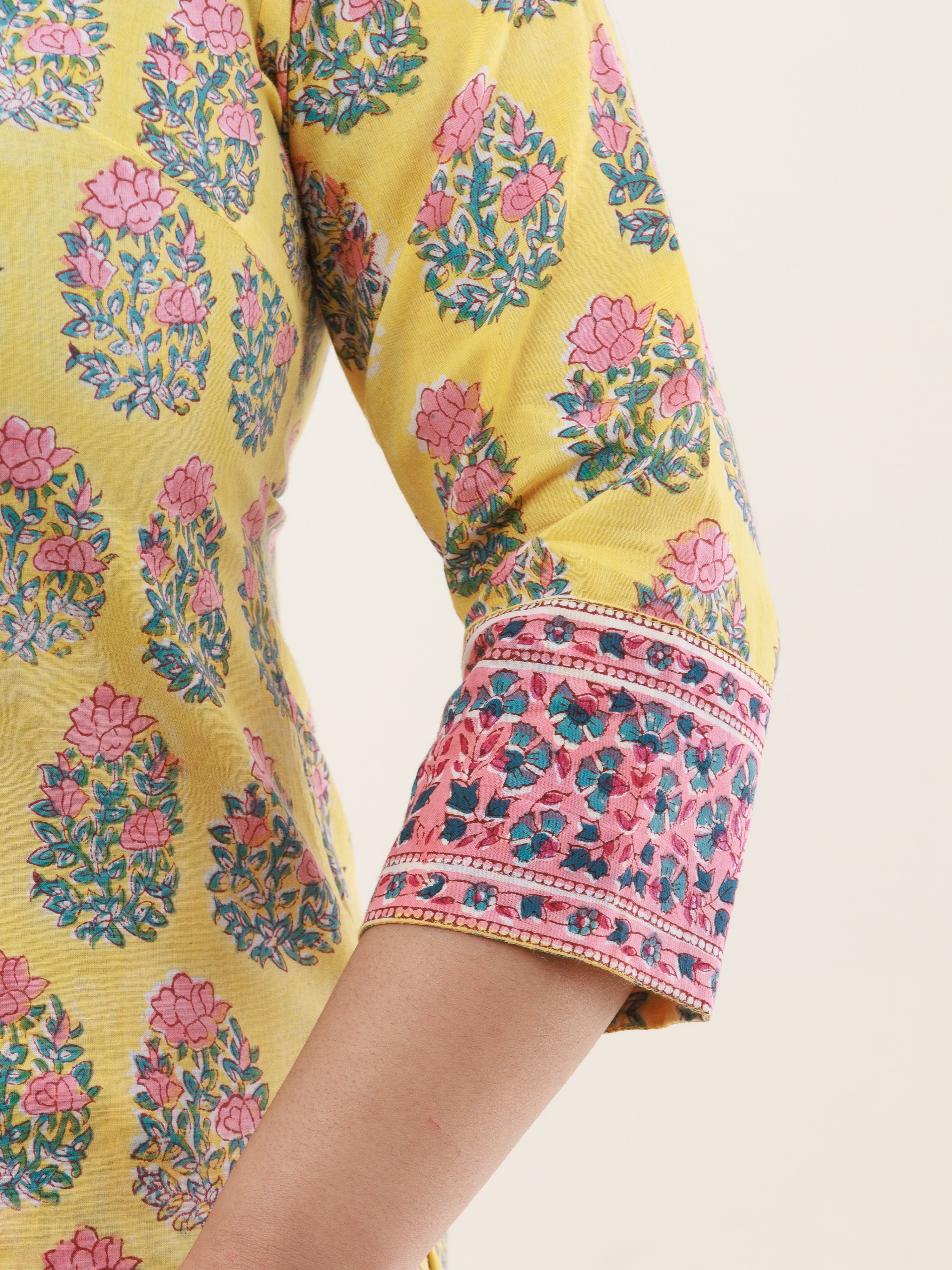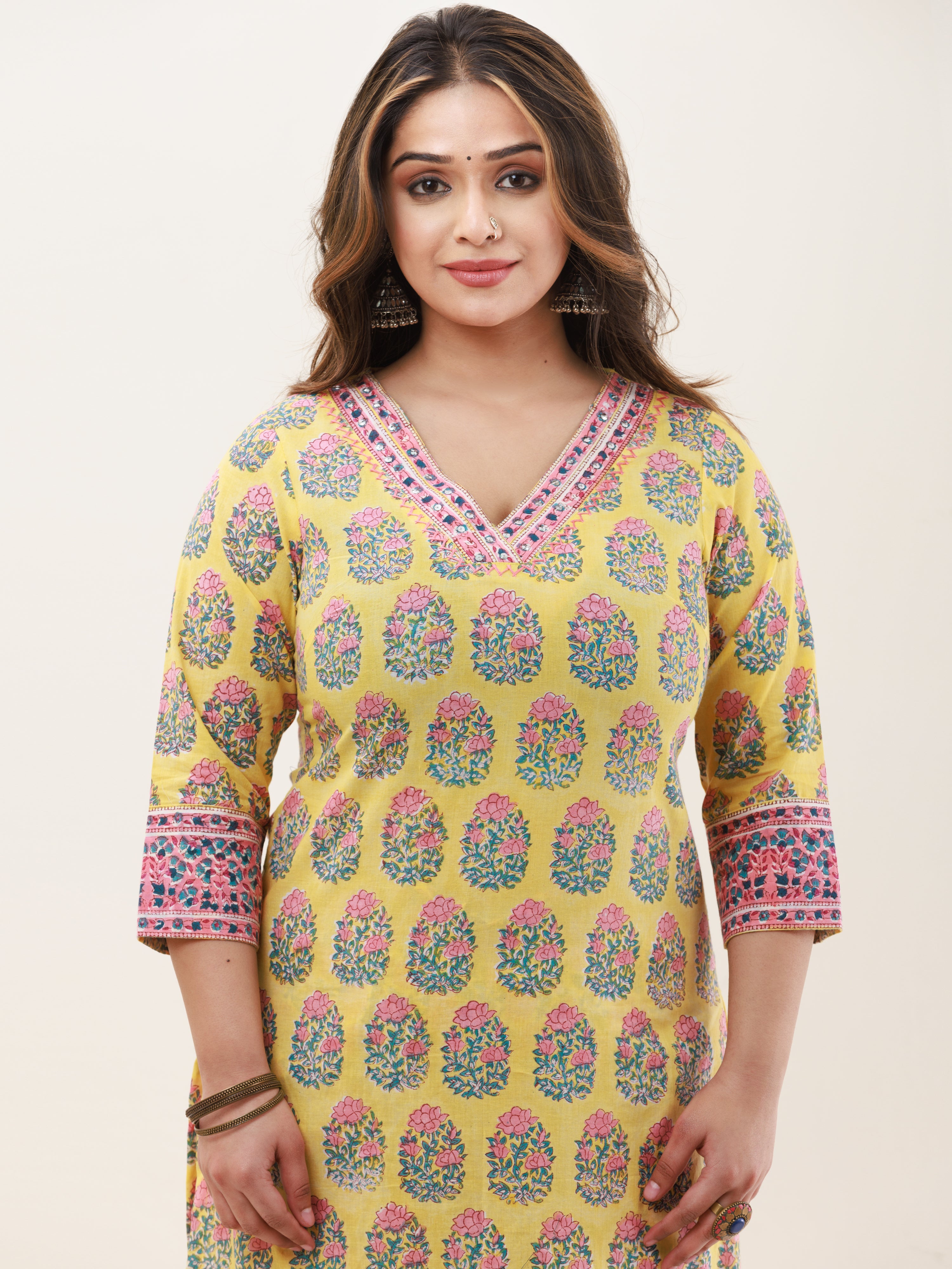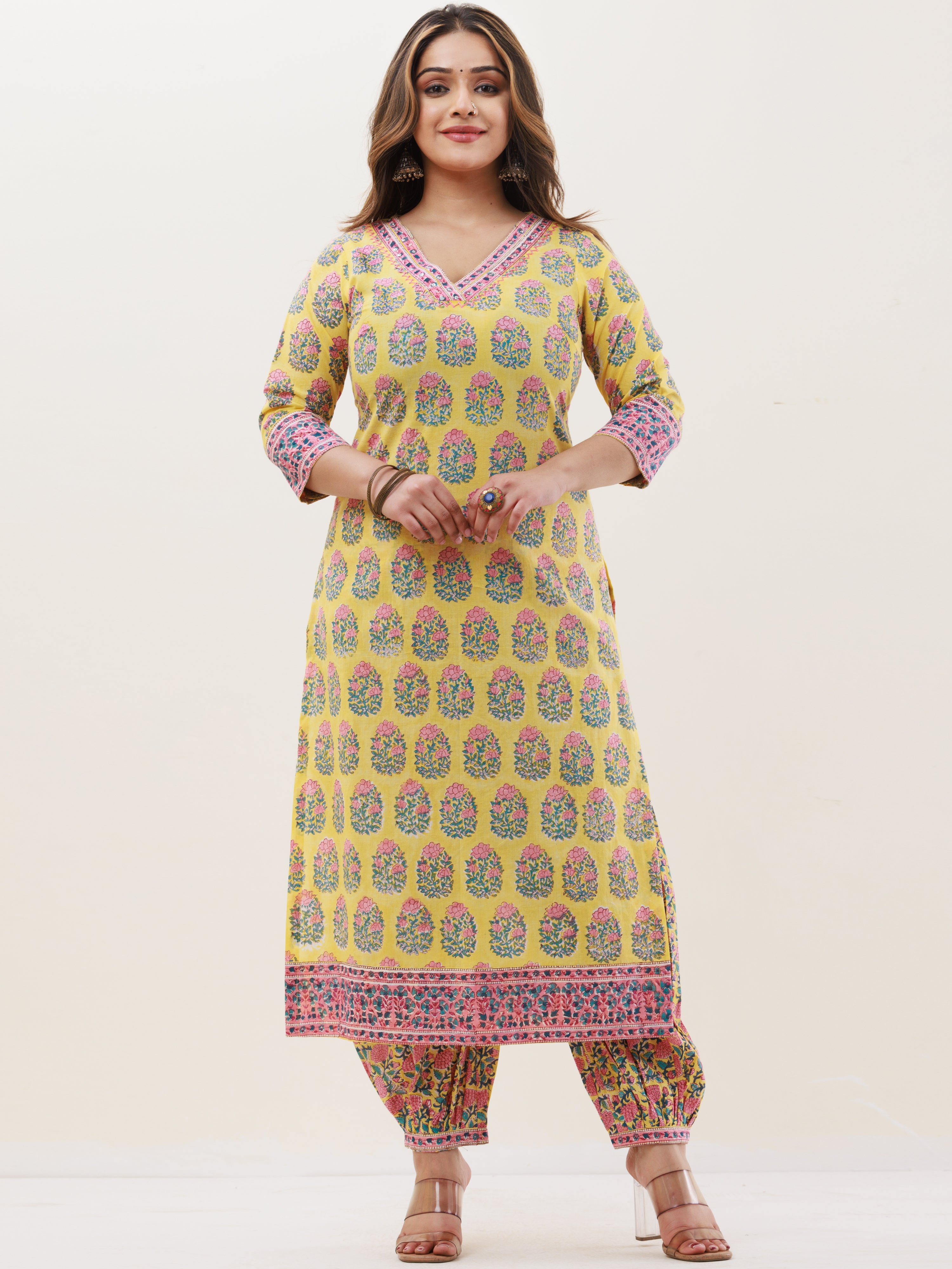 Product: This set contains Handcrafted Sanganeri Premium Cotton Kurta, 100% Cotton Pants and Cotton Mul Mul Dupatta.