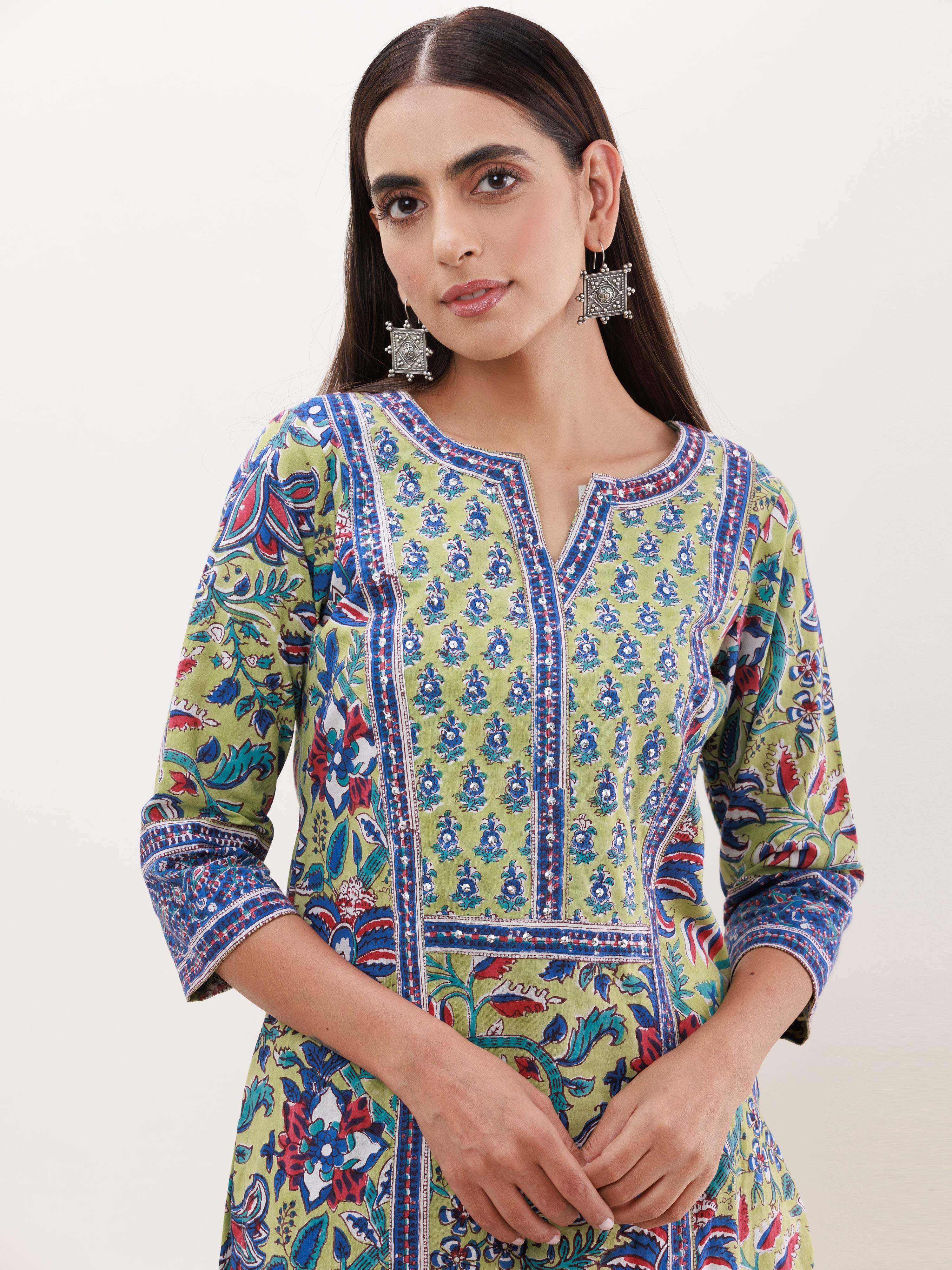 Product: Contains Hand Block Printed Cotton Kurta. Matching Pants/Bottoms and Dupatta are also available separately under BUY THE LOOK section.