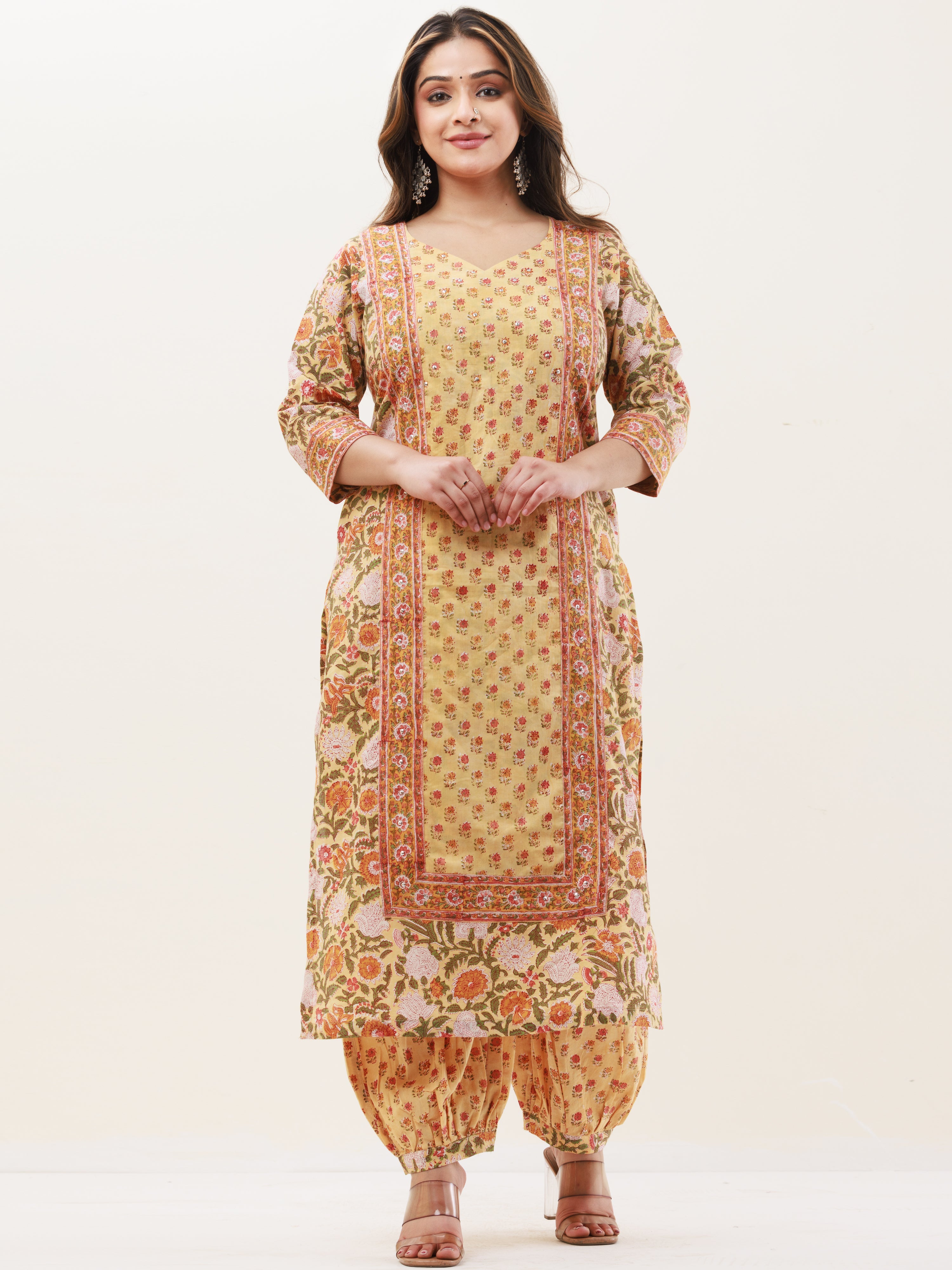 Product: Contains Hand Block Printed Cotton Kurta. Matching Pants/Bottoms and Dupatta are also available separately under BUY THE LOOK section.