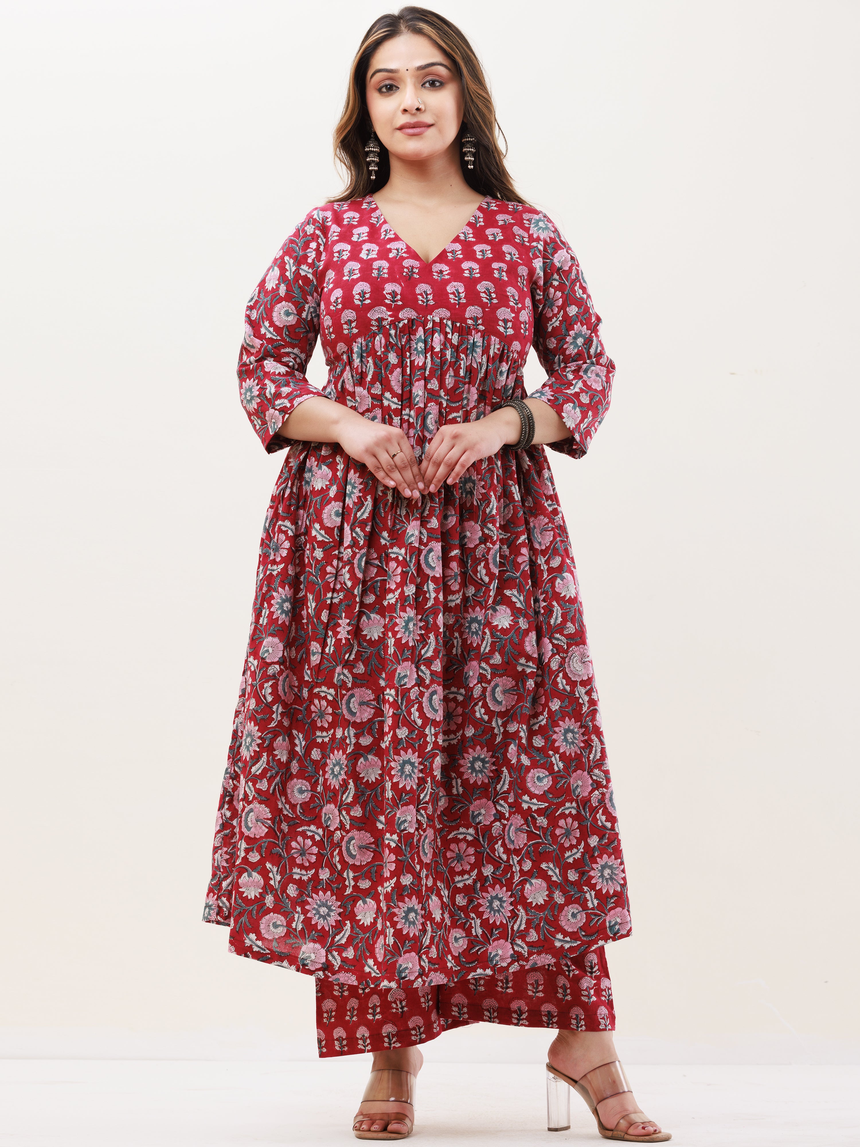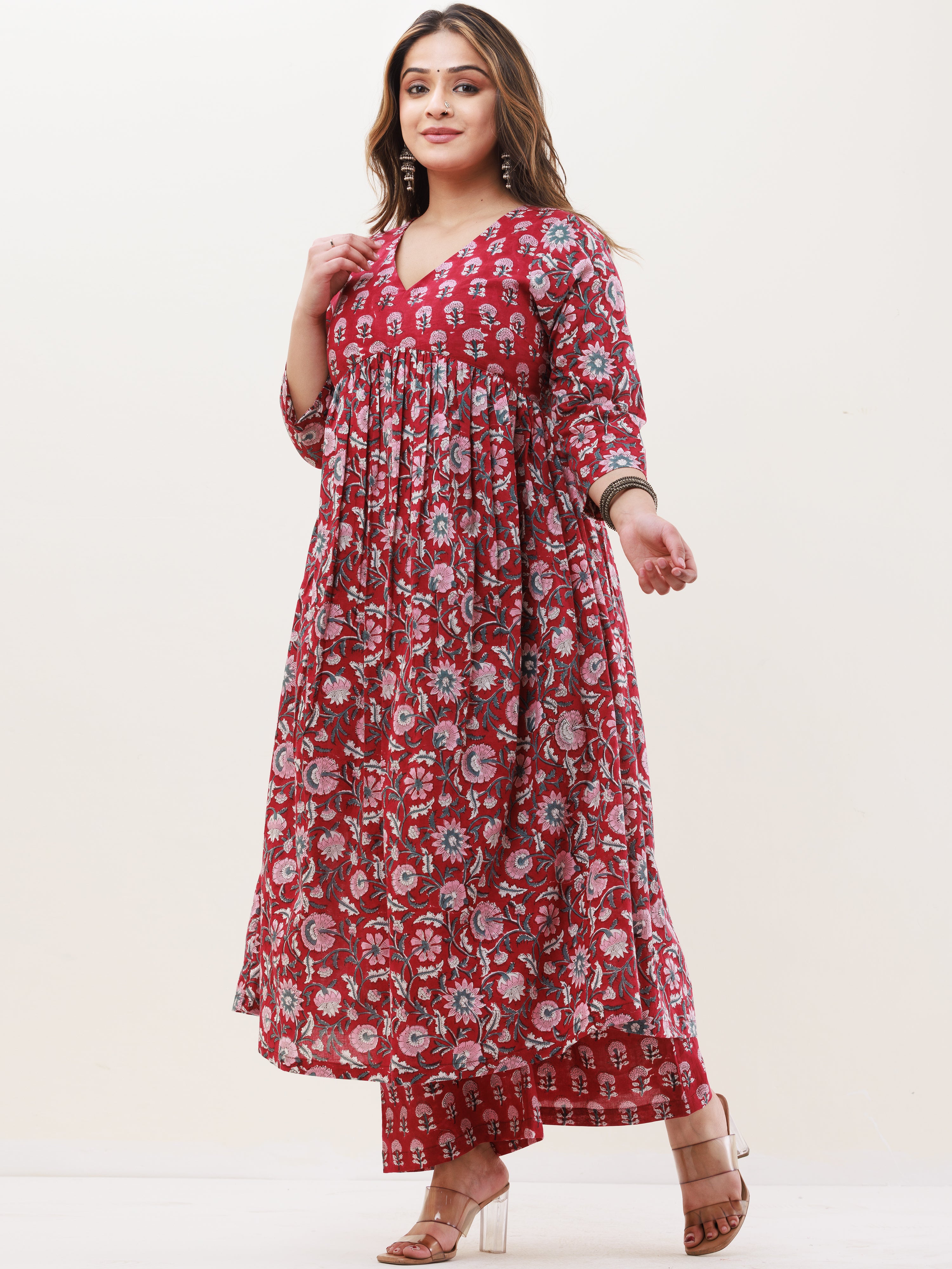 Product: Contains Hand Block Printed Cotton Kurta. Matching Pants/Bottoms and Dupatta are also available separately under BUY THE LOOK section.