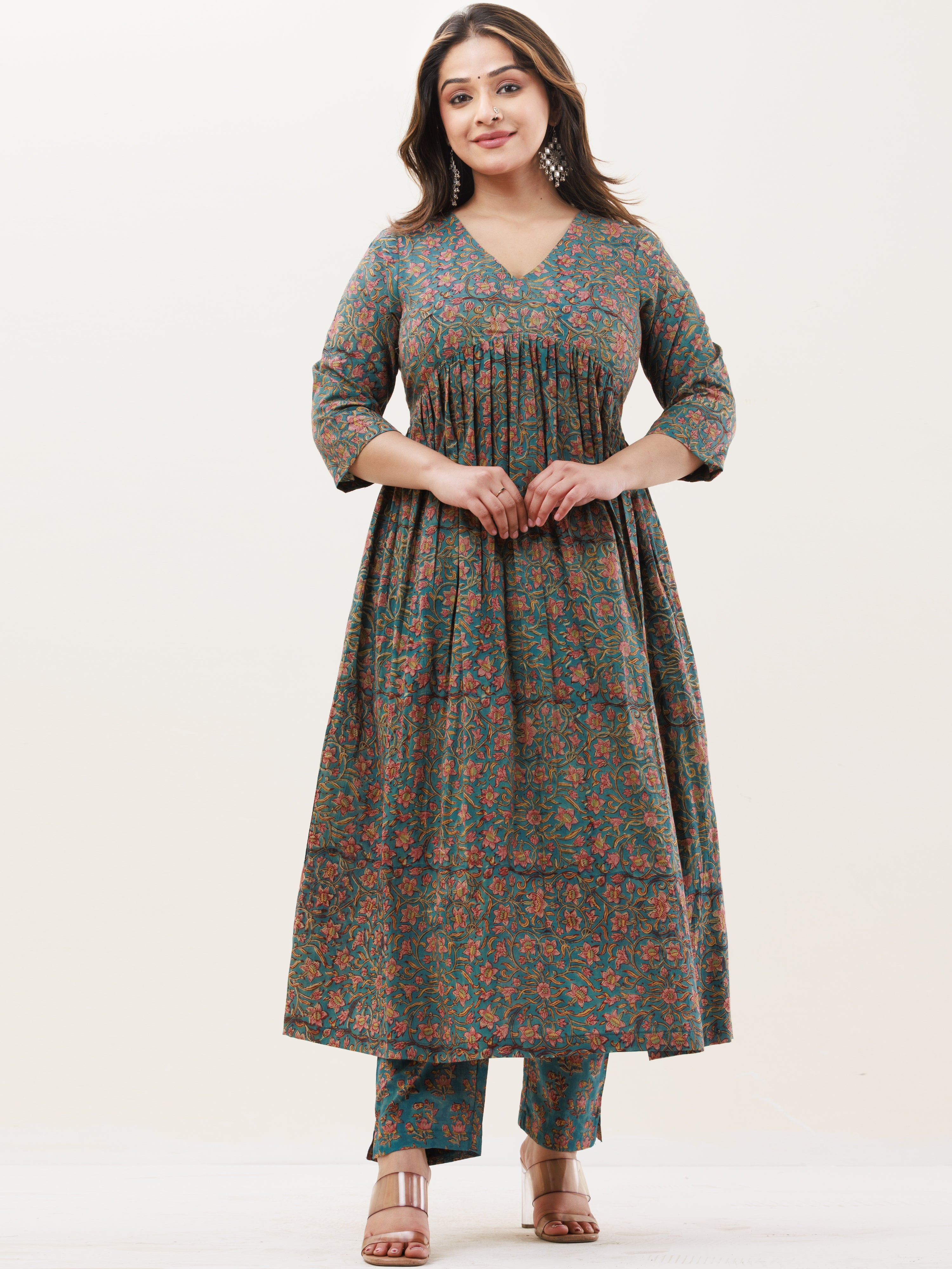 Product: Contains Hand Block Printed Cotton Kurta. Matching Pants/Bottoms and Dupatta are also available separately under BUY THE LOOK section.