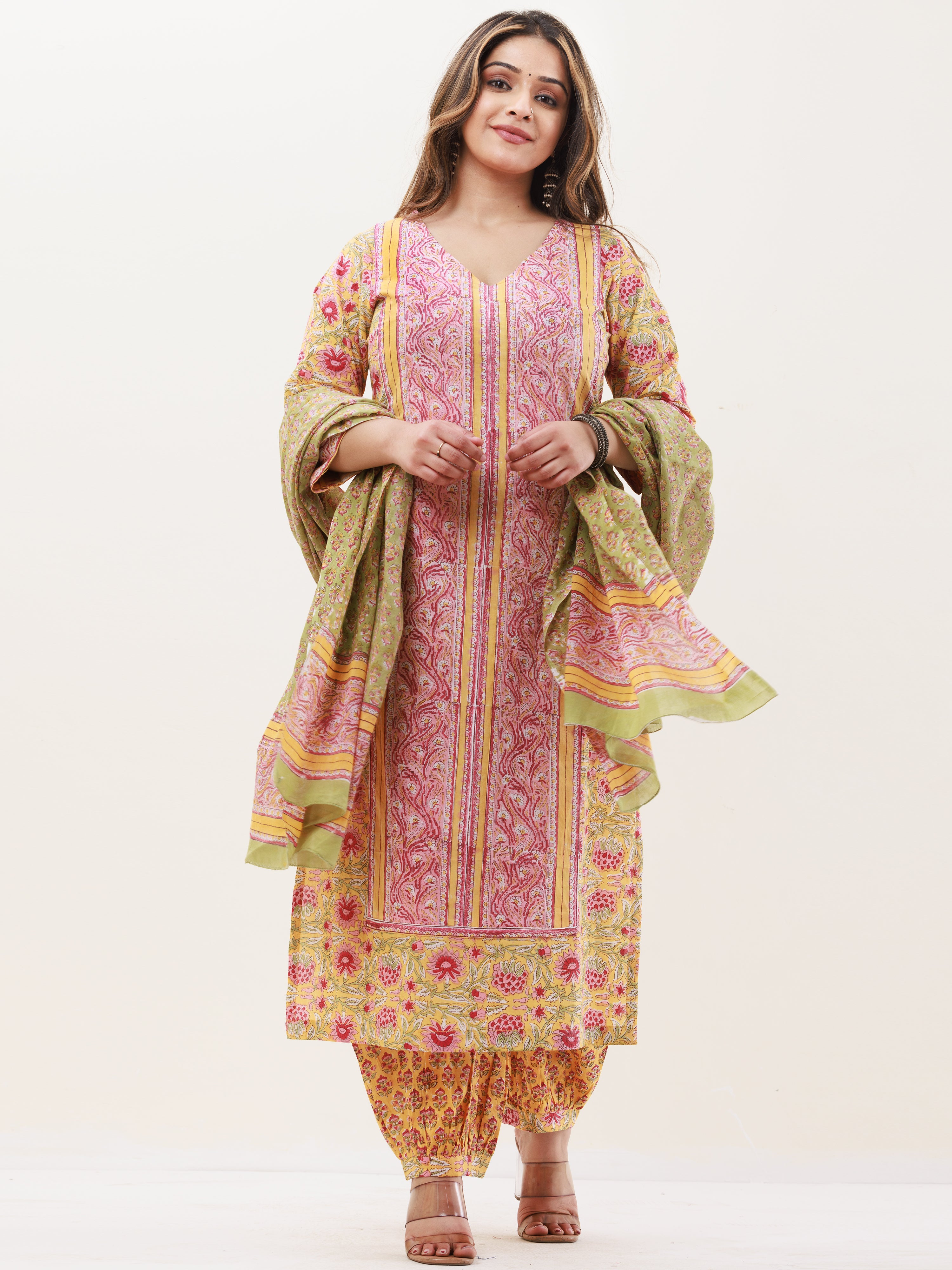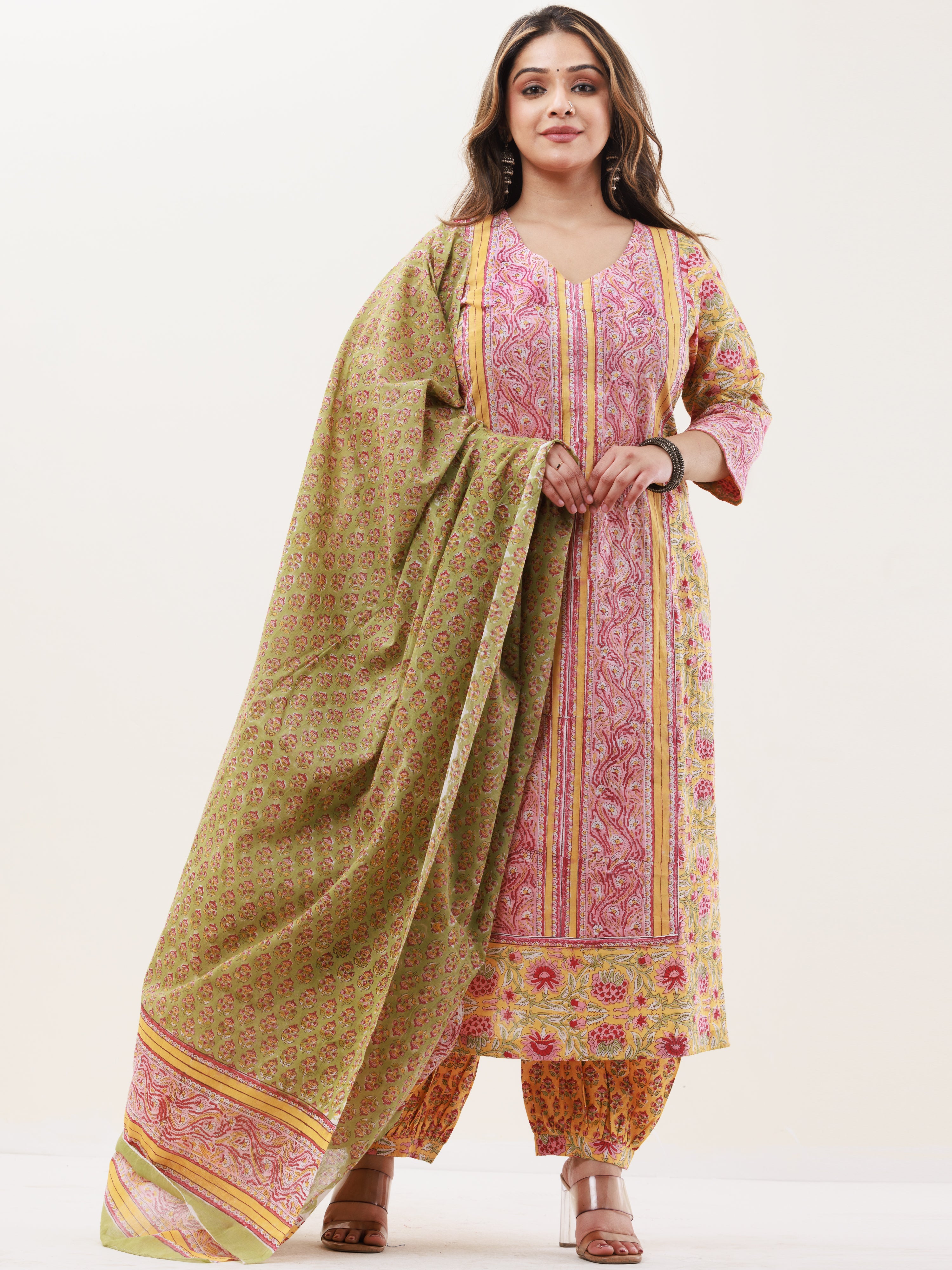 Fabric : Hand Block Printed. Kurta - Cotton . Pants - Cotton, Dupatta - Cotton Mul Mul