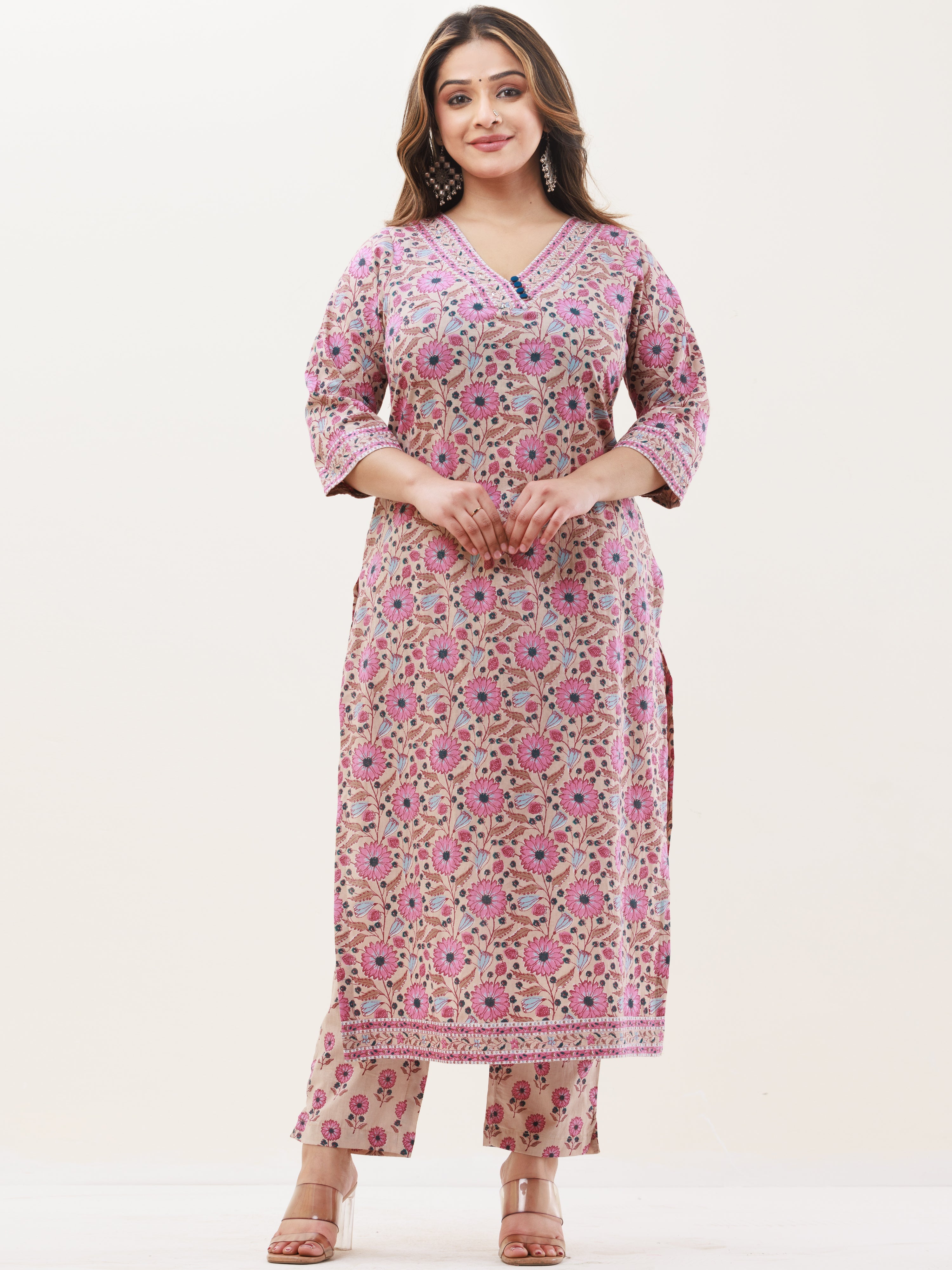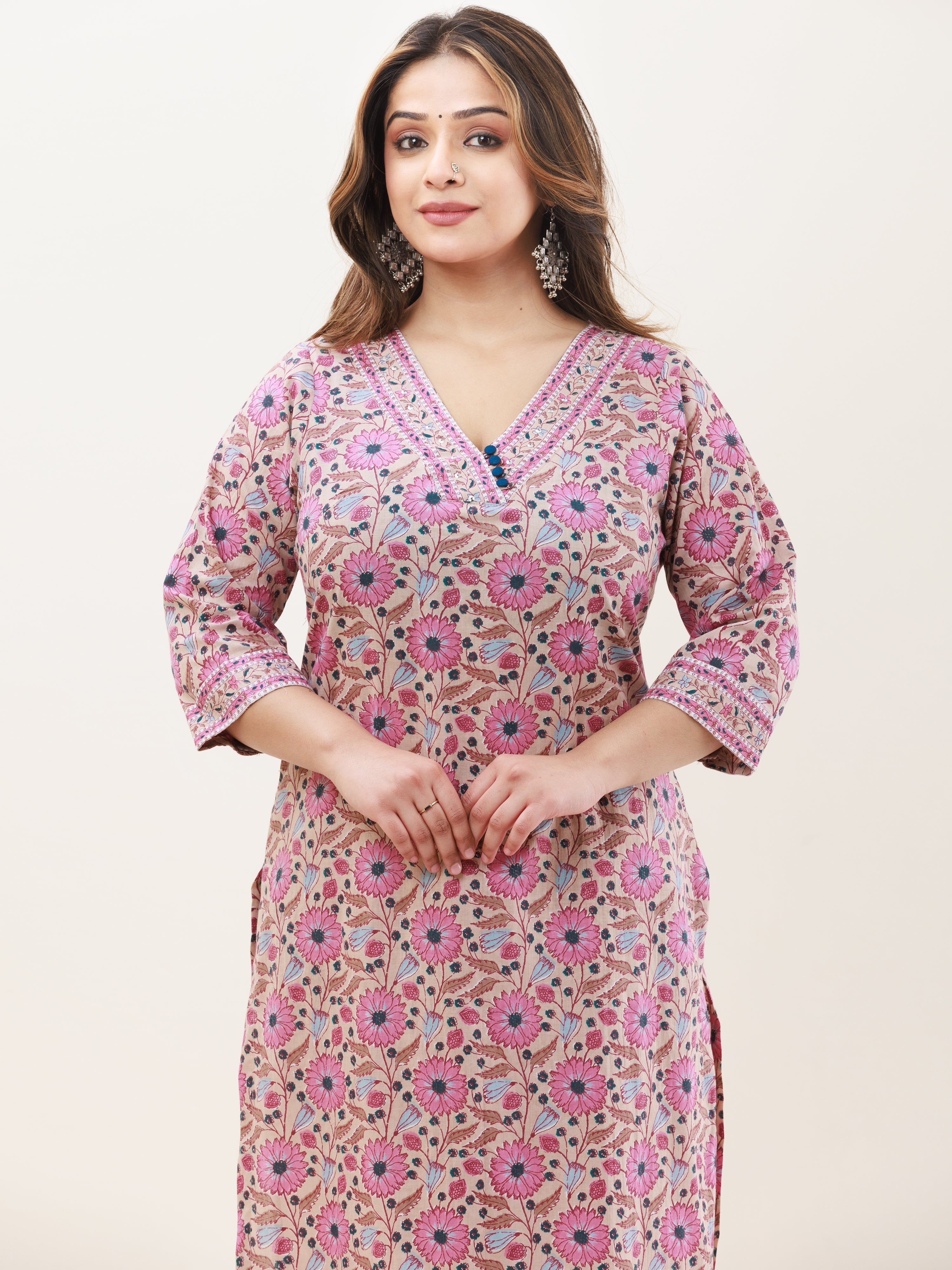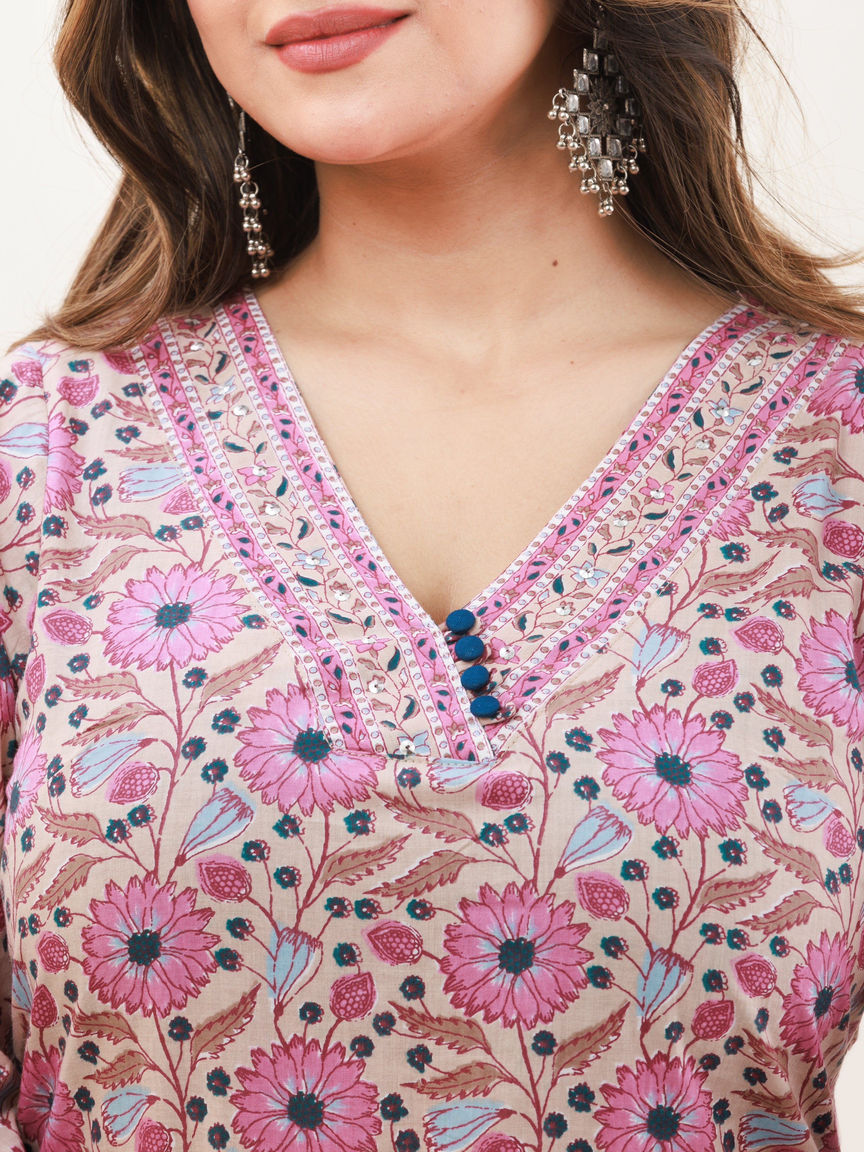 Product: Contains Hand Block Printed Cotton Kurta. Matching Pants/Bottoms and Dupatta are also available separately under BUY THE LOOK section.