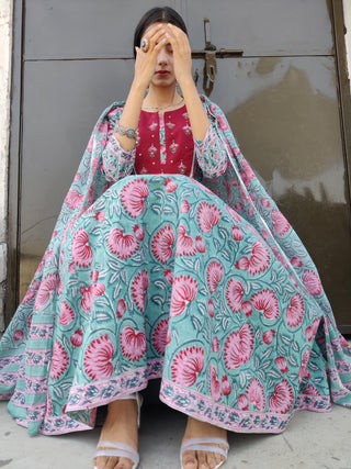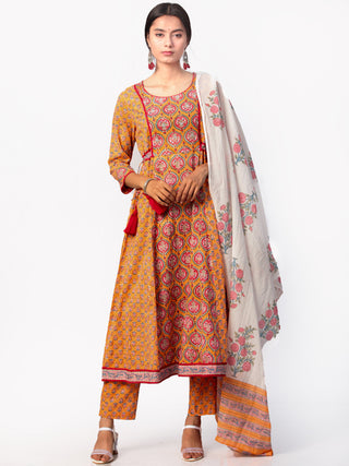 Gulal Mehreen Set Of Flared Kurta Salwar Pants Dupatta