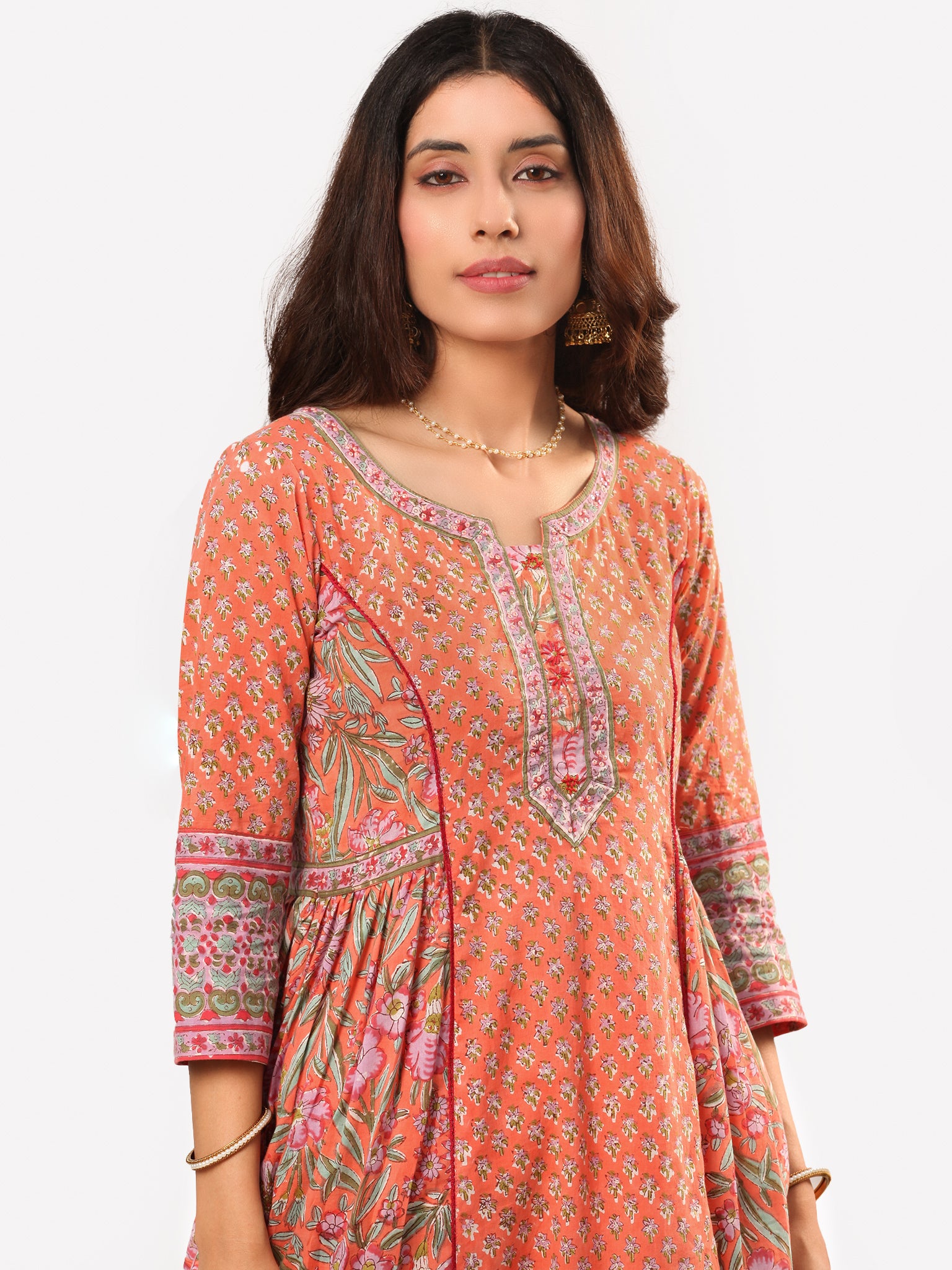 Product: This set contains Handcrafted Sanganeri Premium Cotton Kurta, 100% Cotton Pants and Cotton Dupatta.