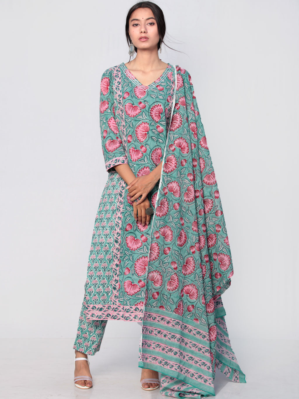 Product : Contains Sanganeri Hand Block Printed Cotton mul Dupatta. Matching Kurta and Pants are also available separately under BUY THE LOOK section.