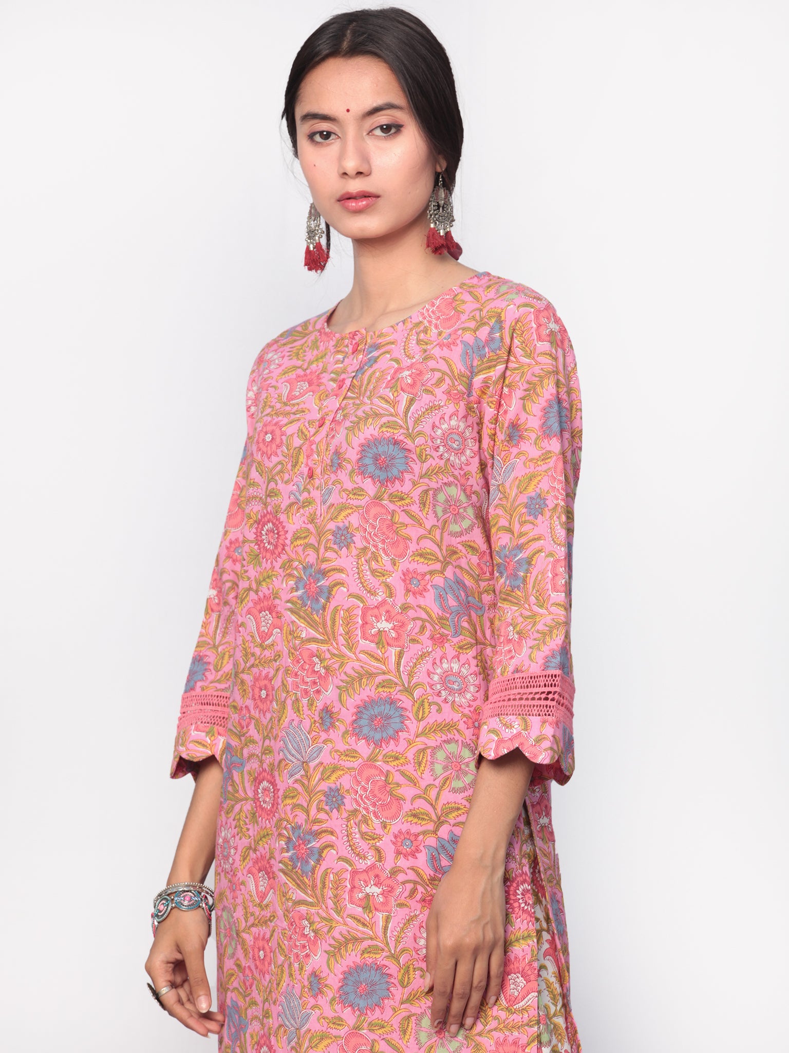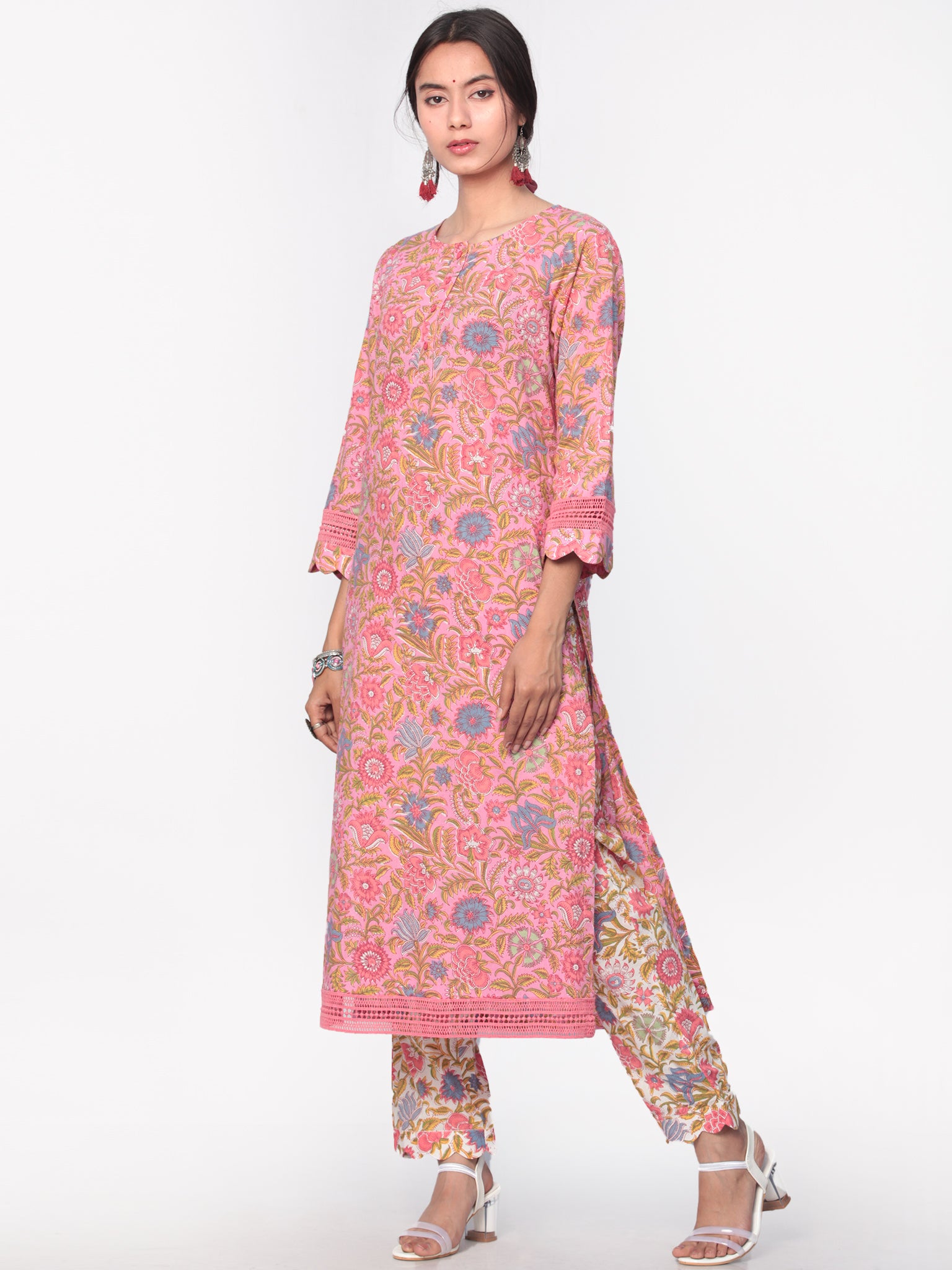 Product: Contains Hand Block Printed Cotton Kurta. Matching Pants/Bottoms and Dupatta are also available separately under BUY THE LOOK section.
