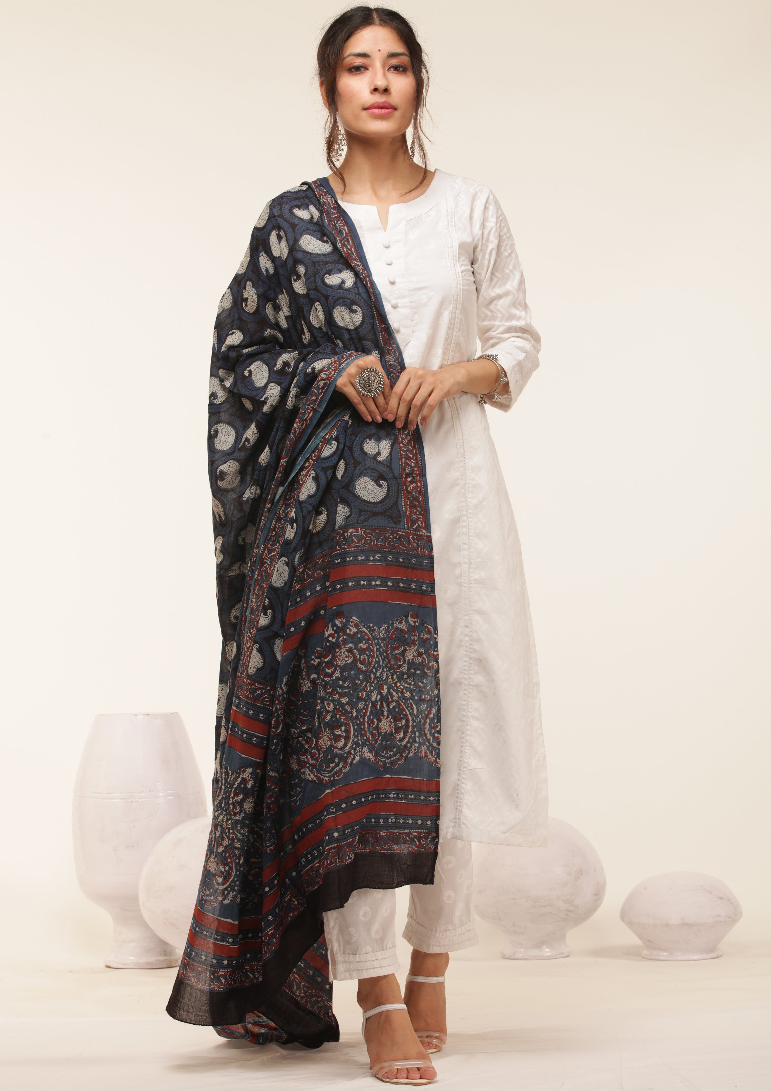 Product : Contains Sanganeri Hand Block Printed Cotton mul Dupatta. Matching Kurta and Pants are also available separately under BUY THE LOOK section.