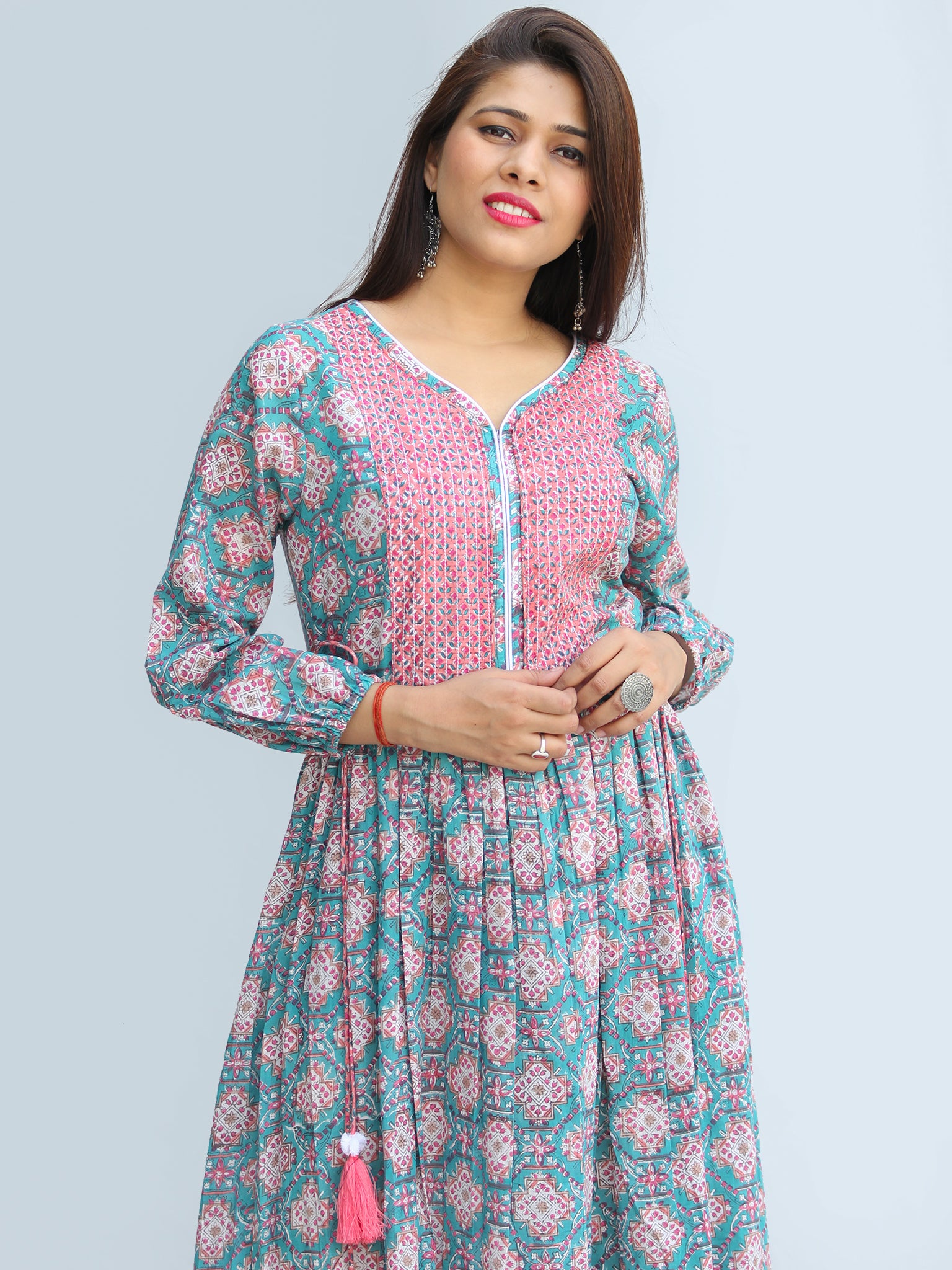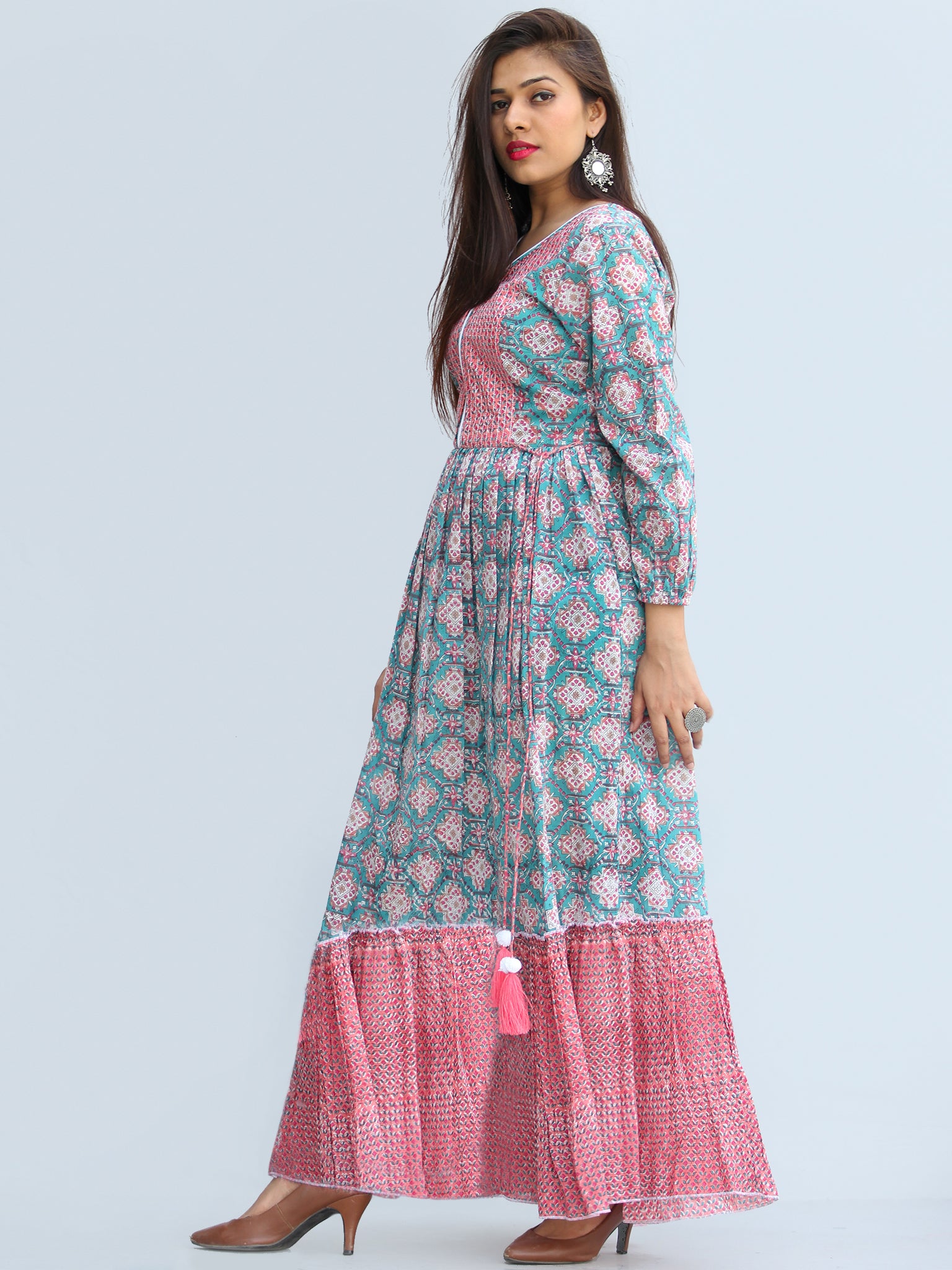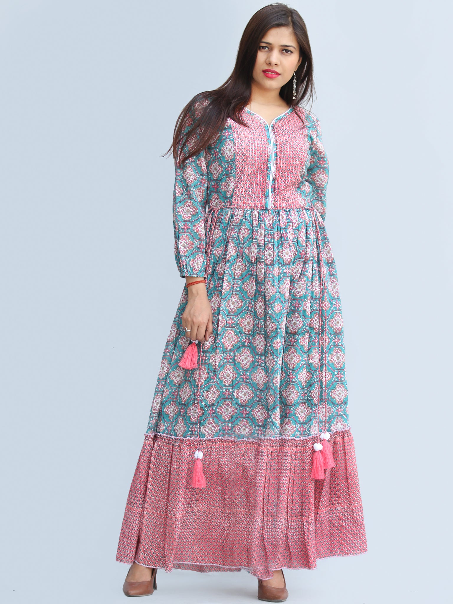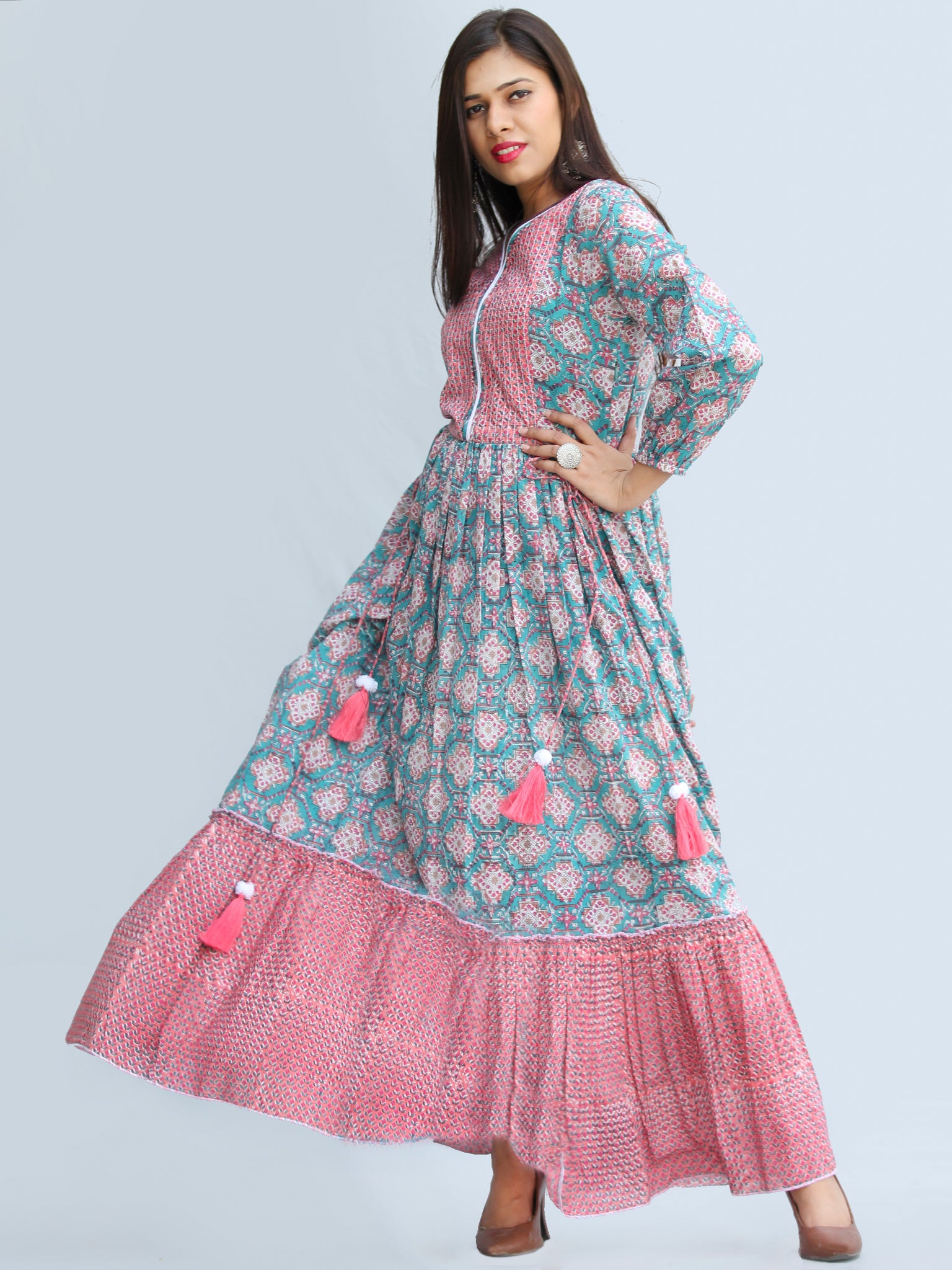 Gulzar Ibadat - Hand Block Printed Tiered Long Dress With Tassels - D430F2267