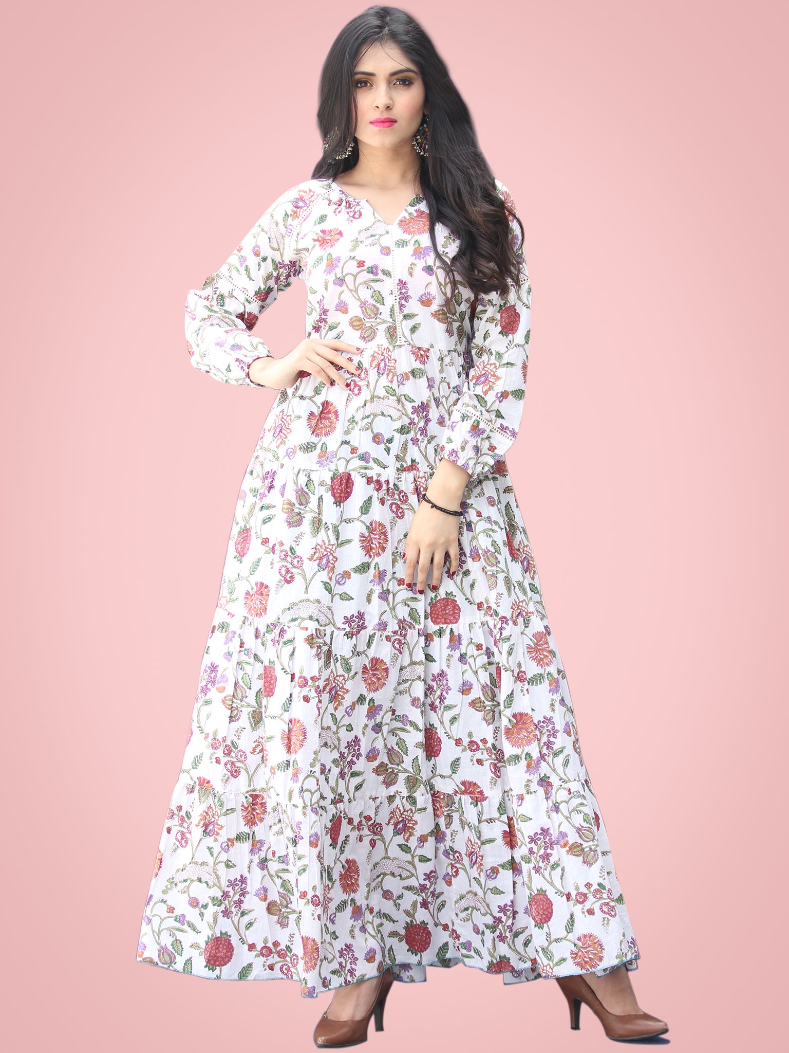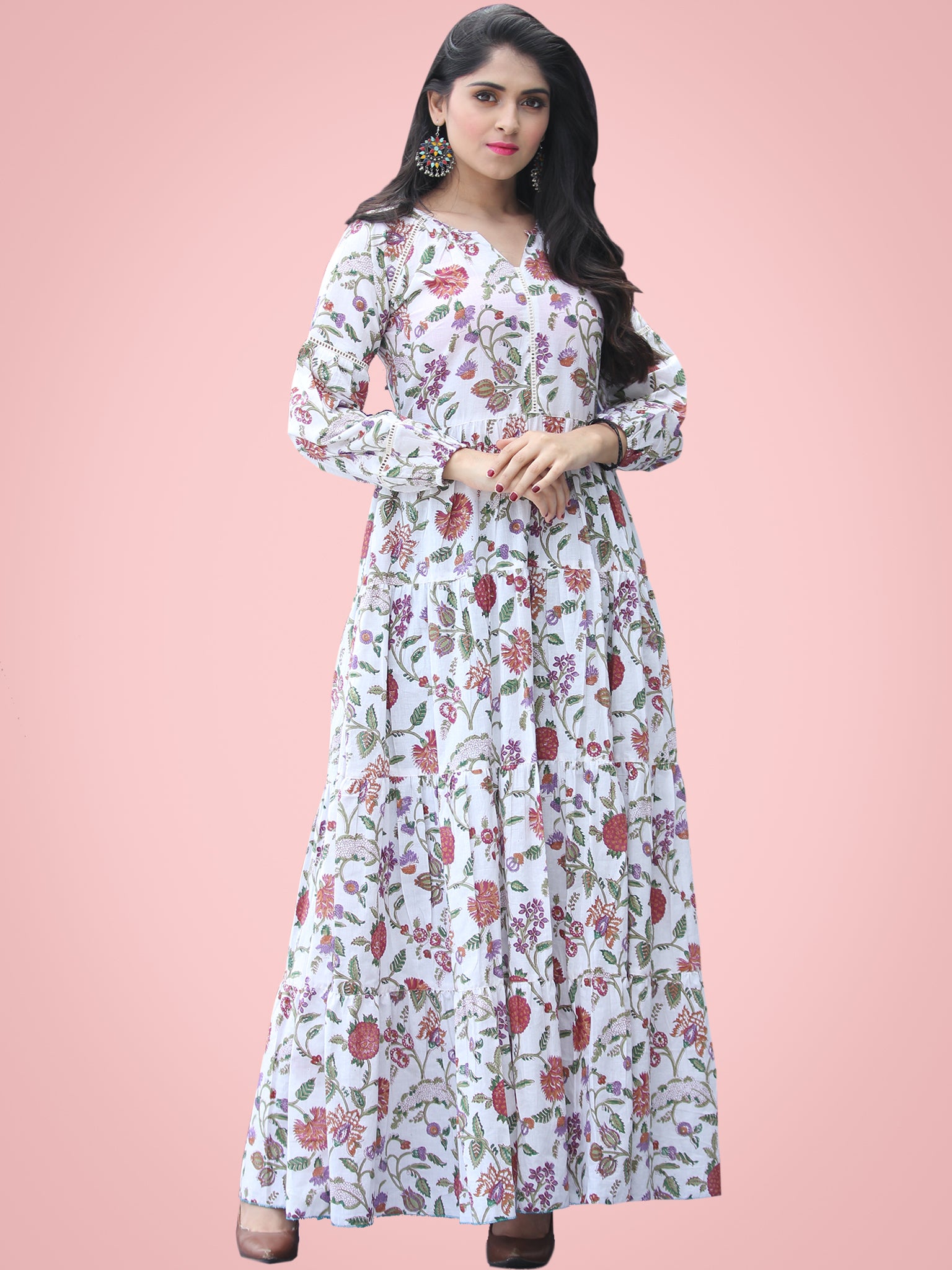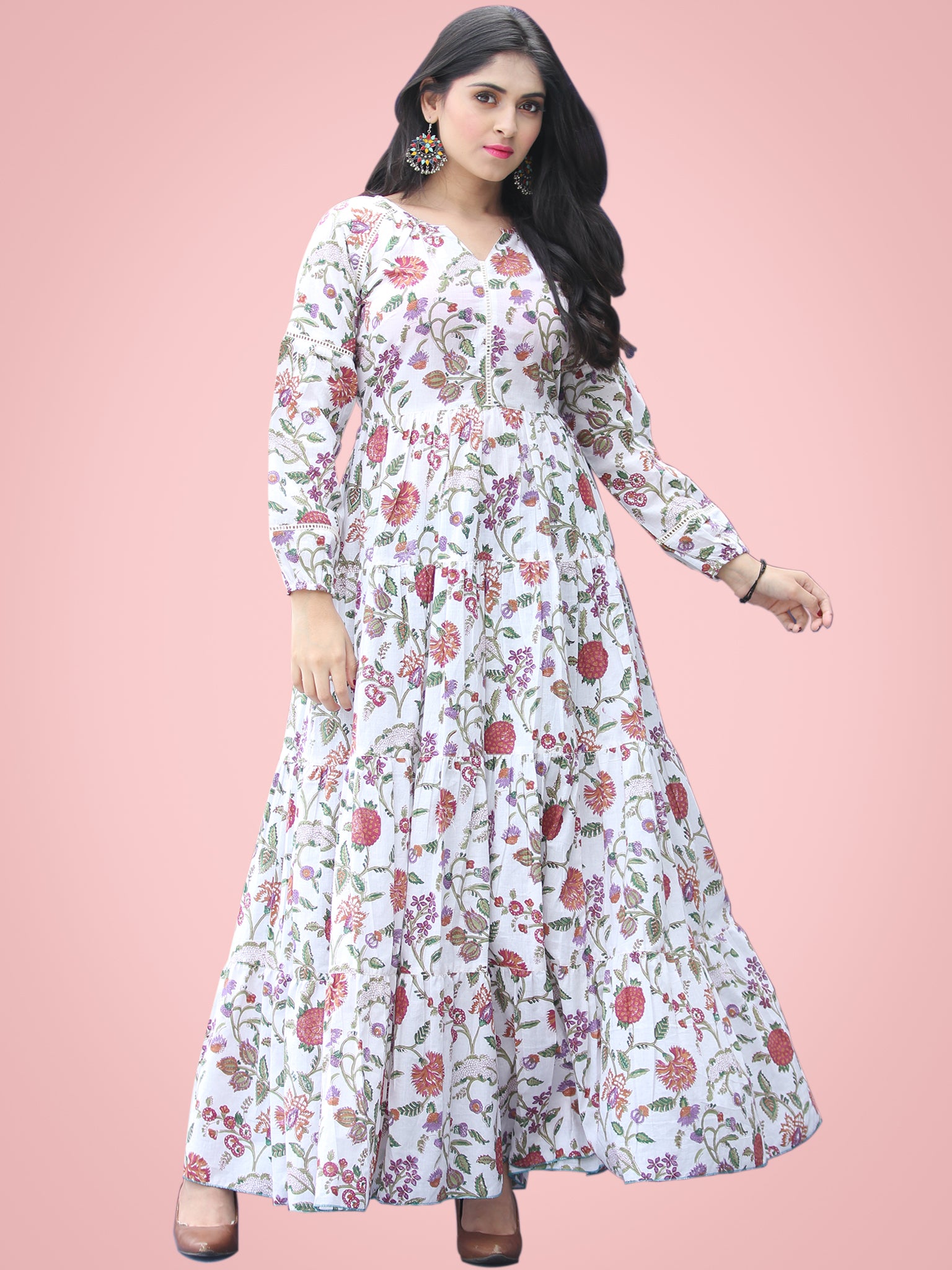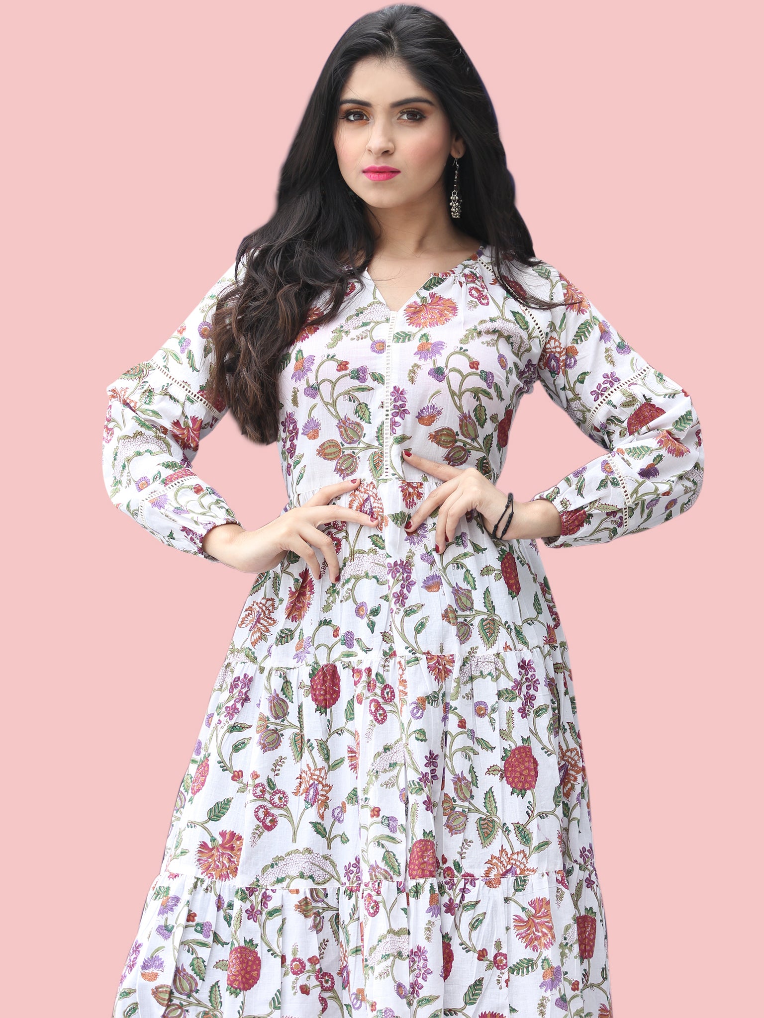 Gulzar Tabassum - Hand Block Printed Long Cotton Tier Dress - D405F2180