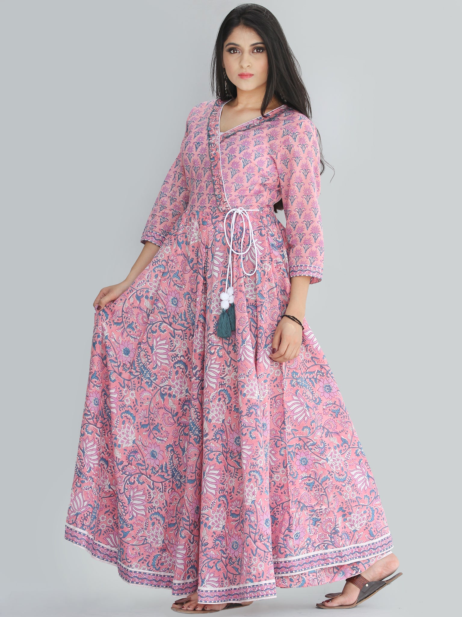 Gulzar Turfa - Hand Block Printed Angrakha Long Dress - D411F2232