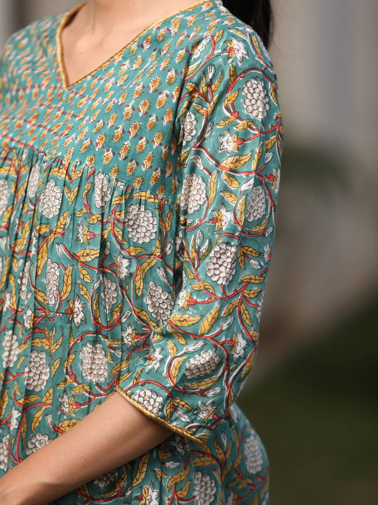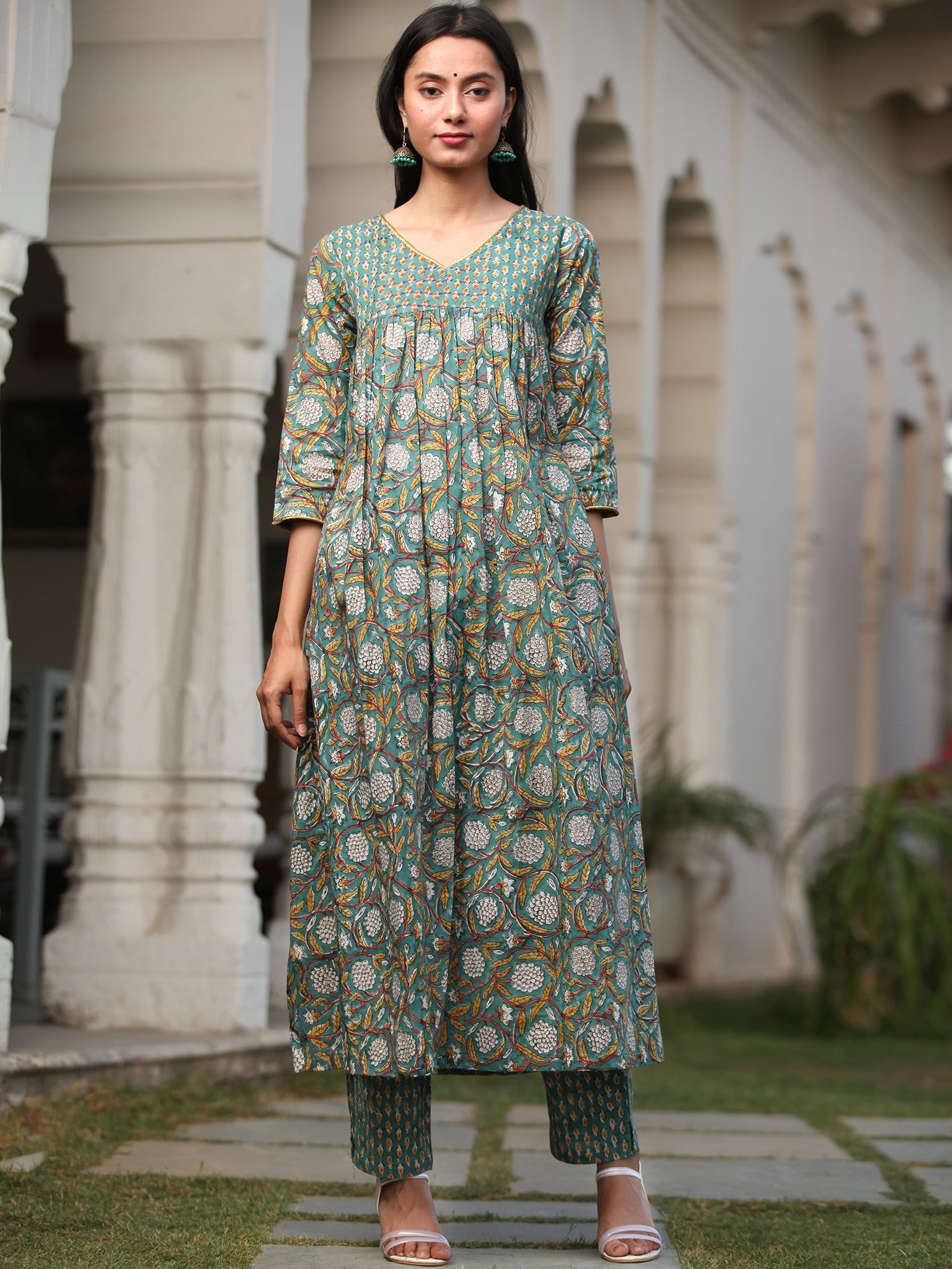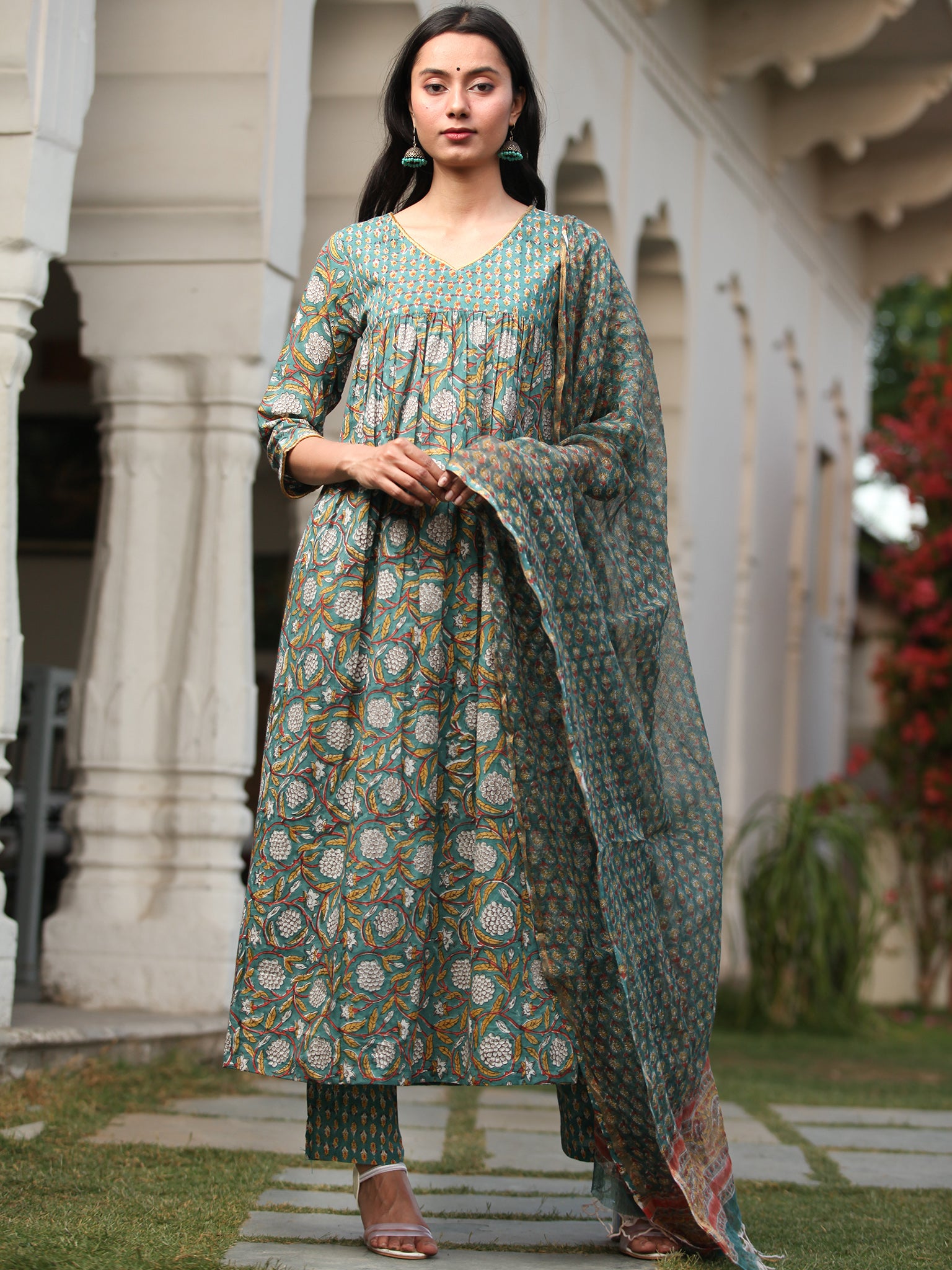 Product: This set contains Handcrafted Sanganeri Premium Cotton Kurta, 100% Cotton Pants and Kota Doria Dupatta.