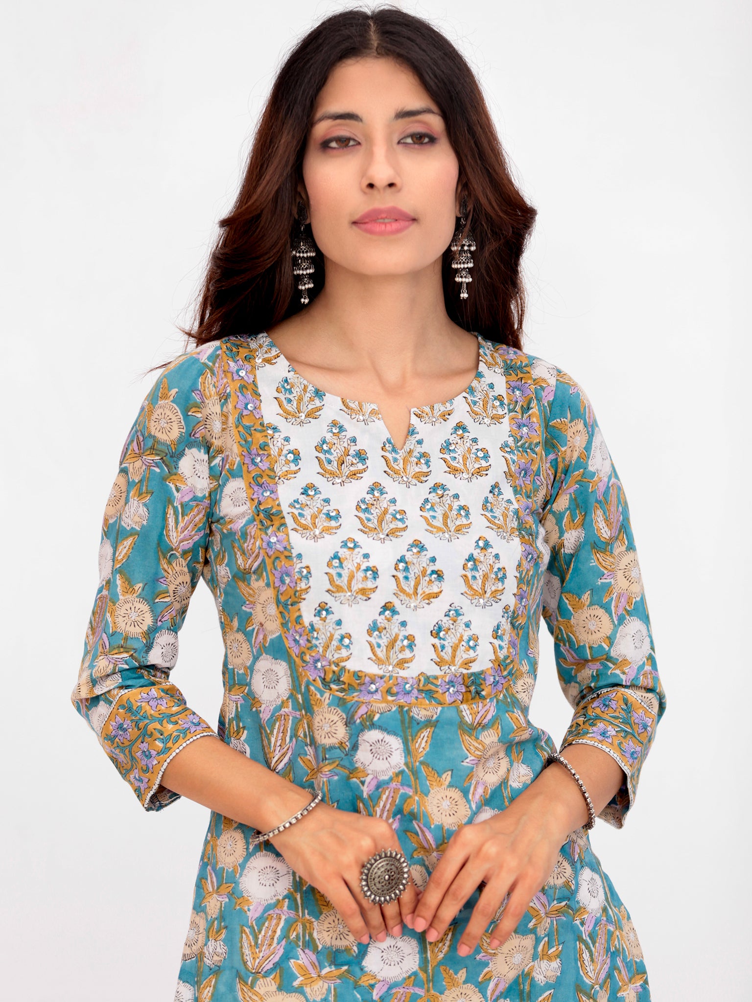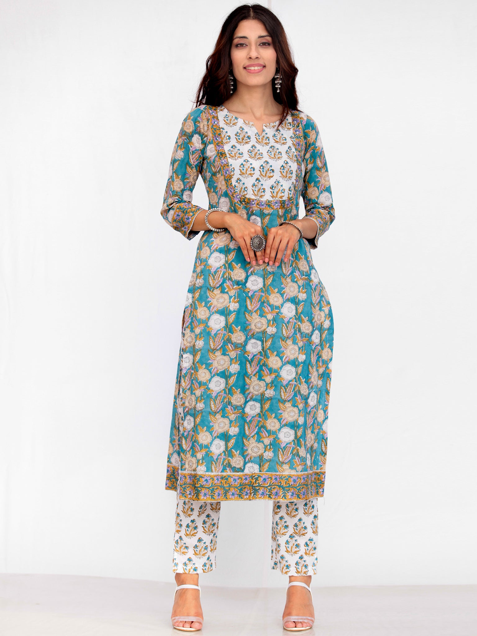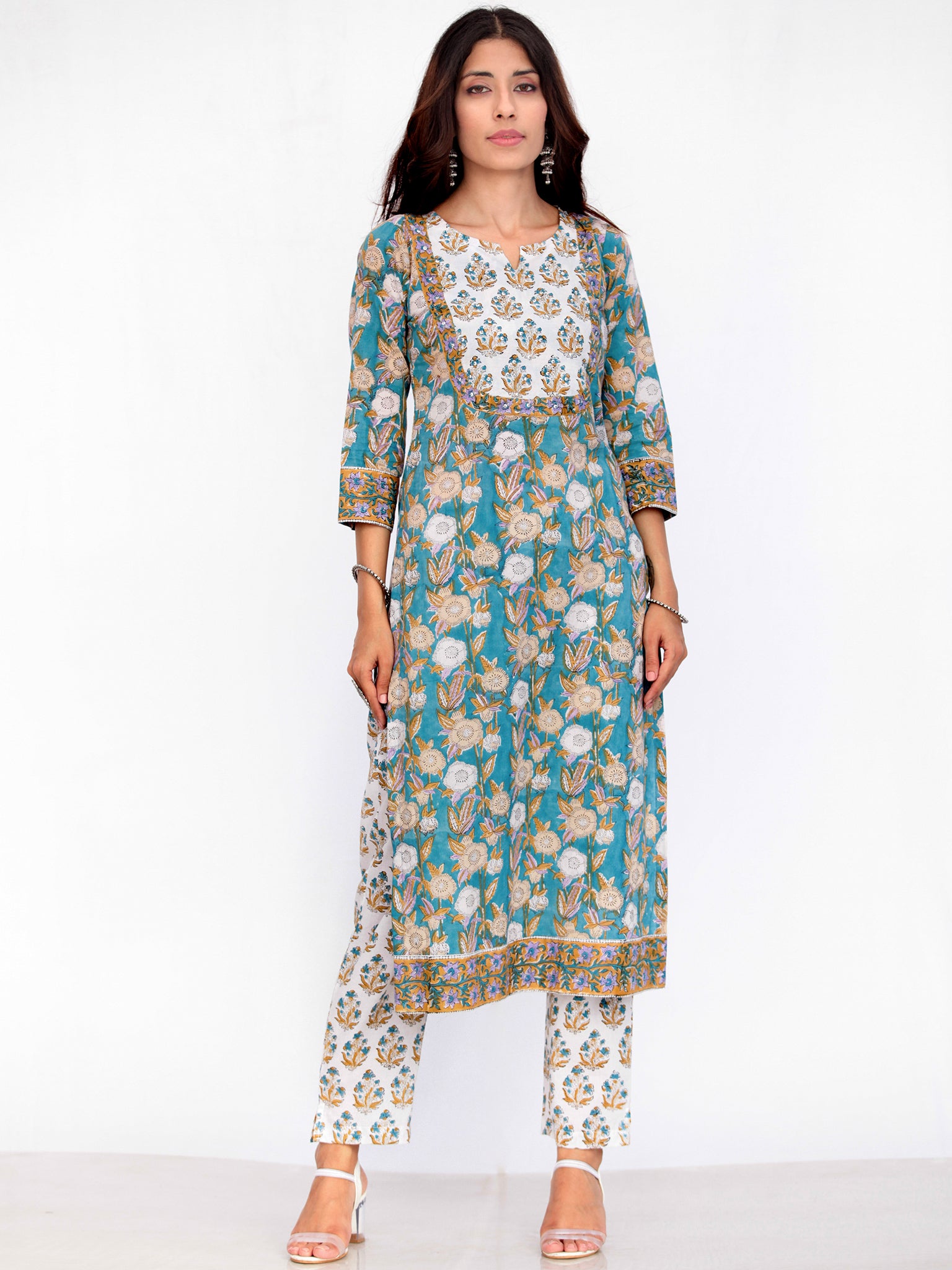 Product: Contains Hand Block Printed Cotton Kurta. Matching Pants/Bottoms and Dupatta are also available separately under BUY THE LOOK section.