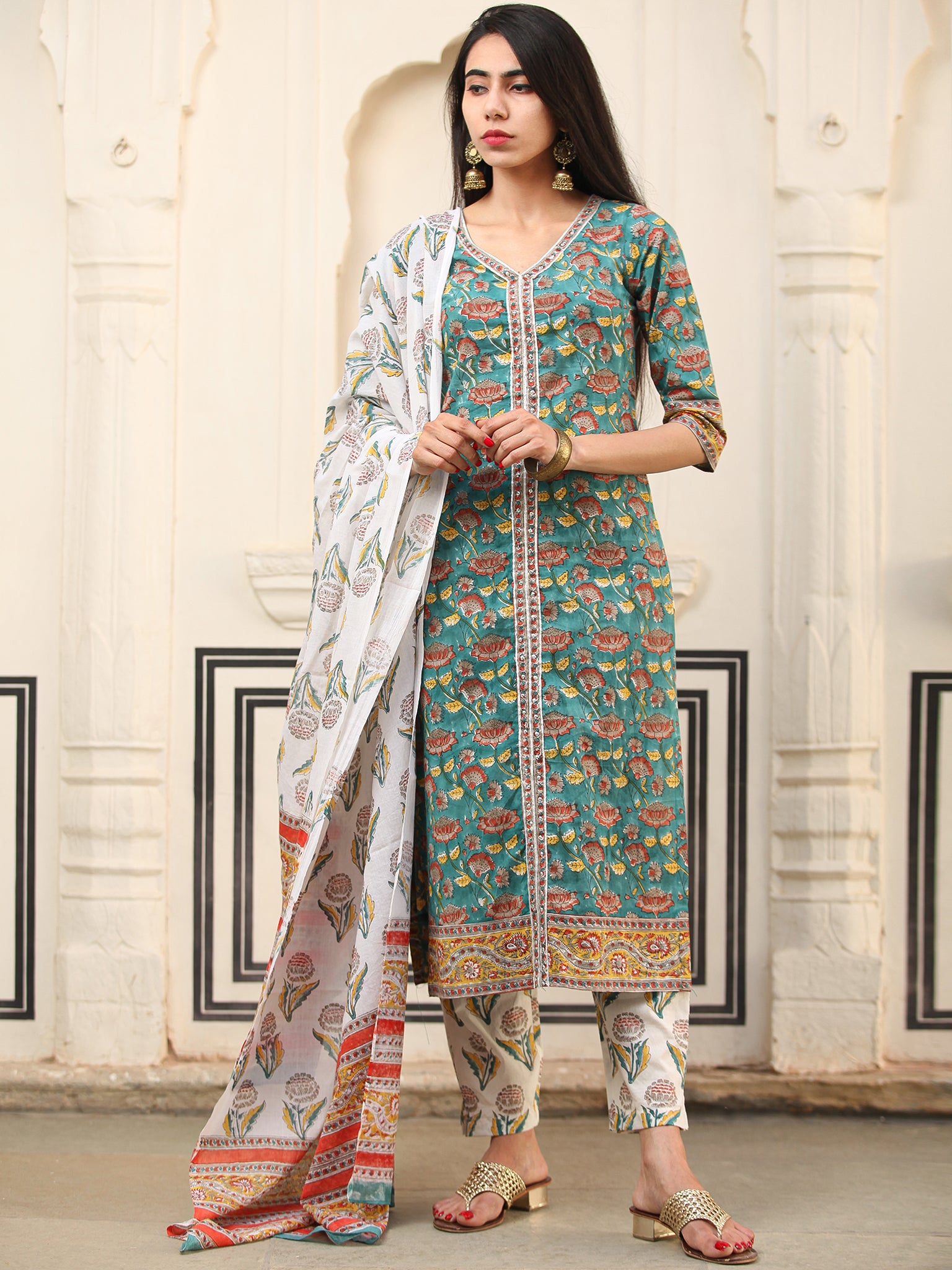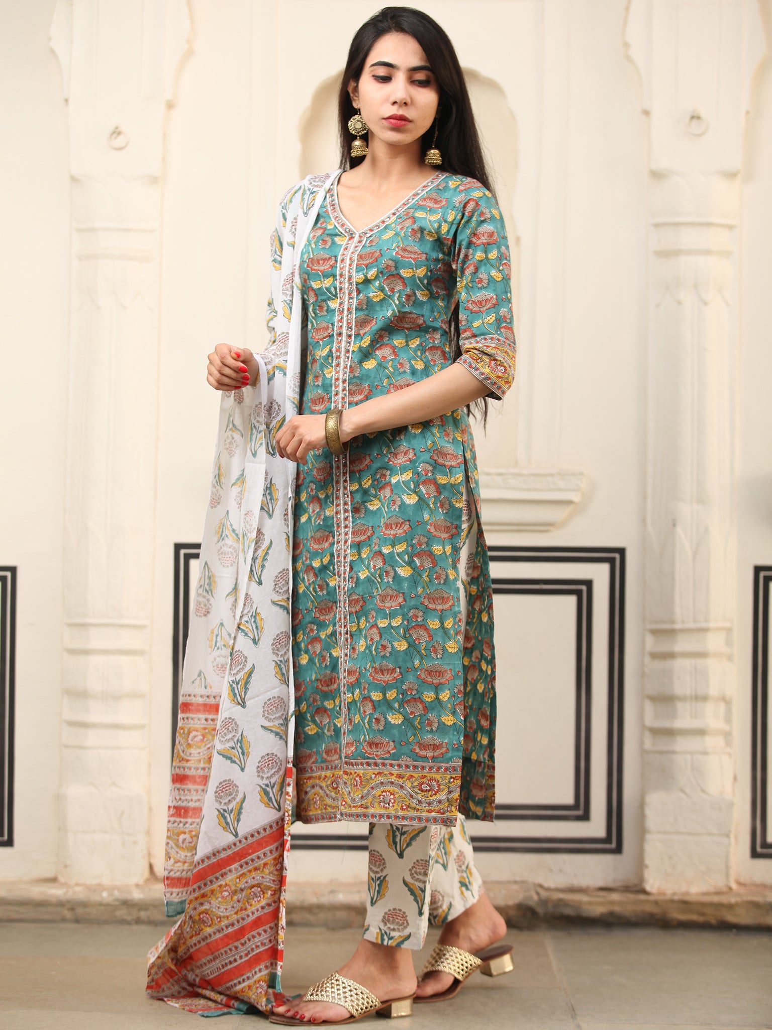 Fabric : Hand Block Printed. Kurta - Cotton. Pants - Cotton, Dupatta - Cotton