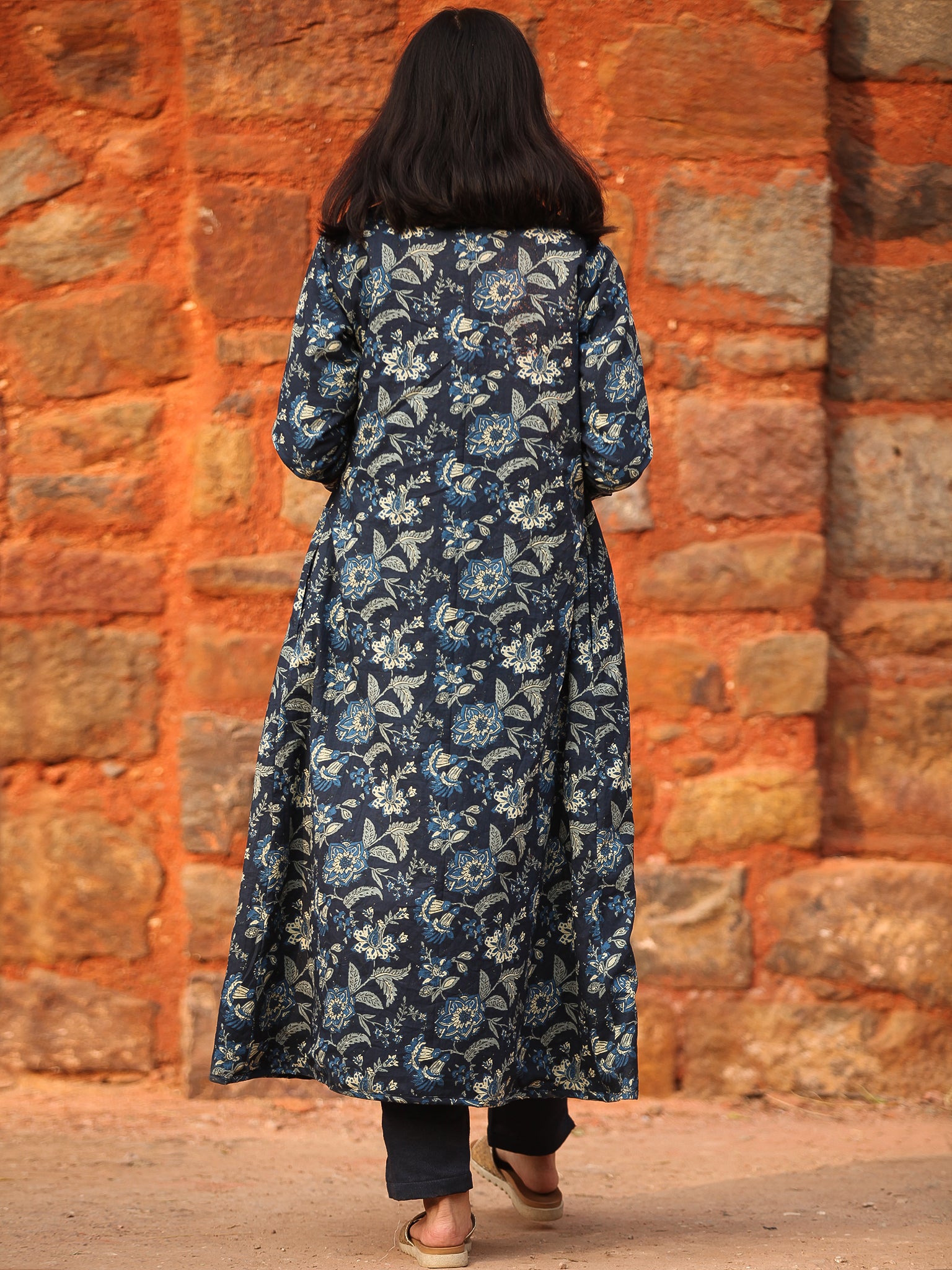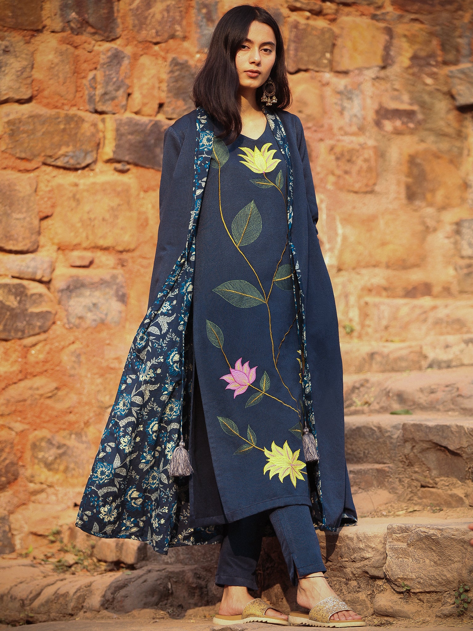 PRODUCT: Handcrafted Reversible Woolen Jacket with intrinsic and alluring work of block print on one side and plain woolen handloom fabric on other side.