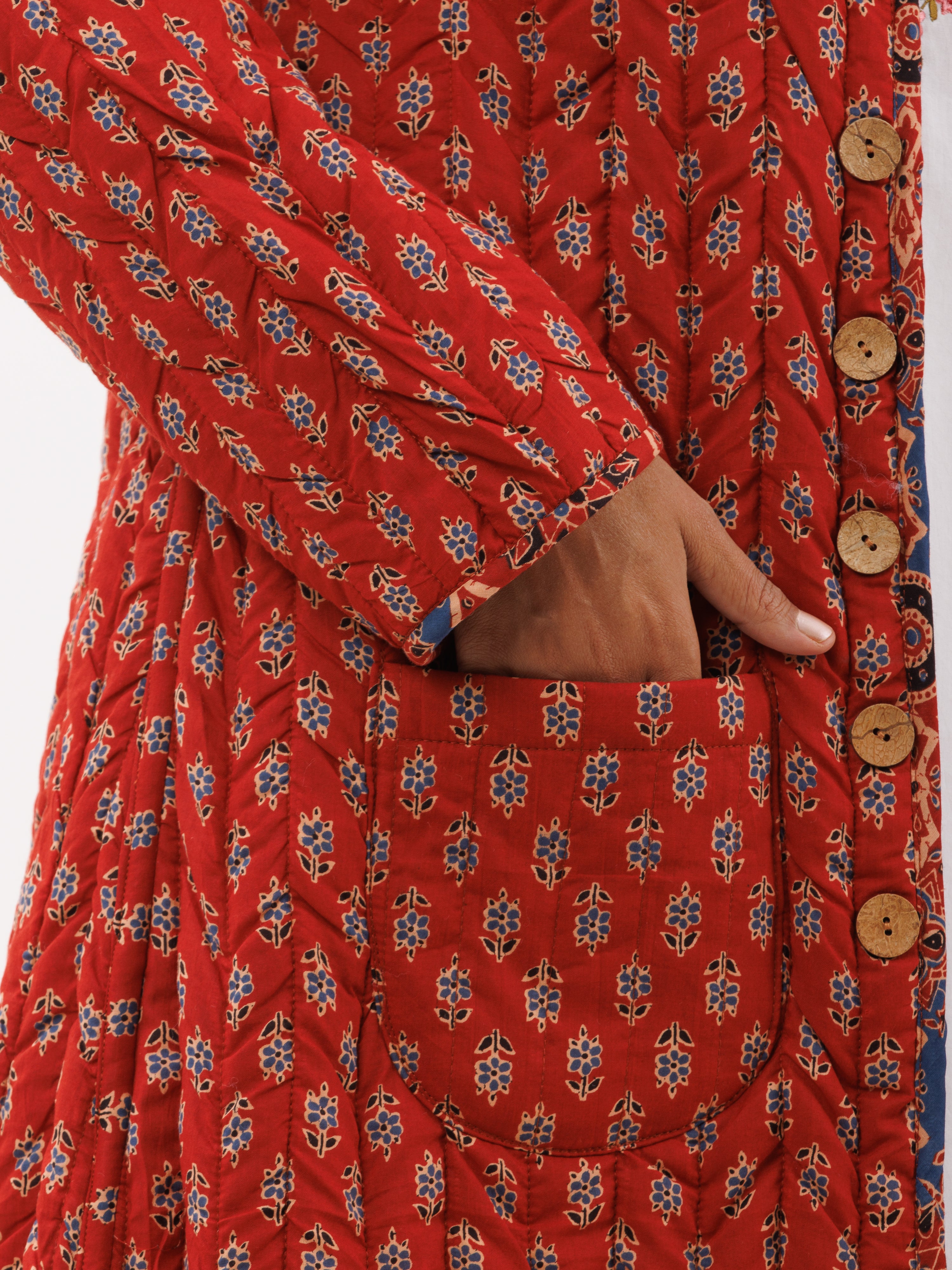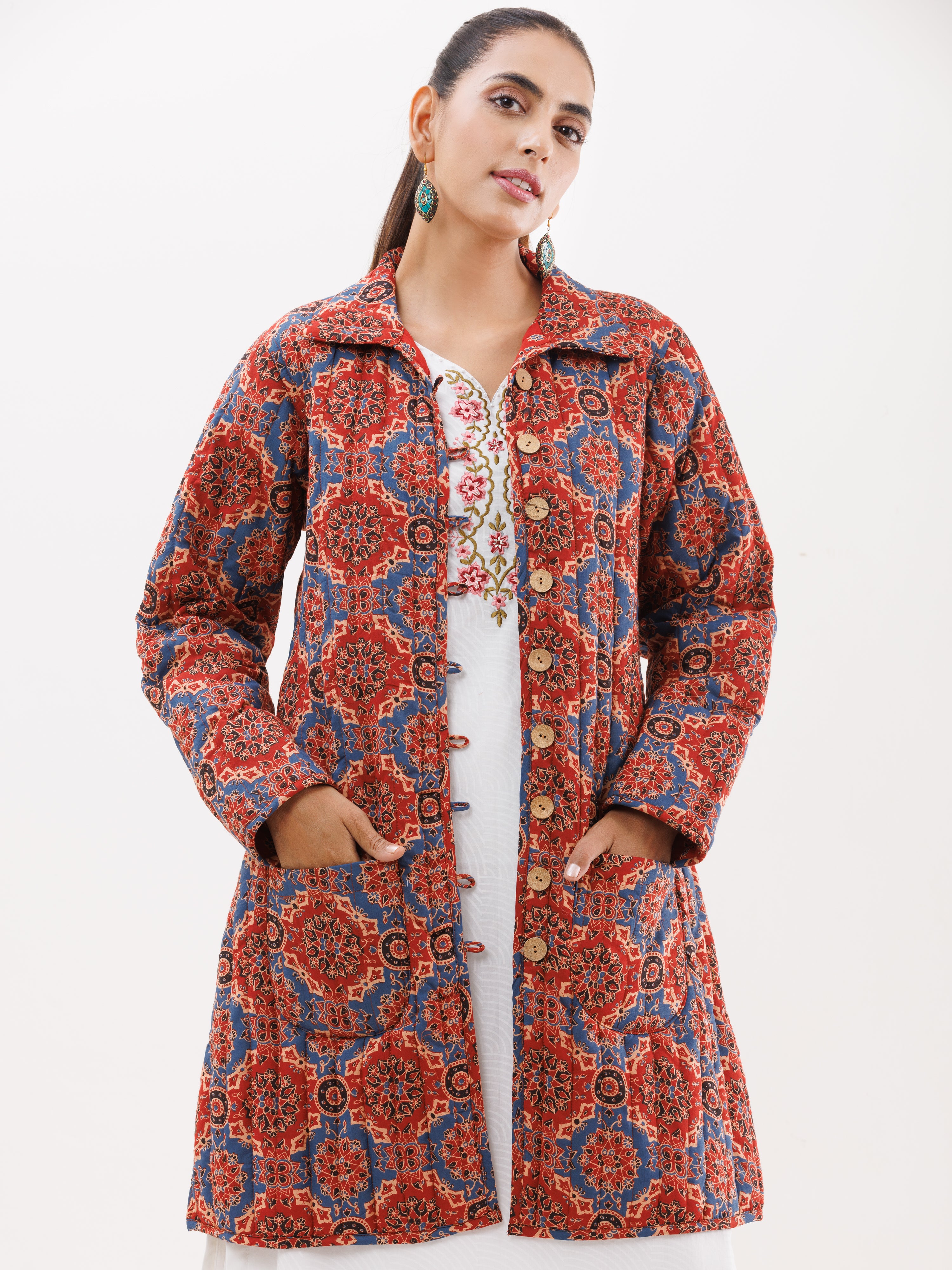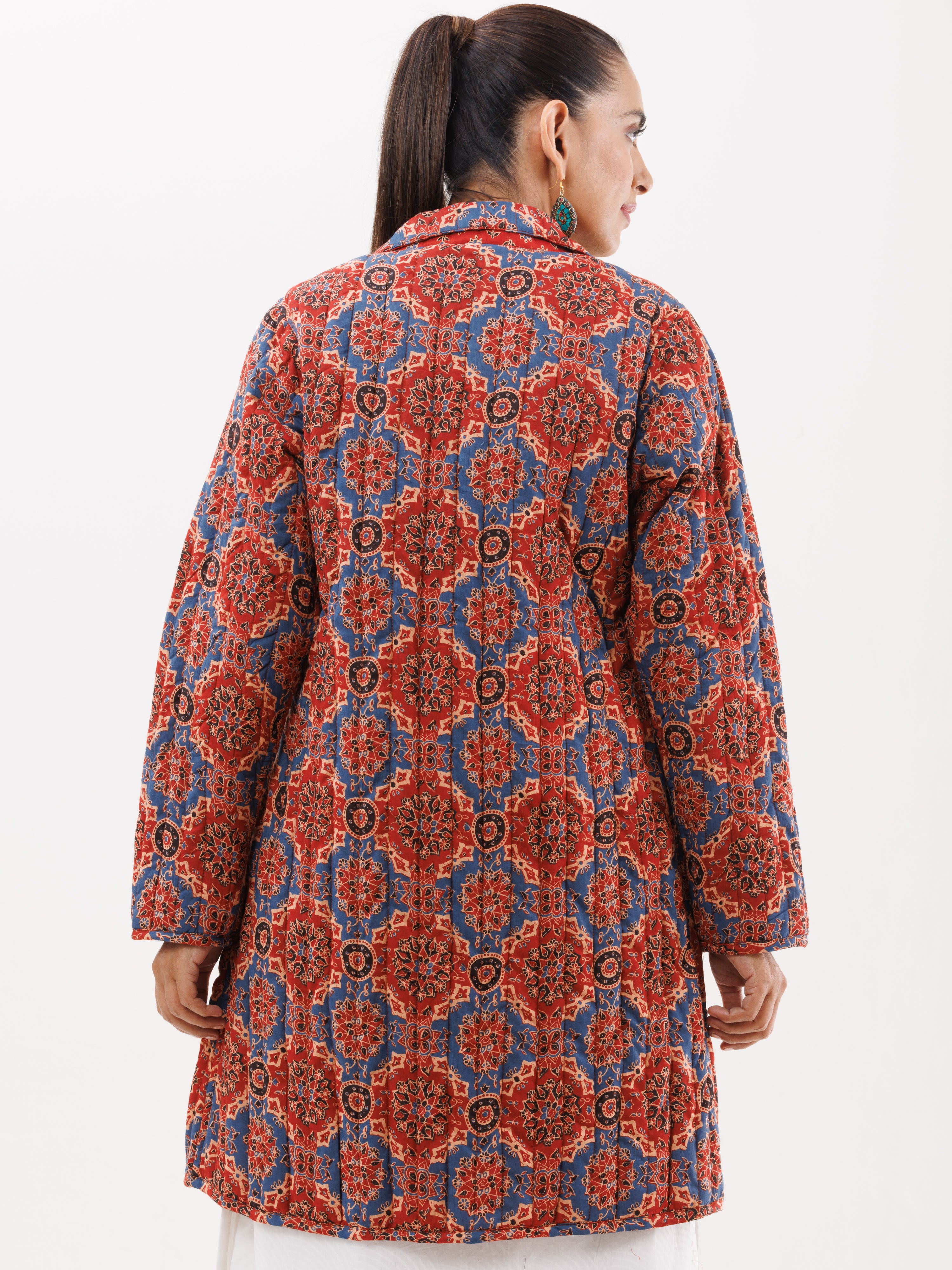 PRODUCT: Handcrafted Reversible Quilted Jacket with intrinsic and alluring work of block print on both the sides.