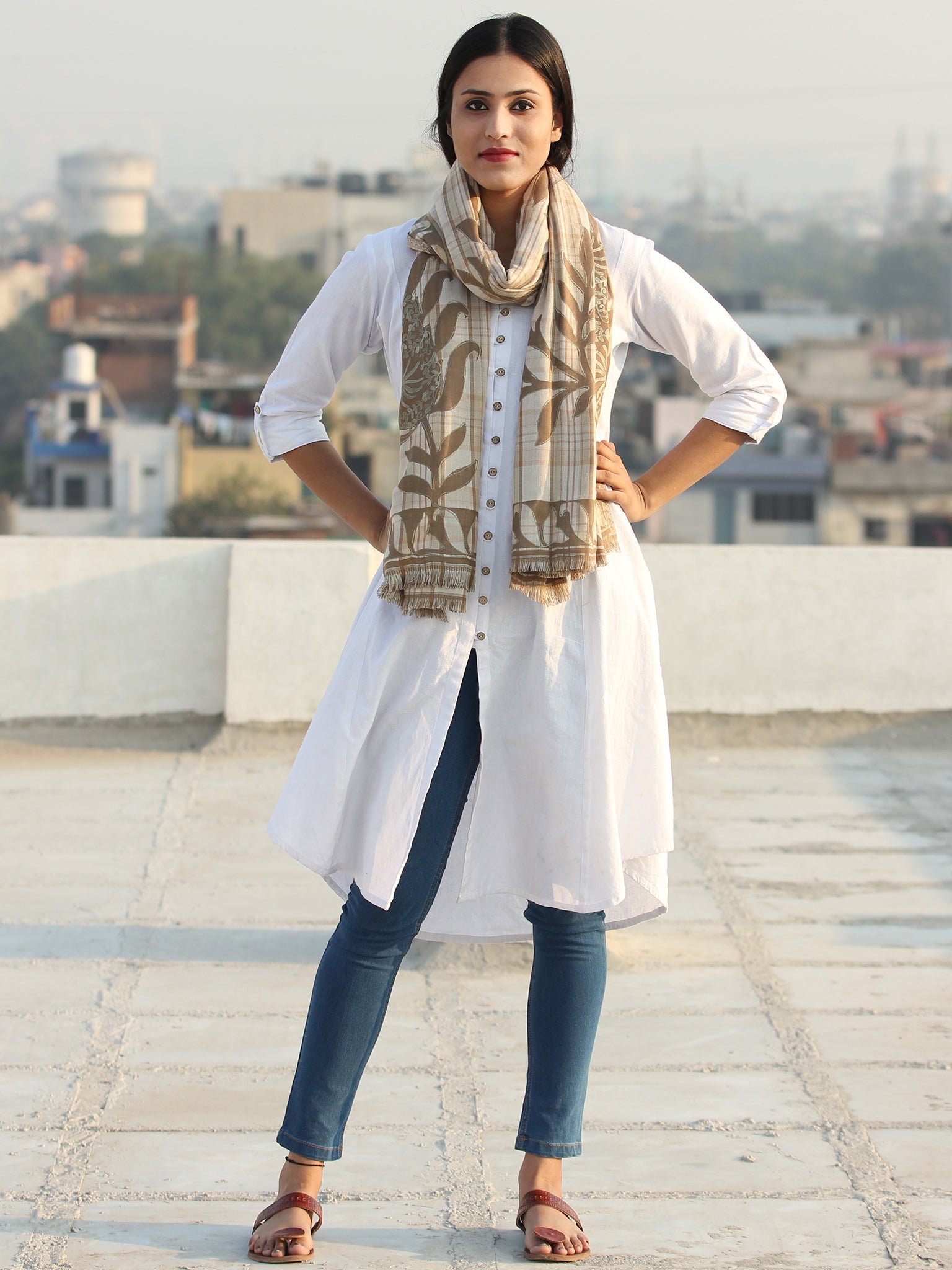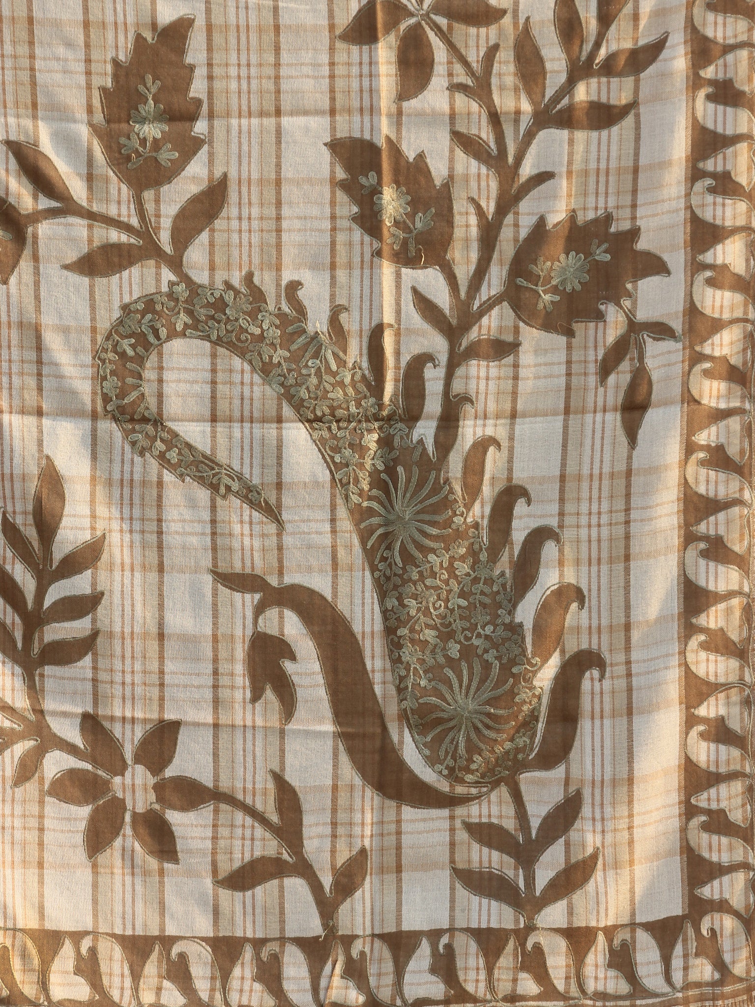 PRODUCT : Aari embroidered outlining check, pure wool Kashmir Shawl. The most subtle and aesthetically beautiful product of Kashmir Shawl artistry. 100% pure wool.
