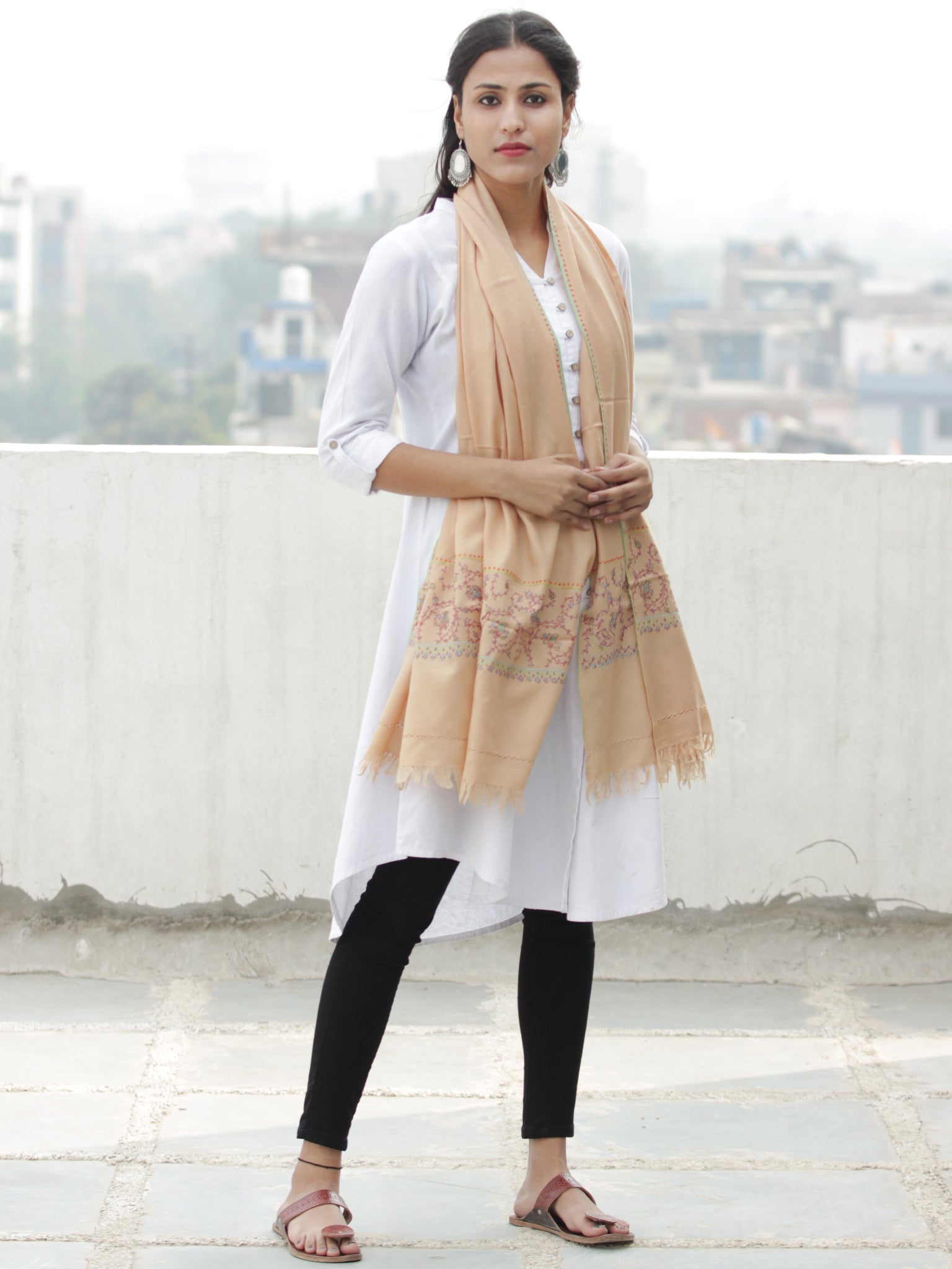 PRODUCT : Cashmere Woollen Stole with needle point embroidery work , a traditional work from Kashmir. The most subtle and aesthetically beautiful product of Kashmir Shawl artistry. 100% pure wool.