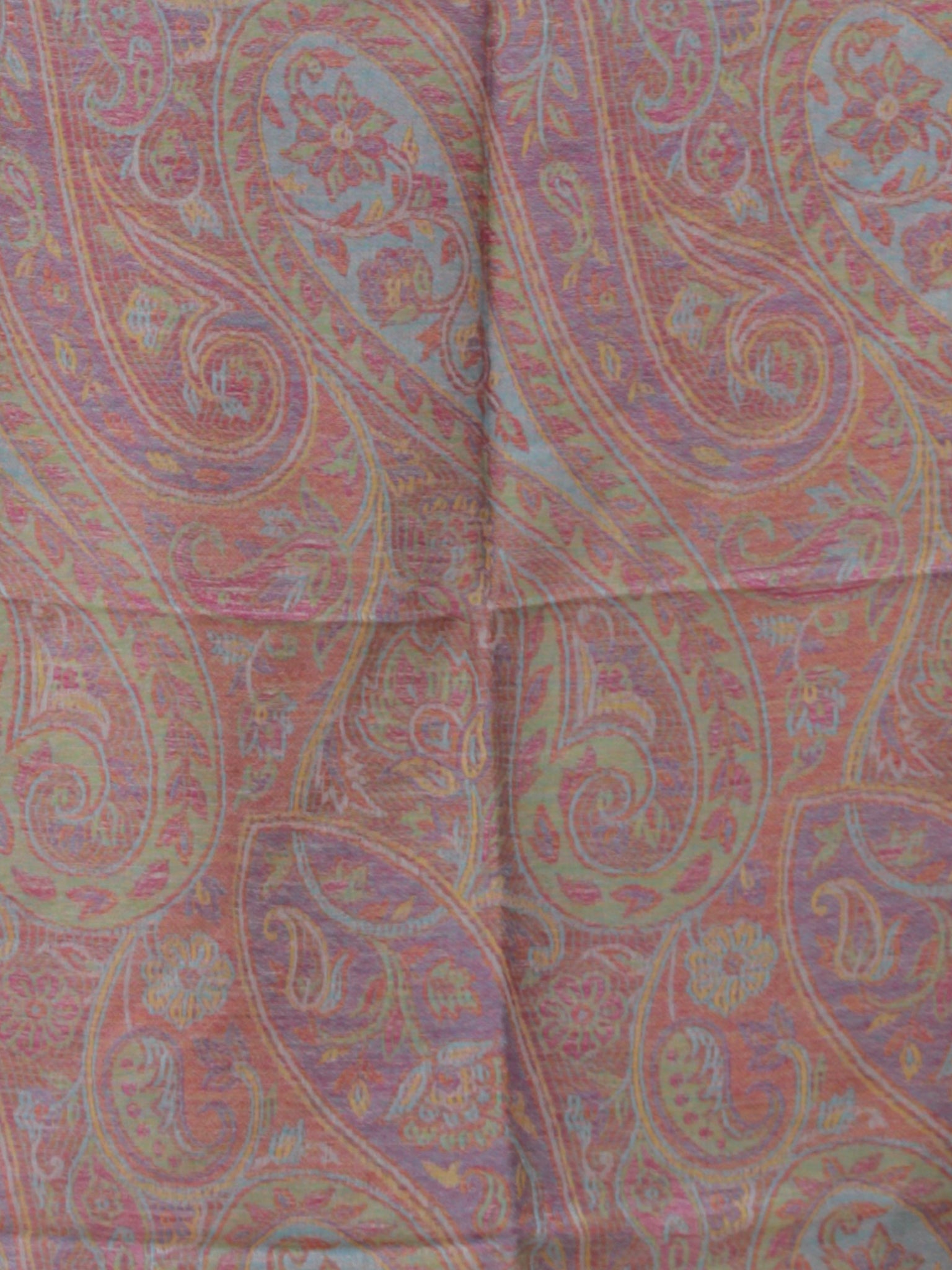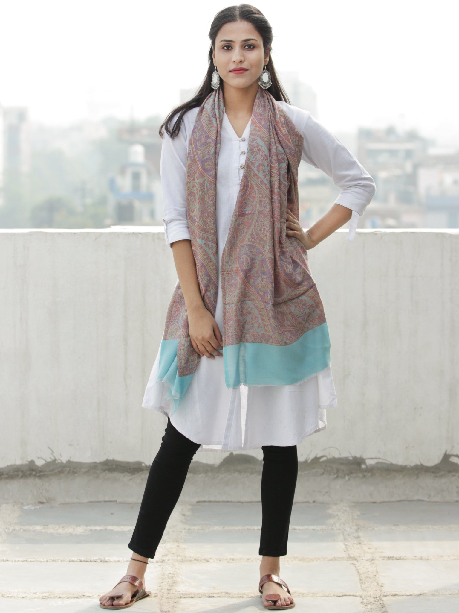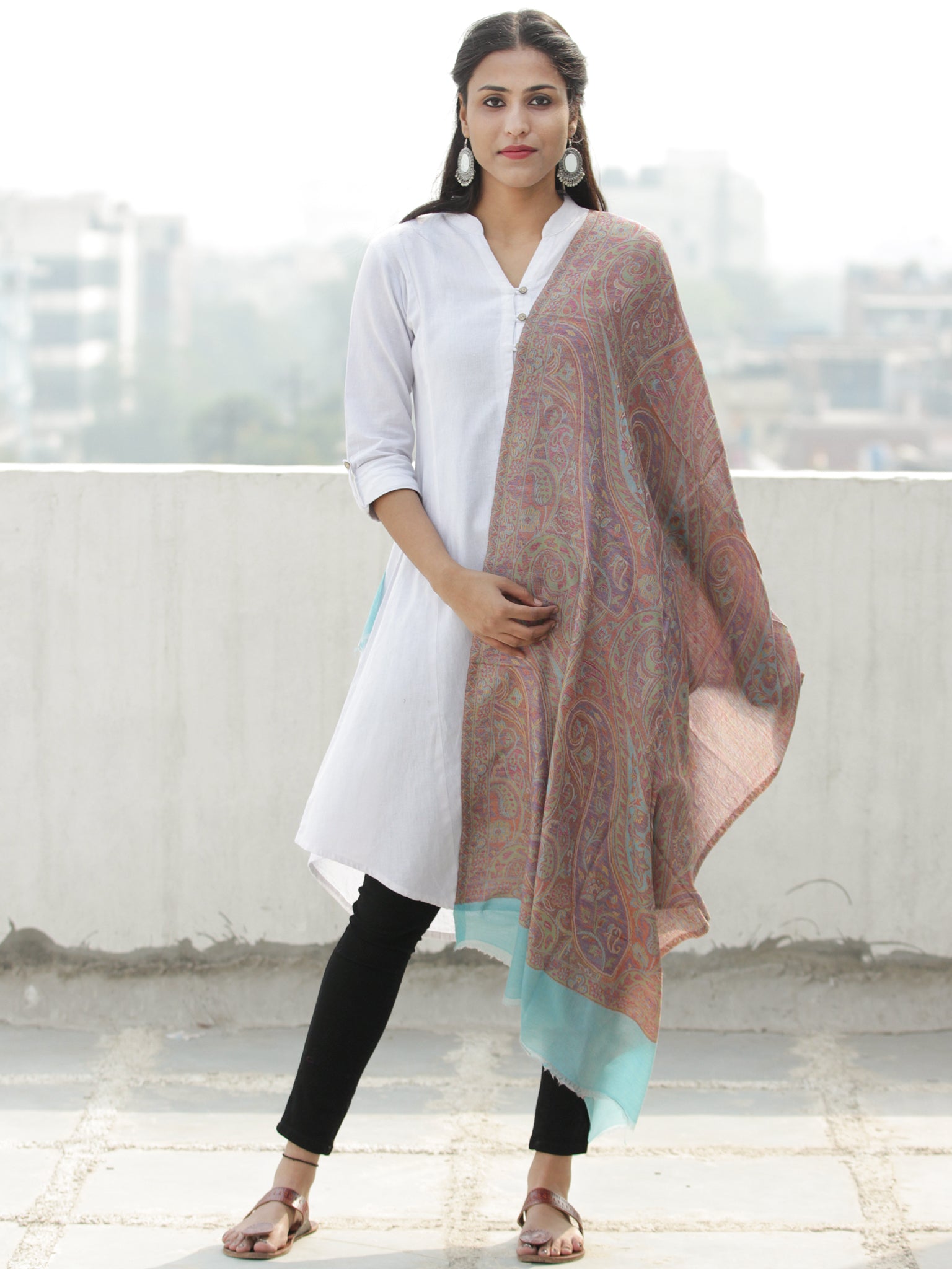 Coral Green Sky Blue Pure Cashmere Wool Jamavar Stole - S200555