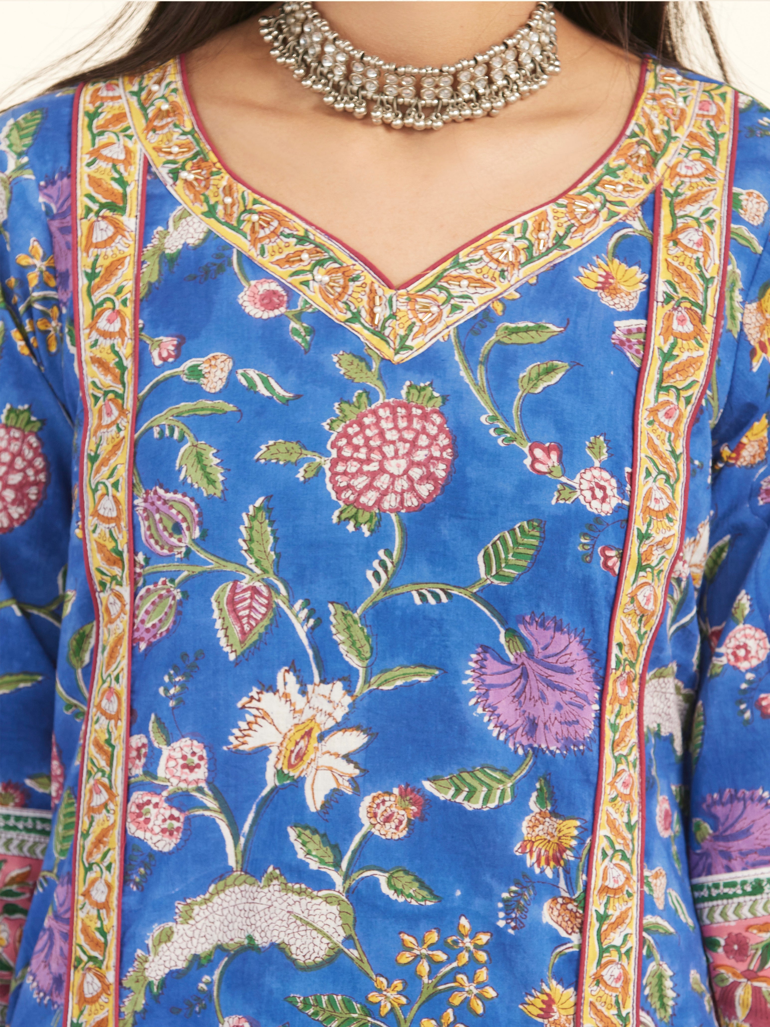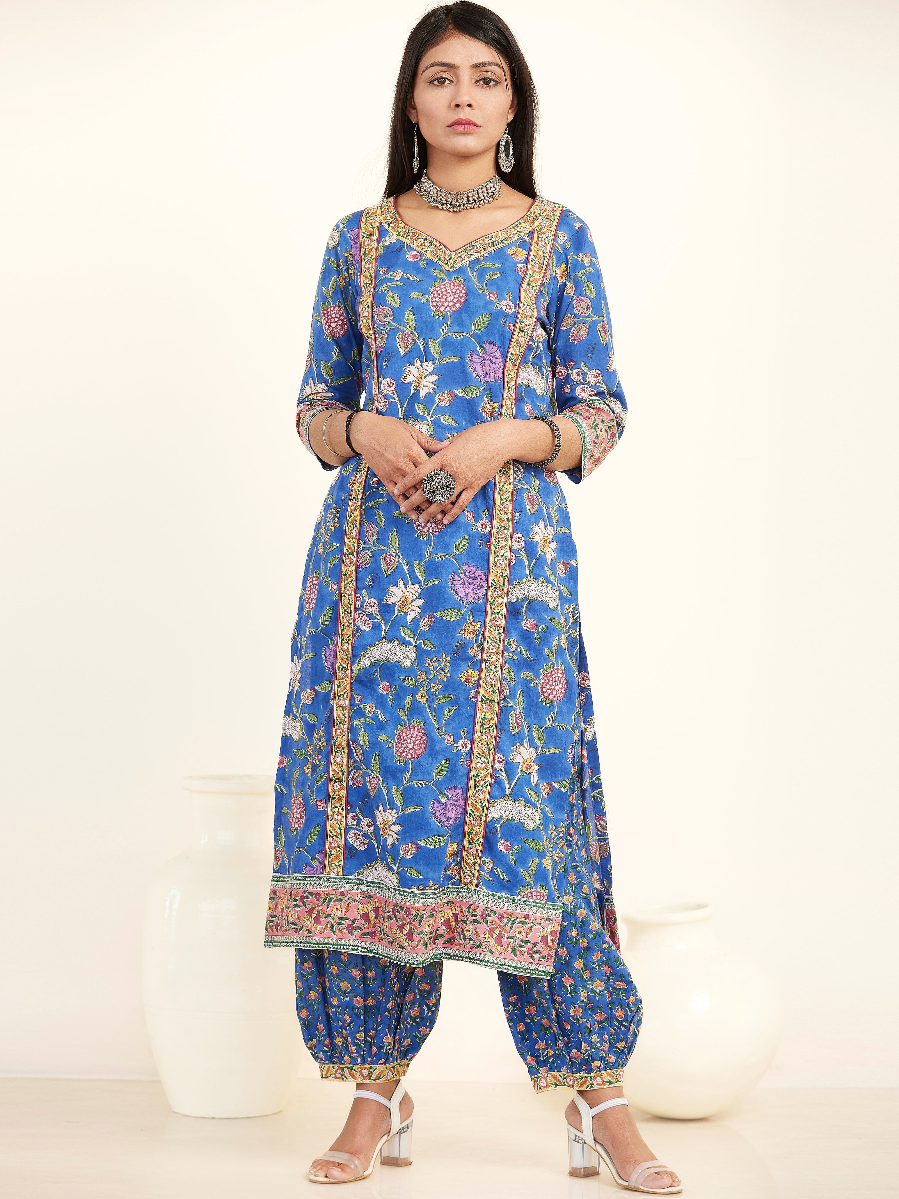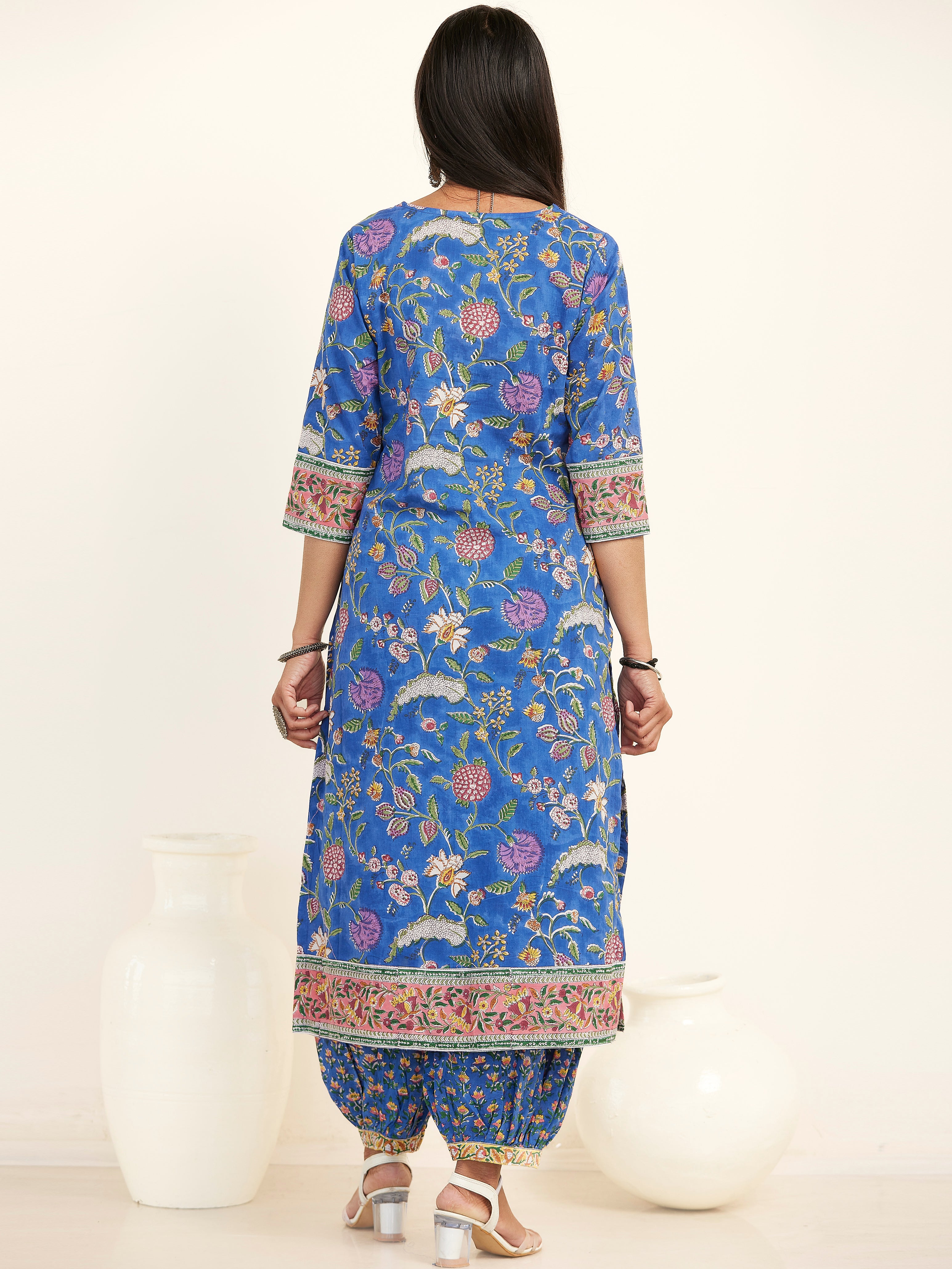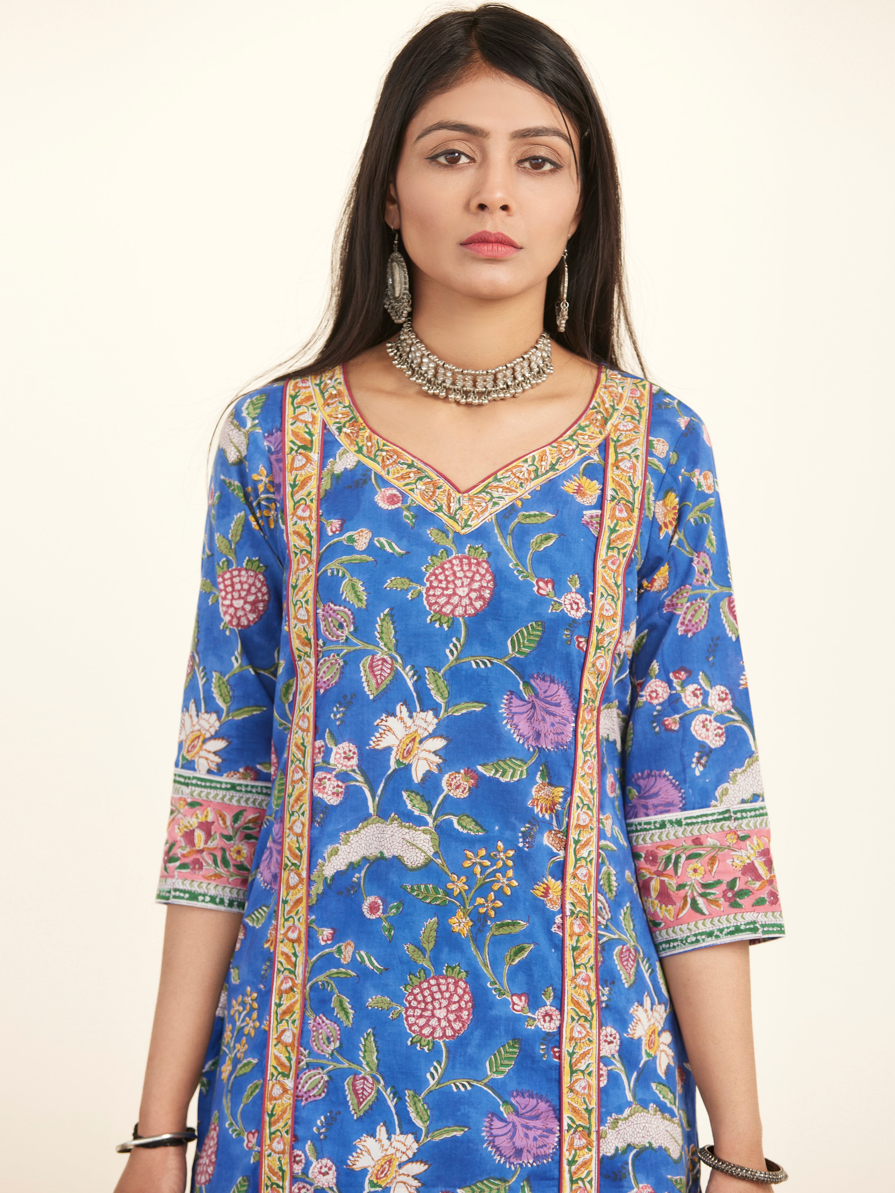 Product: Contains Hand Block Printed Cotton Kurta. Matching Pants/Bottoms and Dupatta are also available separately under BUY THE LOOK section.