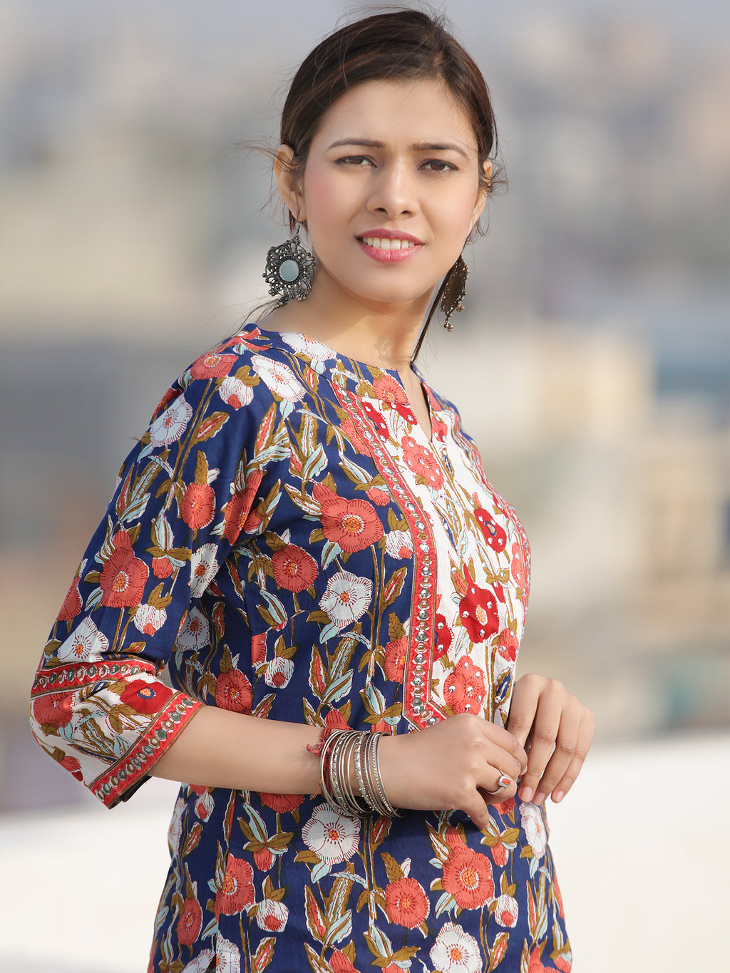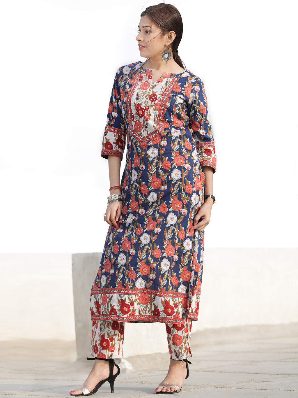 Product: Contains Hand Block Printed Cotton Kurta. Matching Pants/Bottoms and Dupatta are also available separately under BUY THE LOOK section.