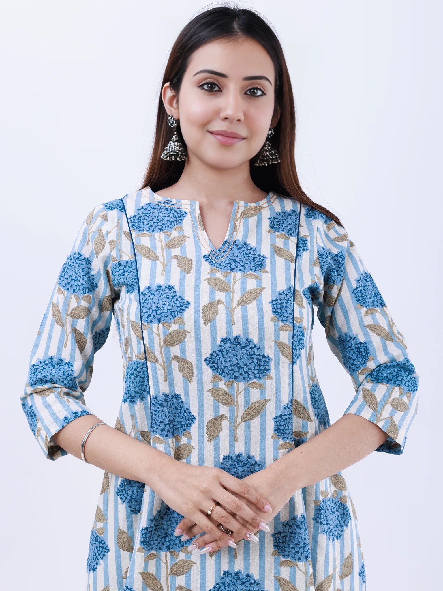 Product: Contains Hand Block Printed Cotton Linen Kurta. Matching Pants/Bottoms and Dupatta are also available separately under BUY THE LOOK section.