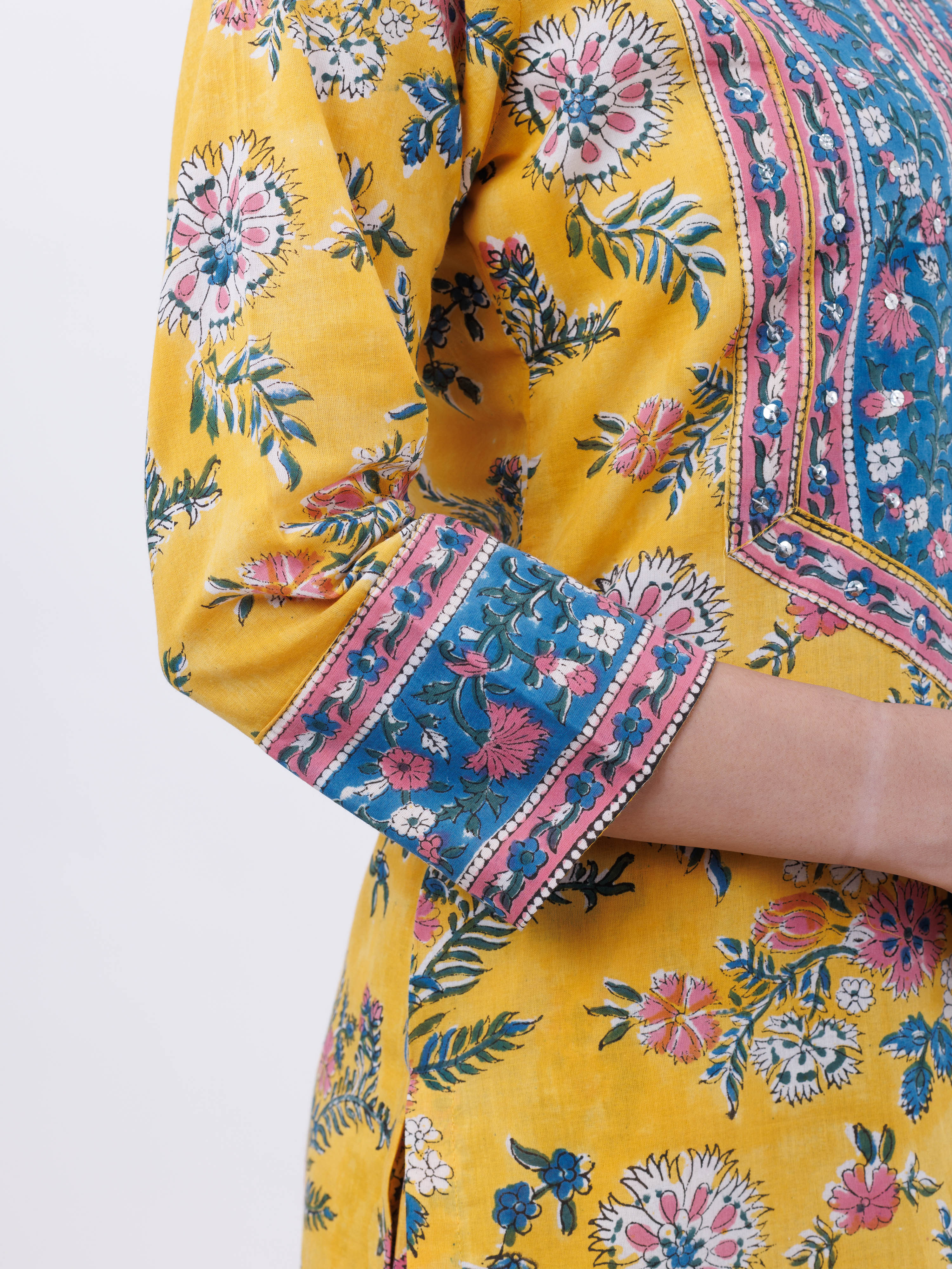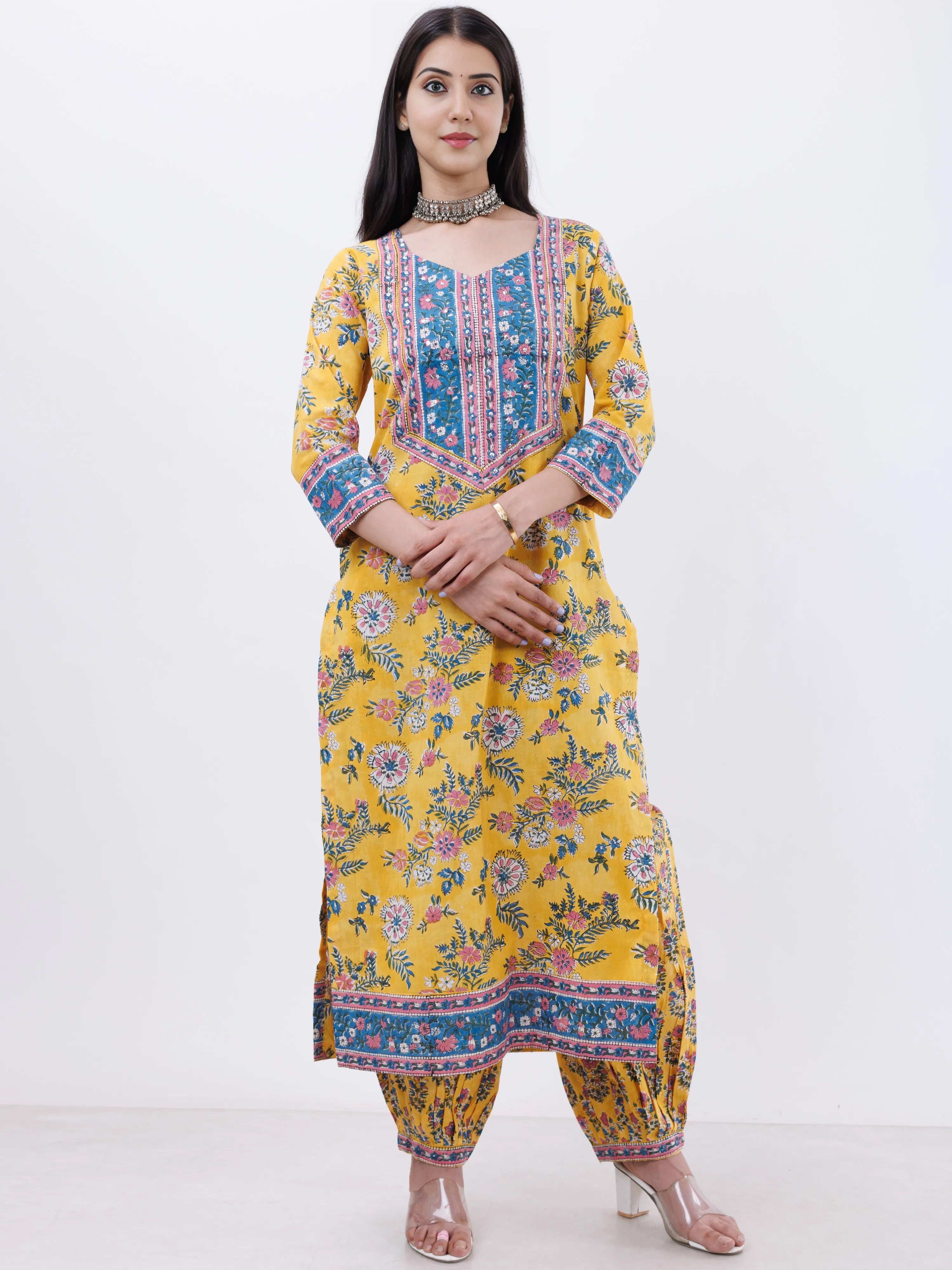 Product: Contains Hand Block Printed Cotton Kurta. Matching Pants/Bottoms and Dupatta are also available separately under BUY THE LOOK section.