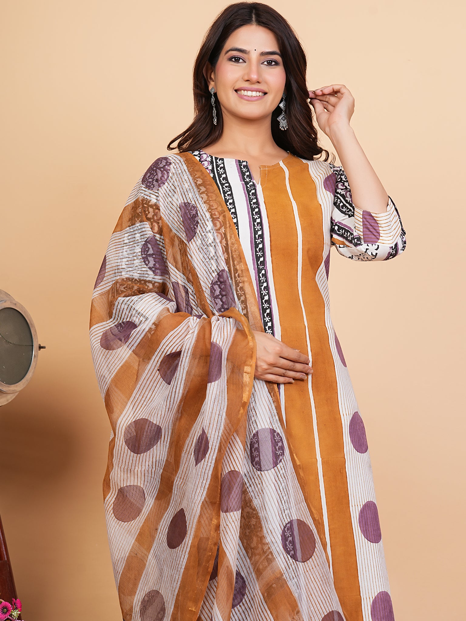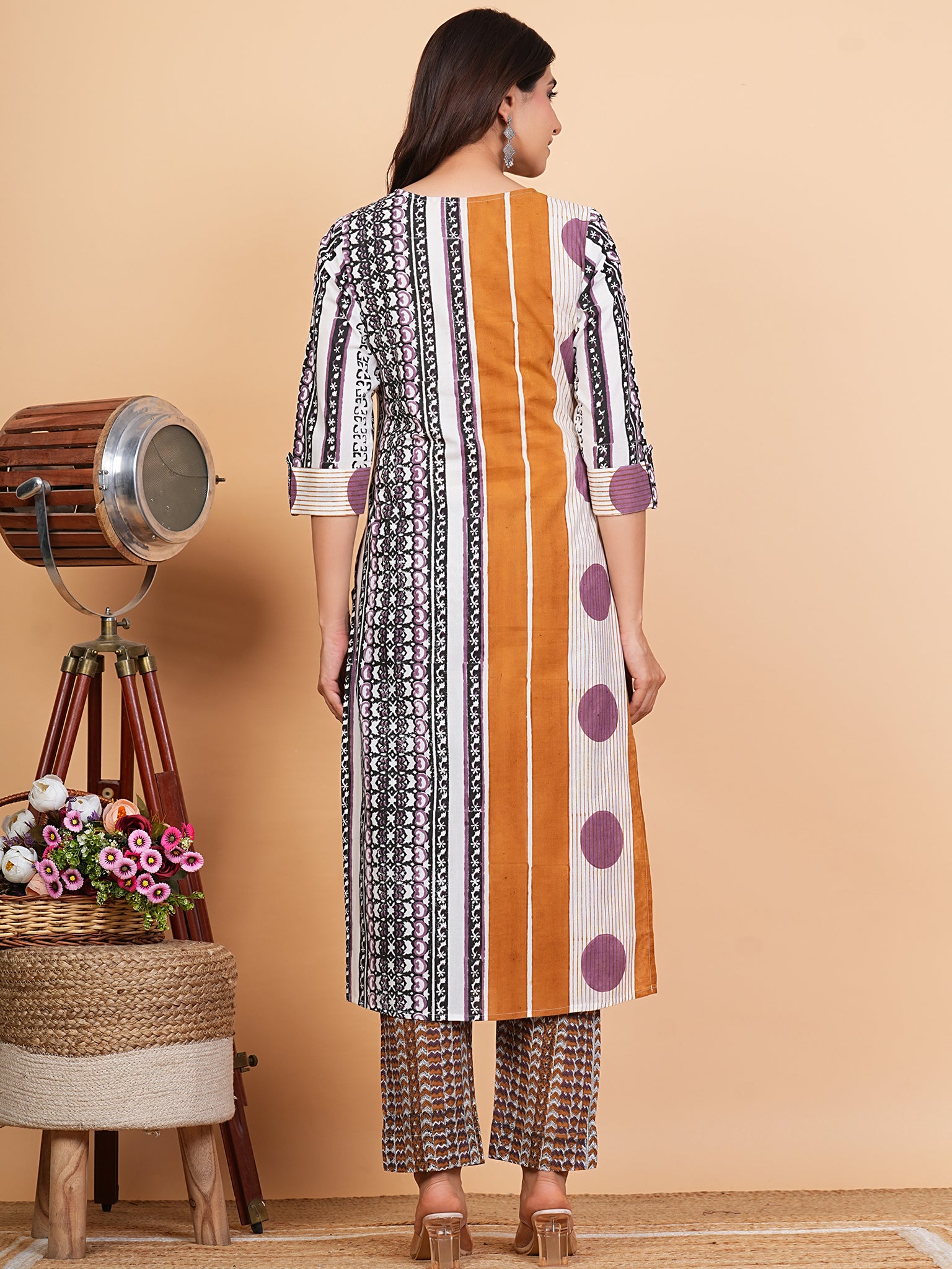 Product: Contains Hand Block Printed Cotton Kurta. Matching Pants/Bottoms and Dupatta are also available separately under BUY THE LOOK section.